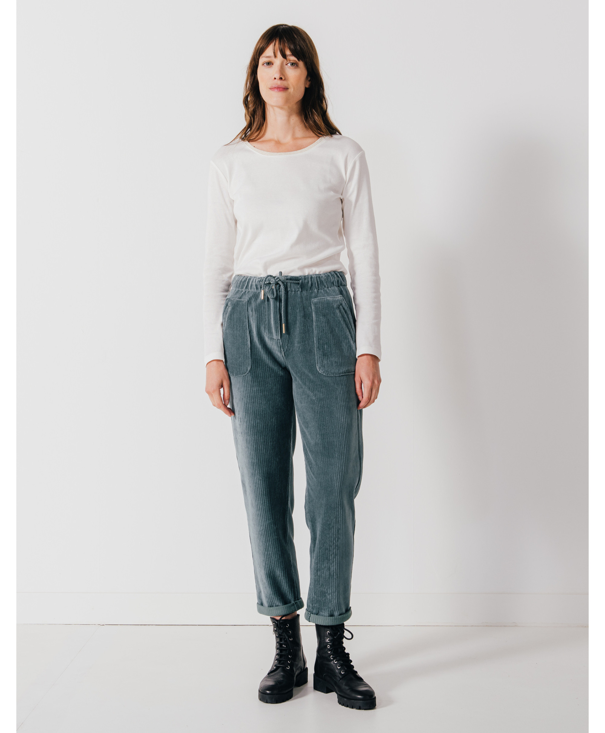 • Pantalon en velours coupe jogging