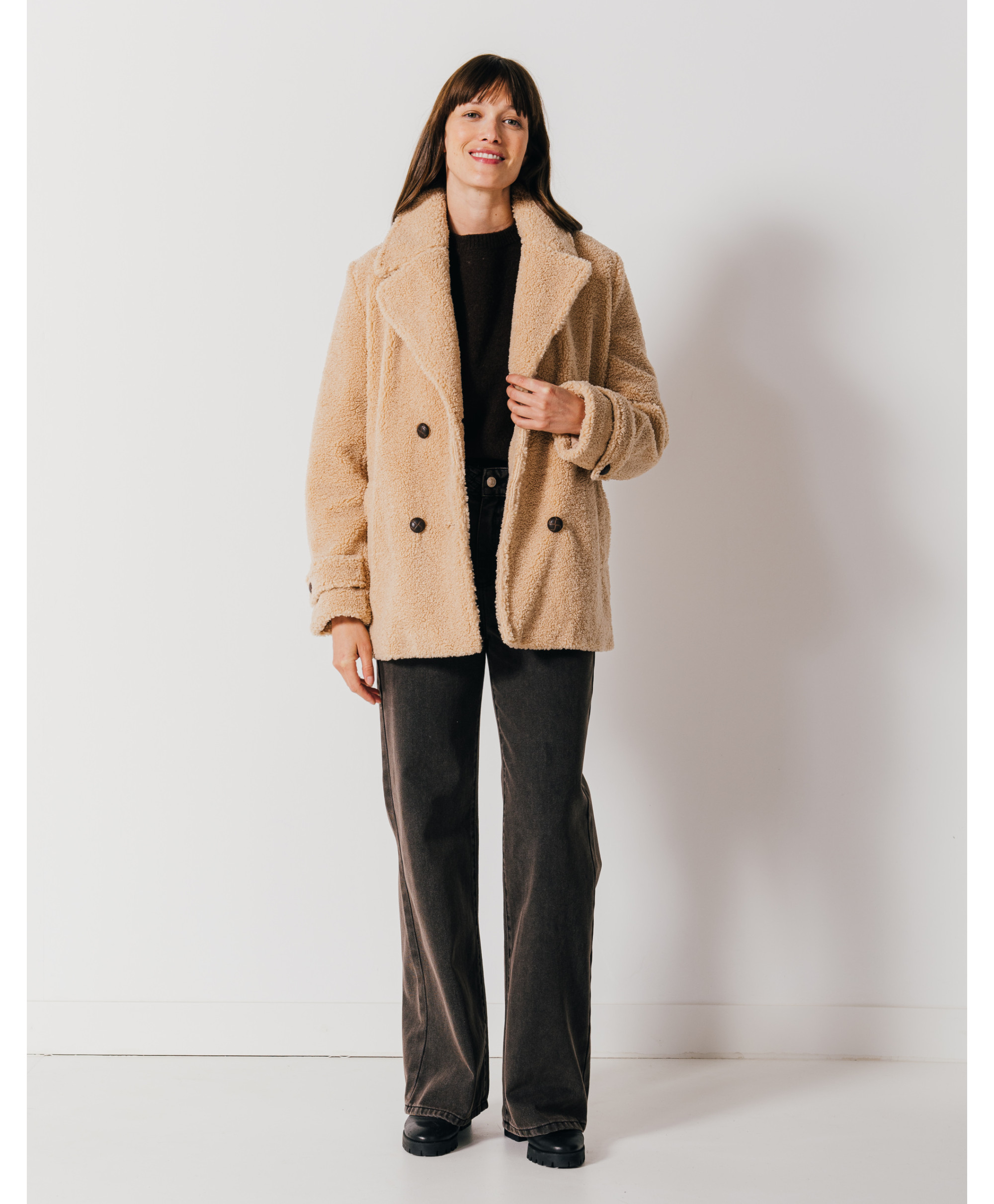 Vous allez adorer notre caban court en bouclette MAHEE. Avec sa forme droite et ses boutons cornes contrastés, ses 2 poches sur le côté et ses manches longues, c'est LA pièce ultra tendance cette année et elle ne risque pas de s'arrêter !