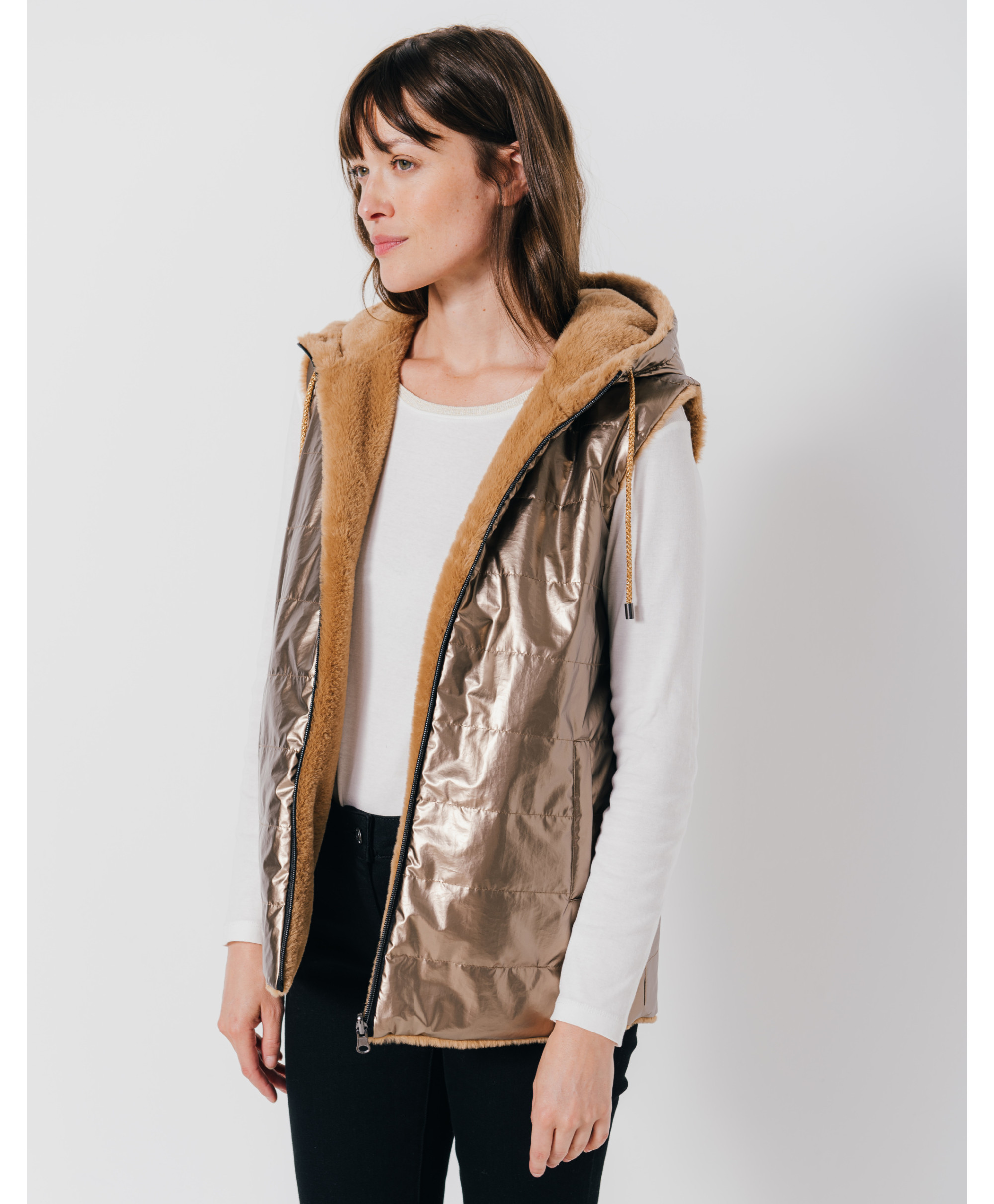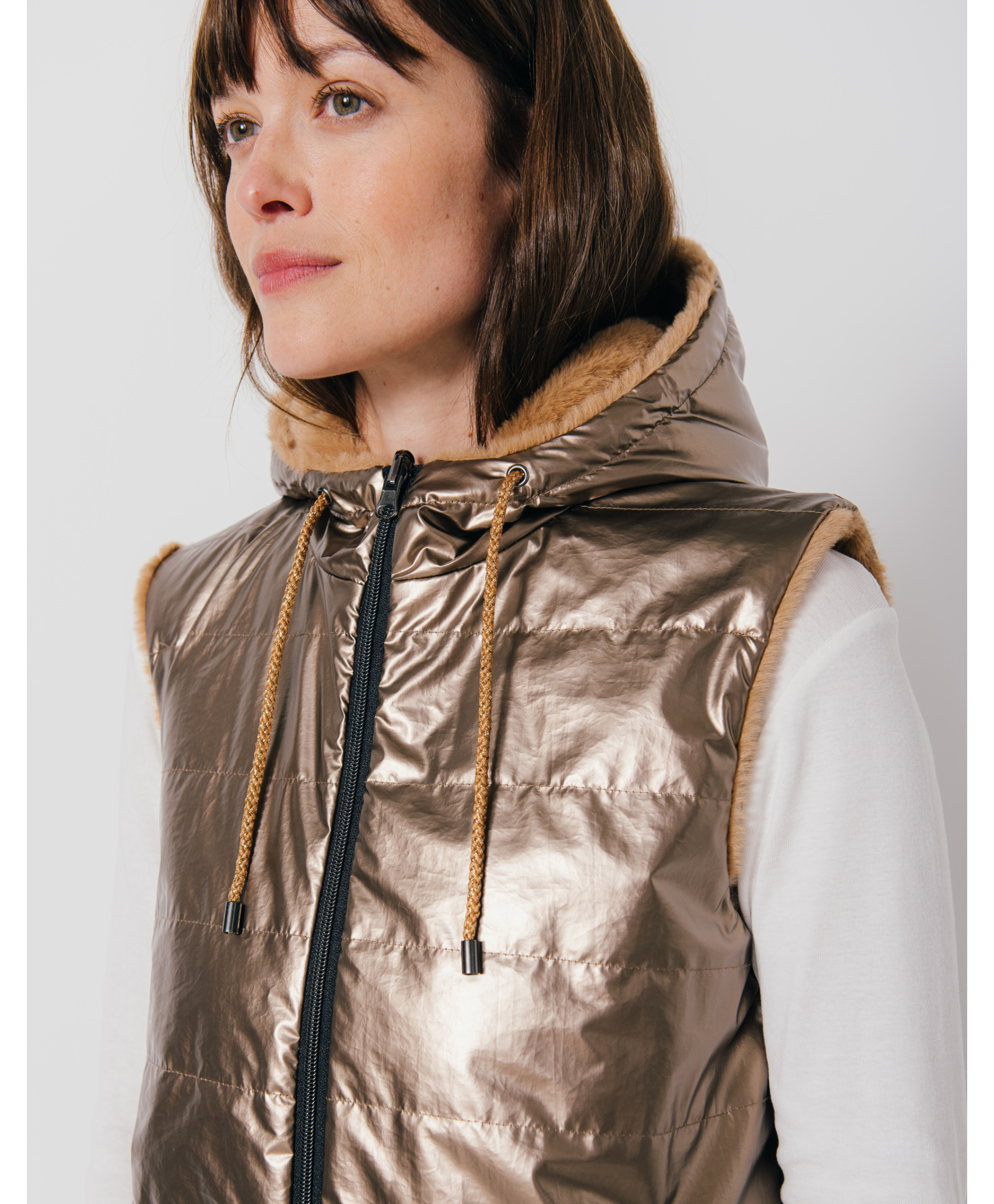 • Col à capuche et cordons fantaisie
