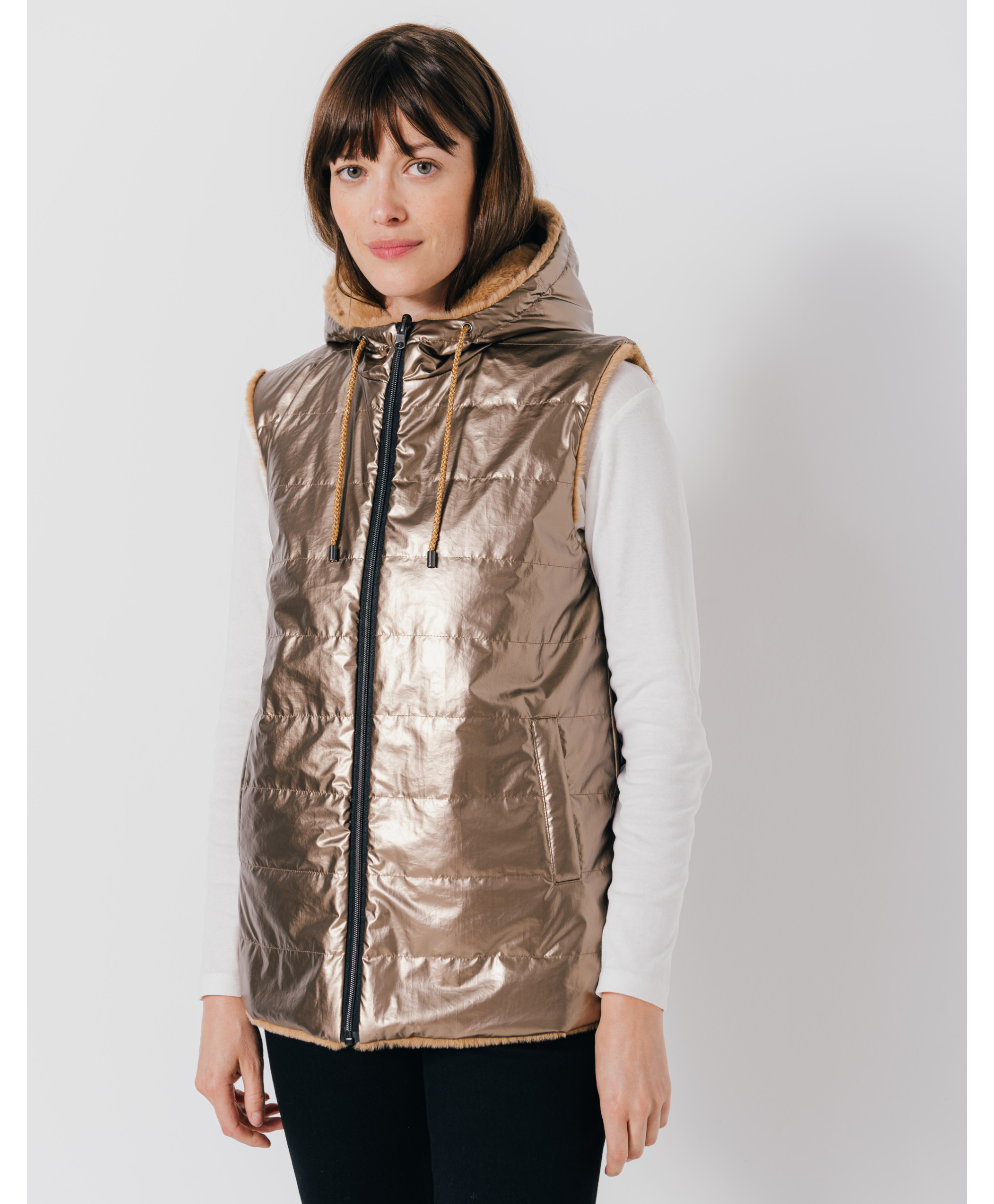 • Parka mi-longue brillante réversible