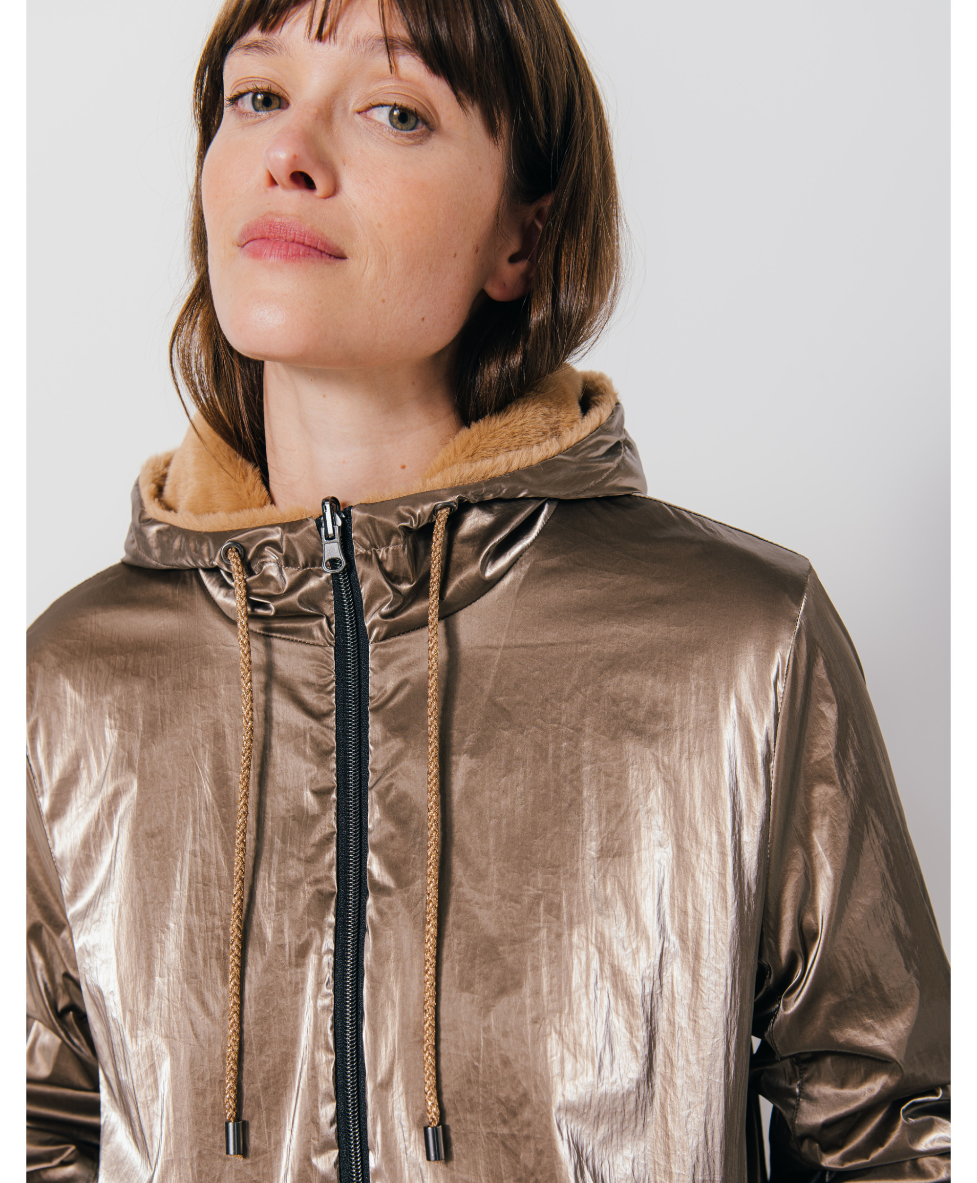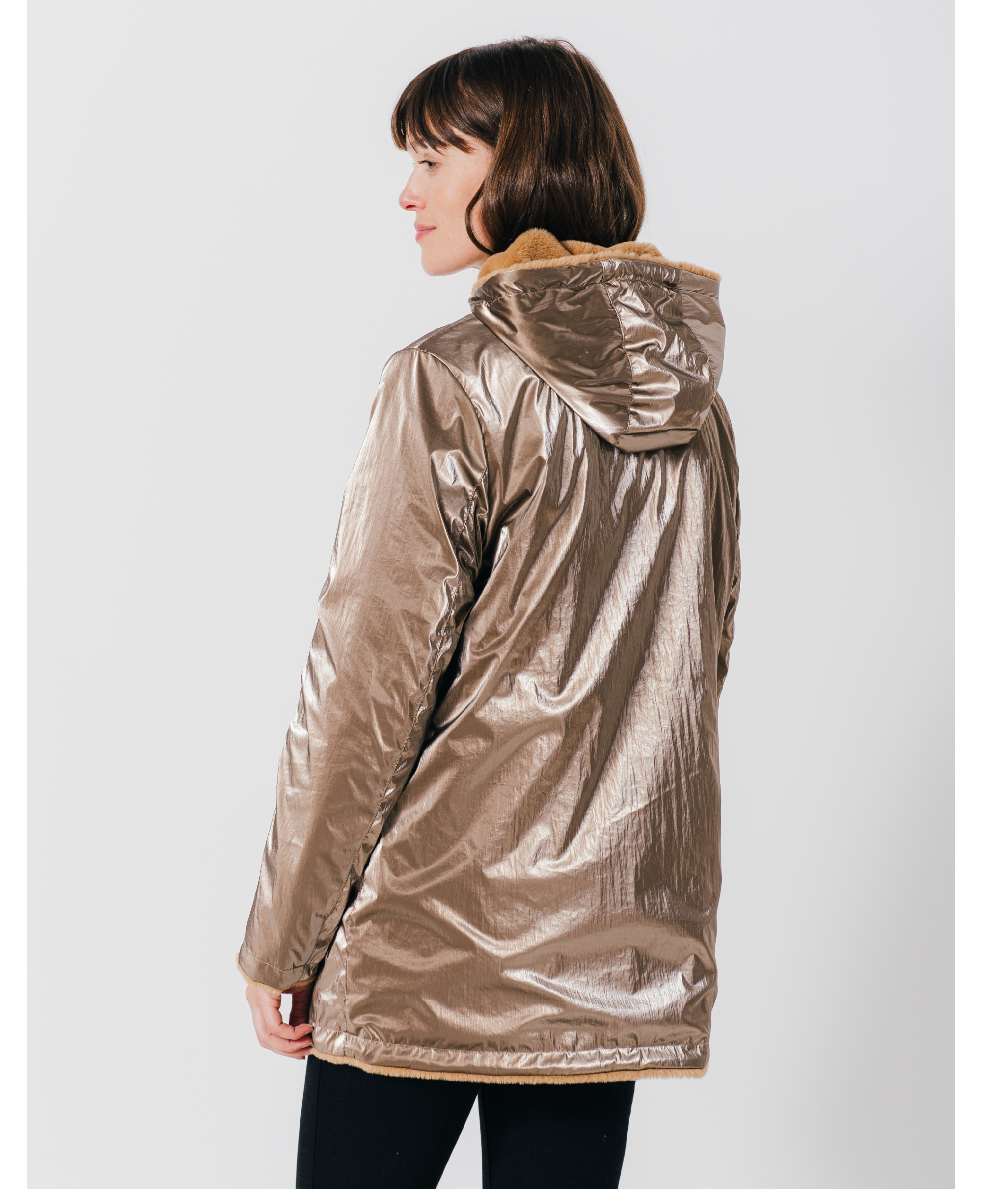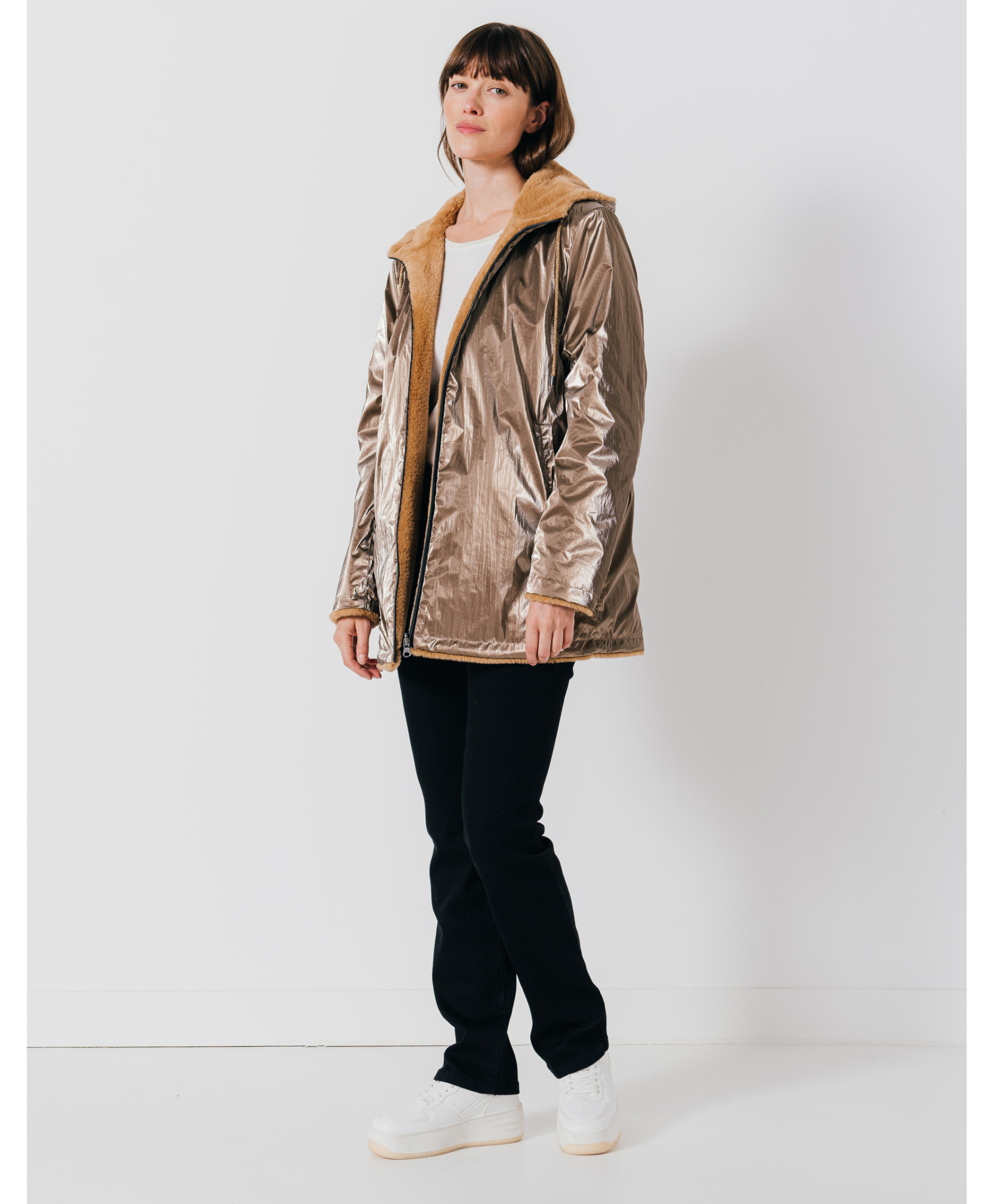 • Parka mi-longue brillante réversible
