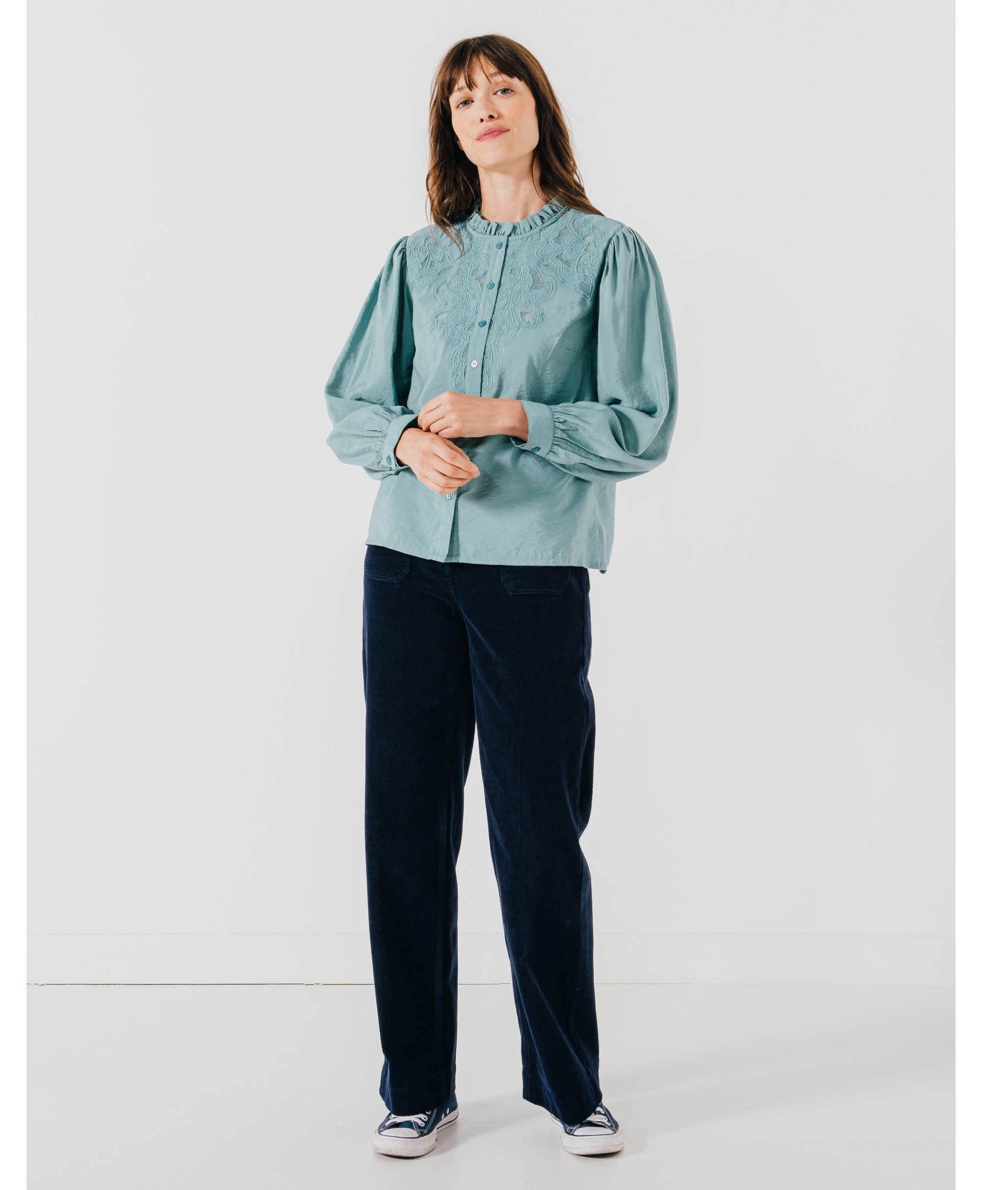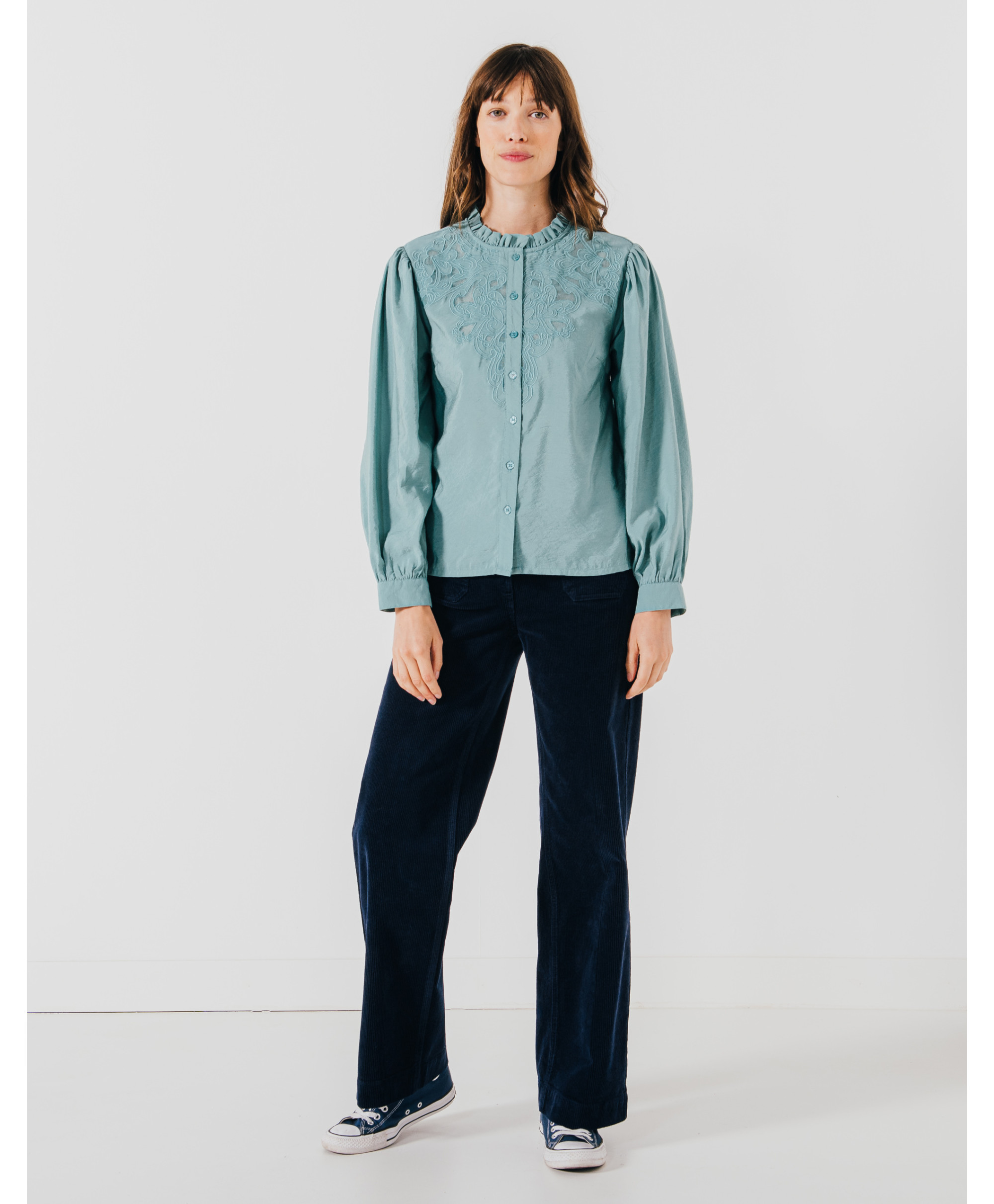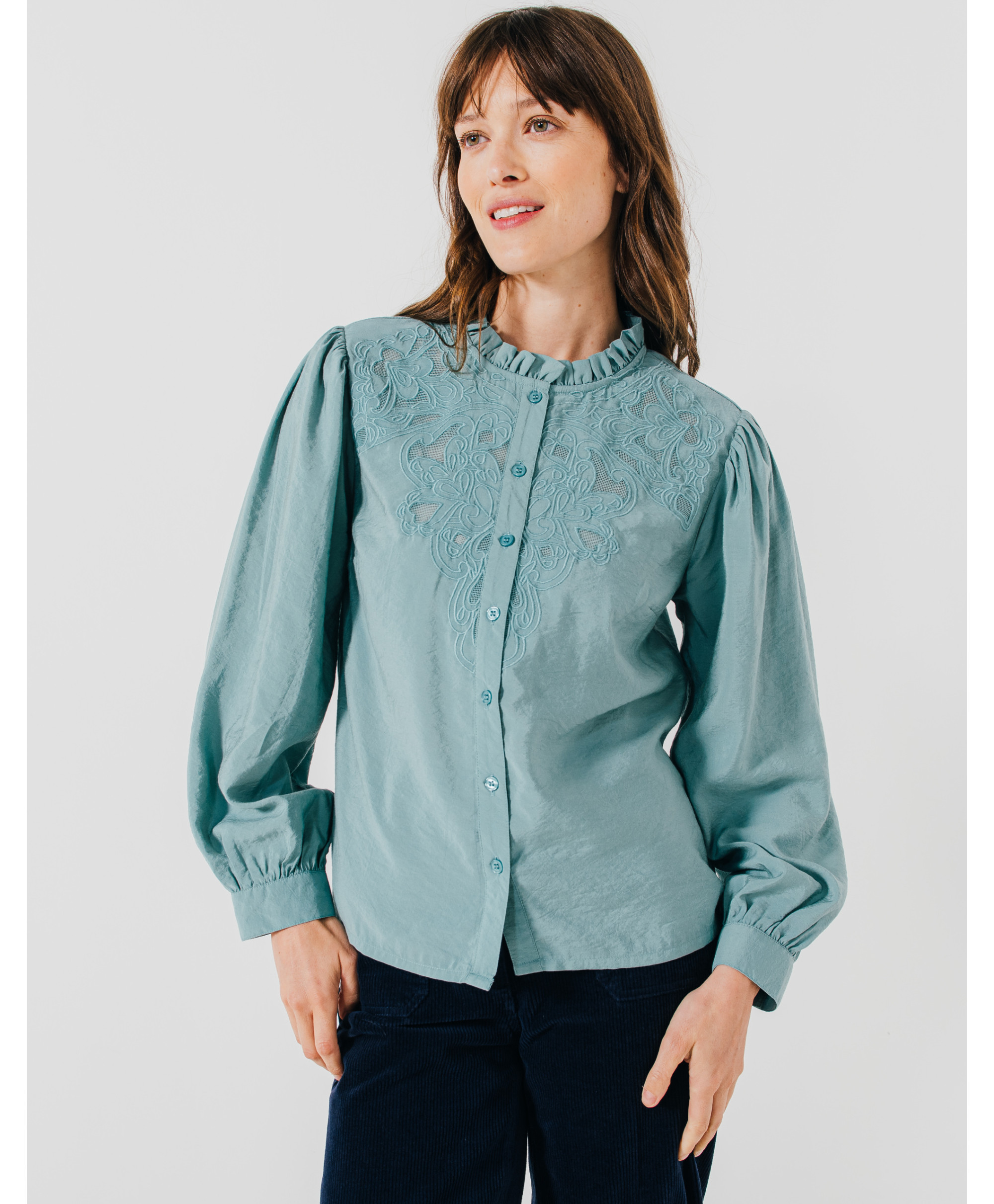Craquez pour notre jolie chemise LARA. On aime cette chemise en viscose pour tous ses détails hyper féminins : son col victorien volanté, sa broderie anglaise et ses manches bouffantes.