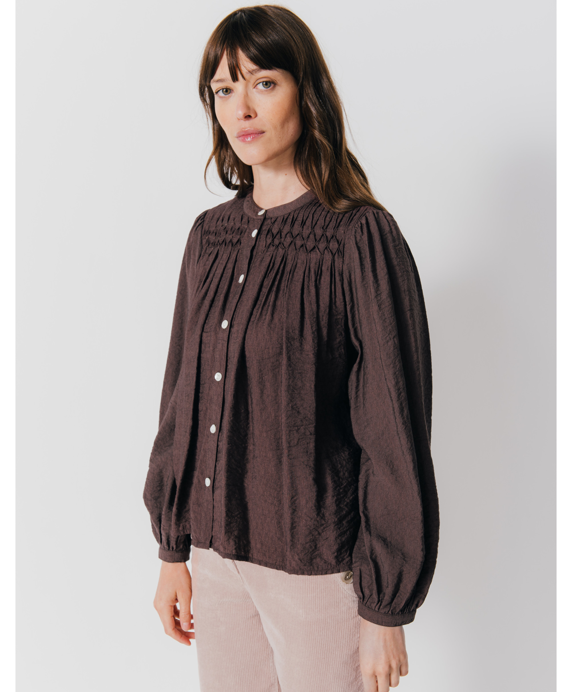 • Blouse en viscose façonnée brodée unie