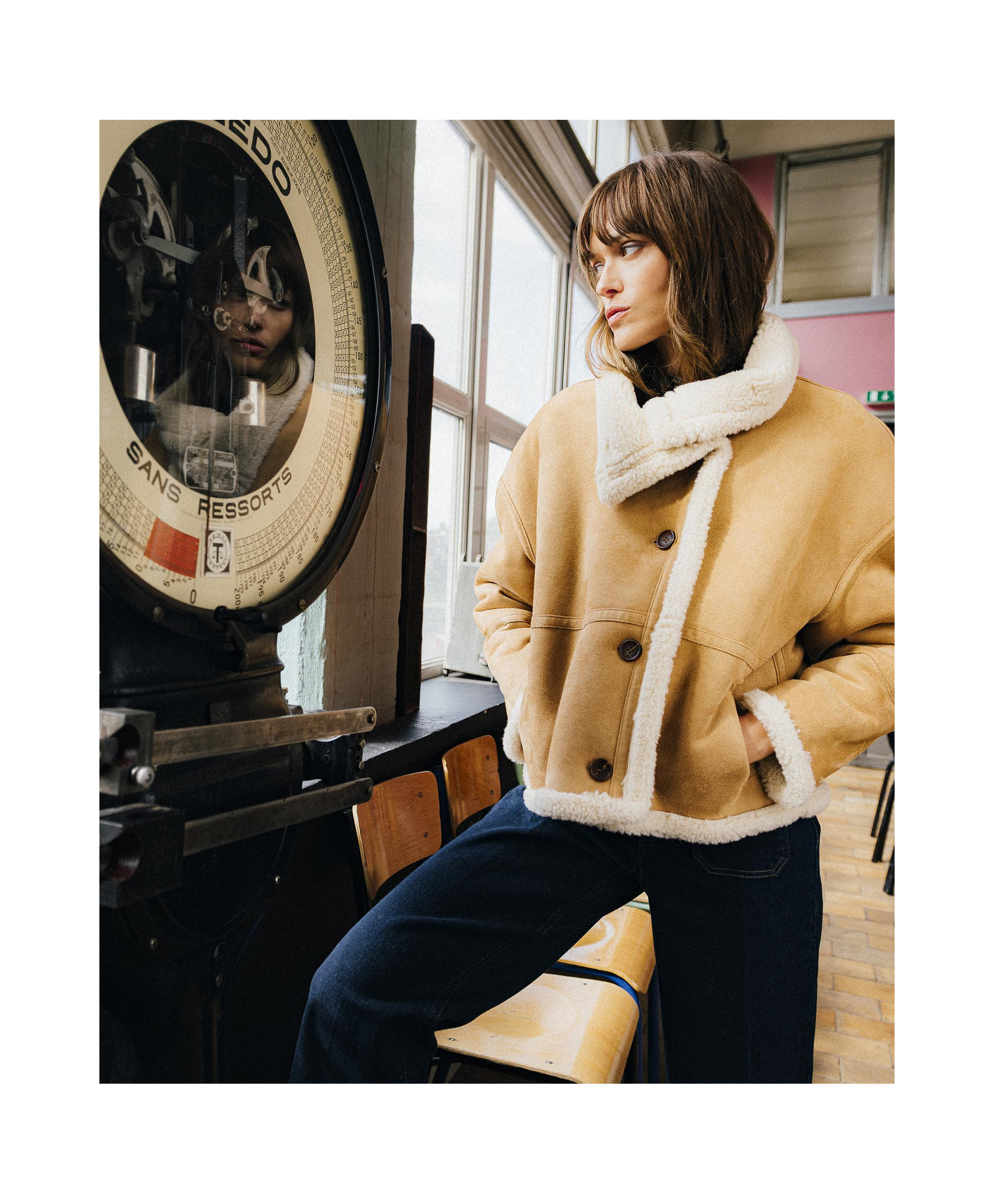 • Manteau court en peau lainée