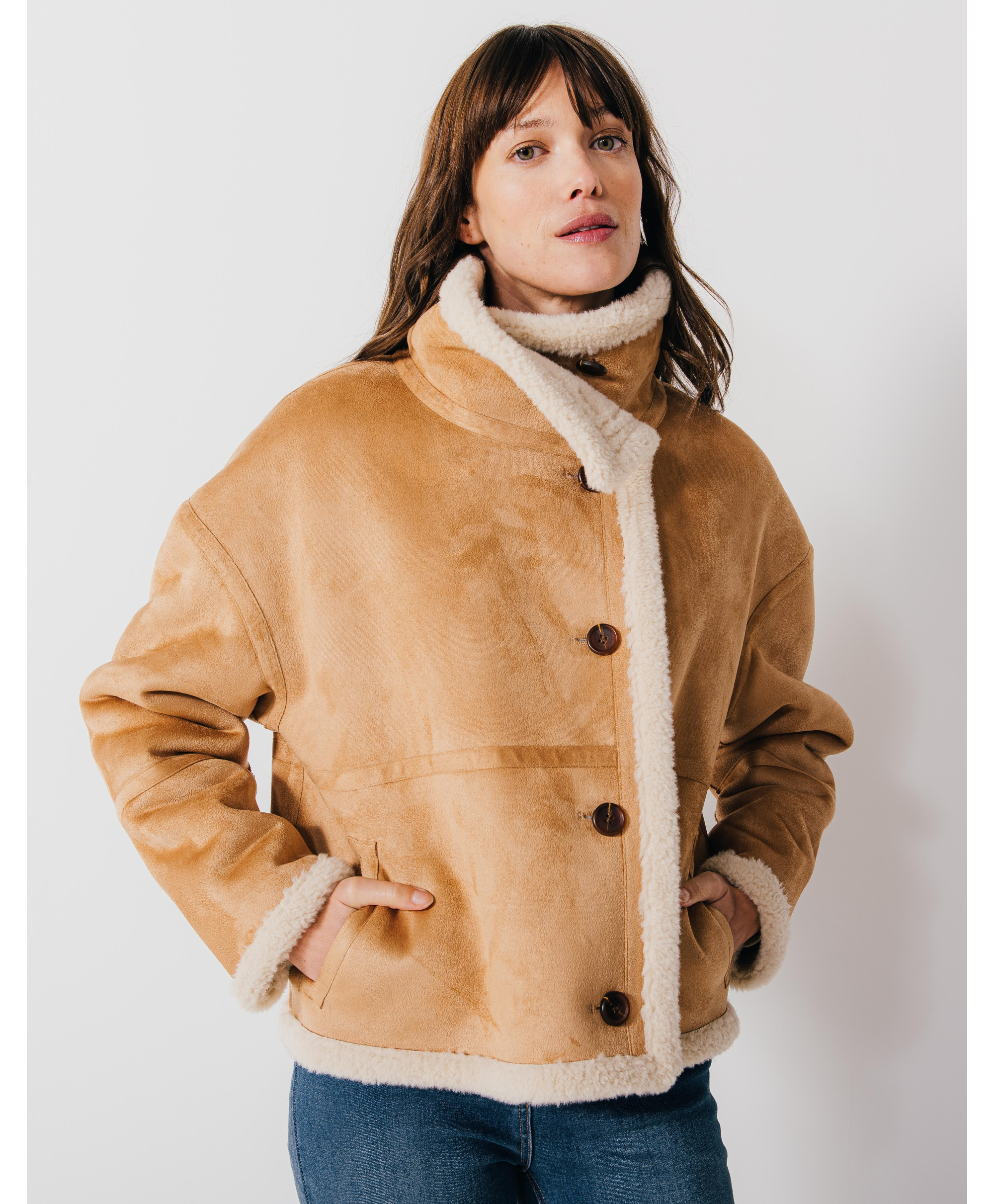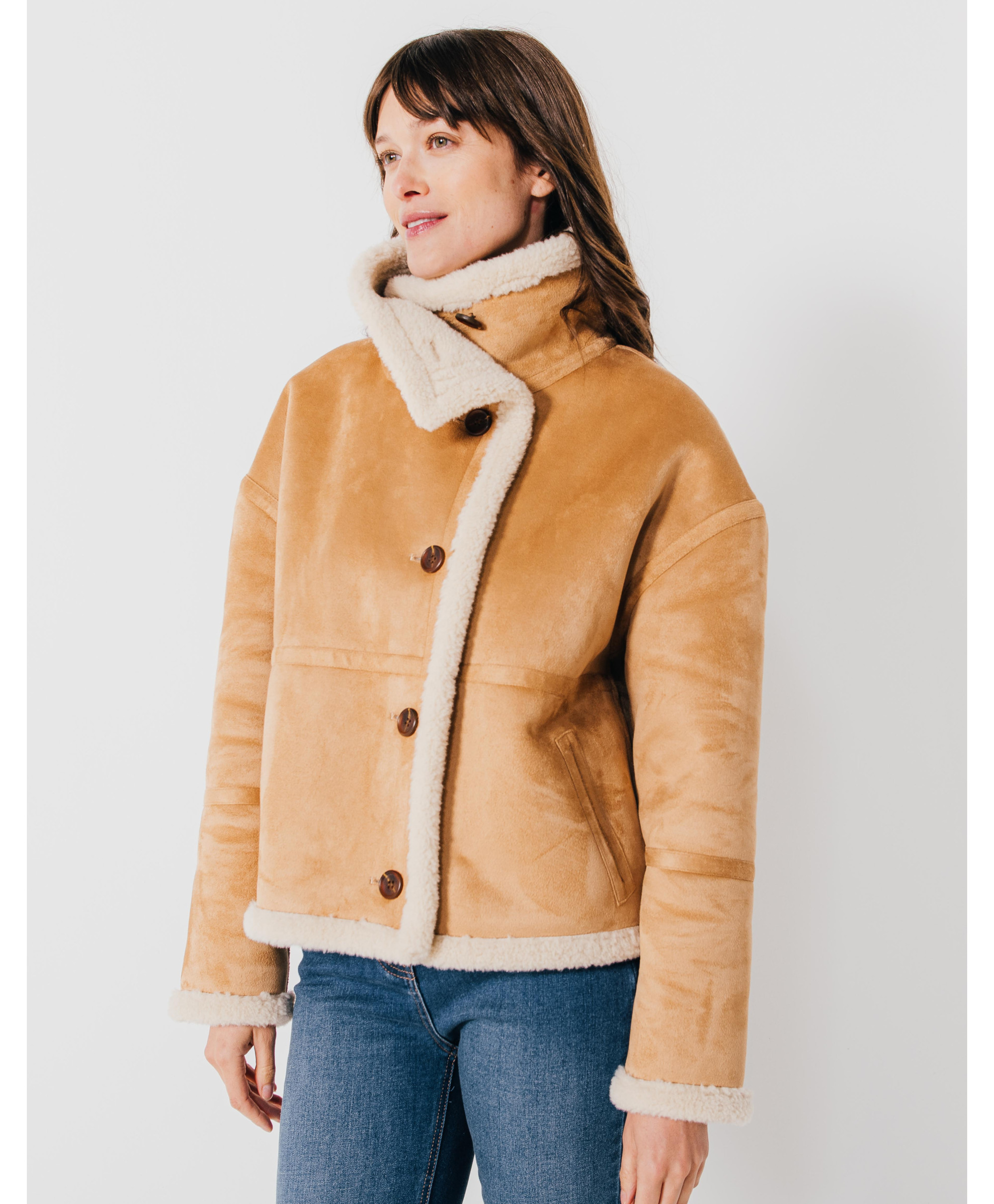 Notre manteau court en peau lainée MARTHE va vite devenir votre atout mode. Craquant pour le côté douillet de l'aspect peau lainée et pour la douceur du tissu suédé, c'est un vrai cocon !