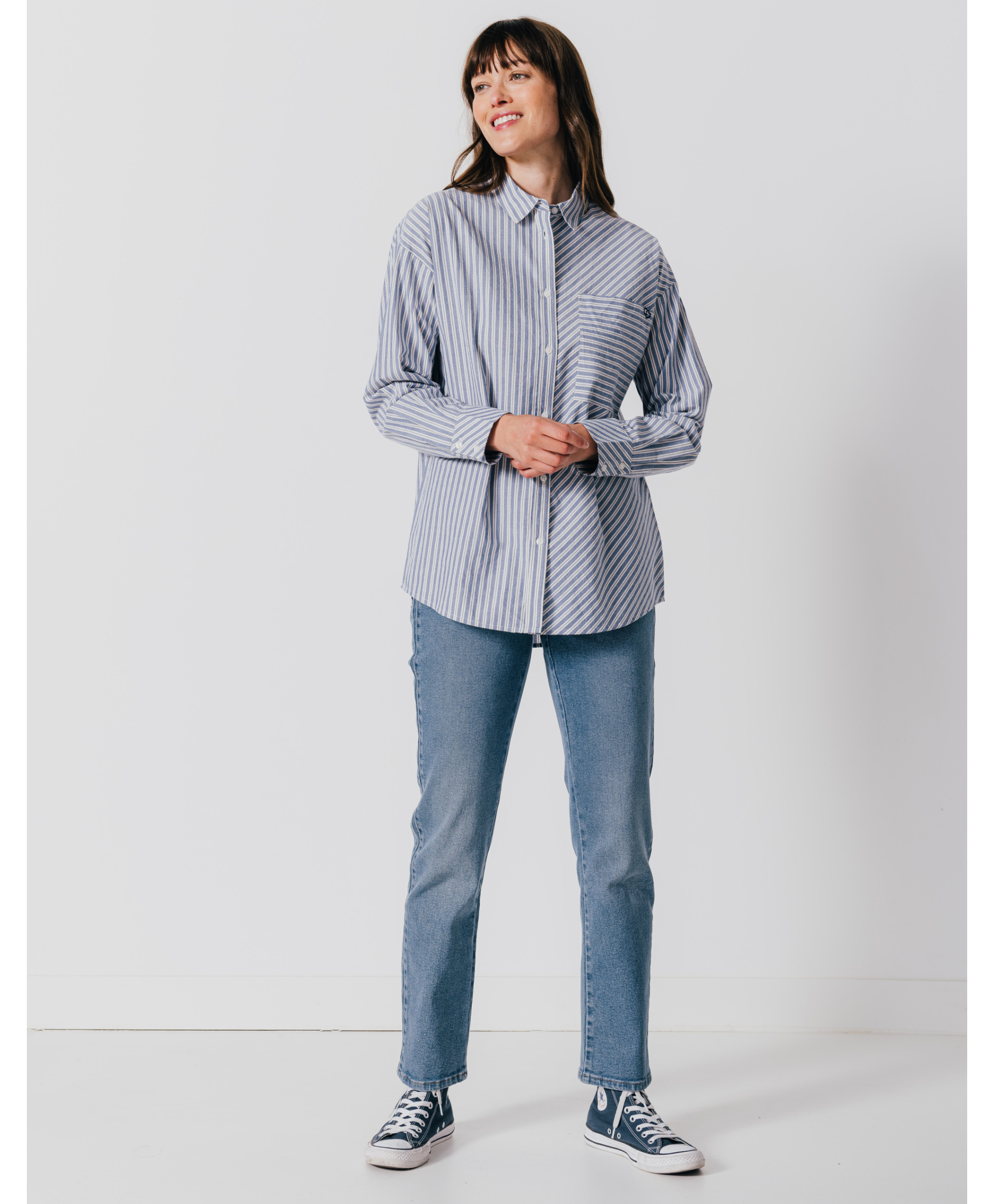 Misez sur cette chemise longue et féminine à rayures, un essentiel du dressing féminin. Intemporelle, elle présente une coupe droite et un col chemise à porter ouvert ou fermé. A associer avec un jean et un pull sans manches pour jouer sur les volumes.