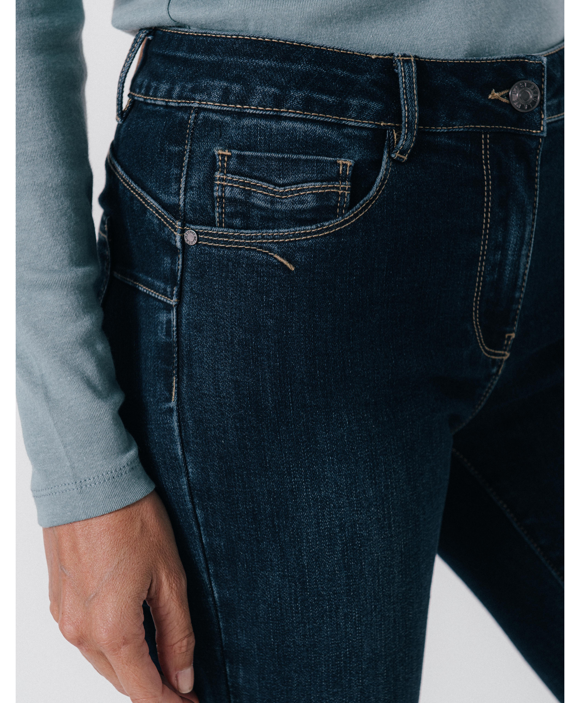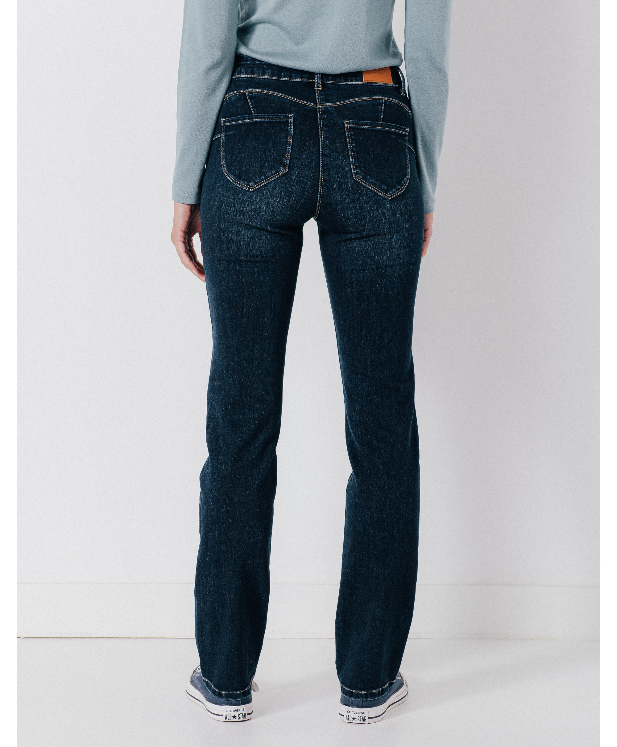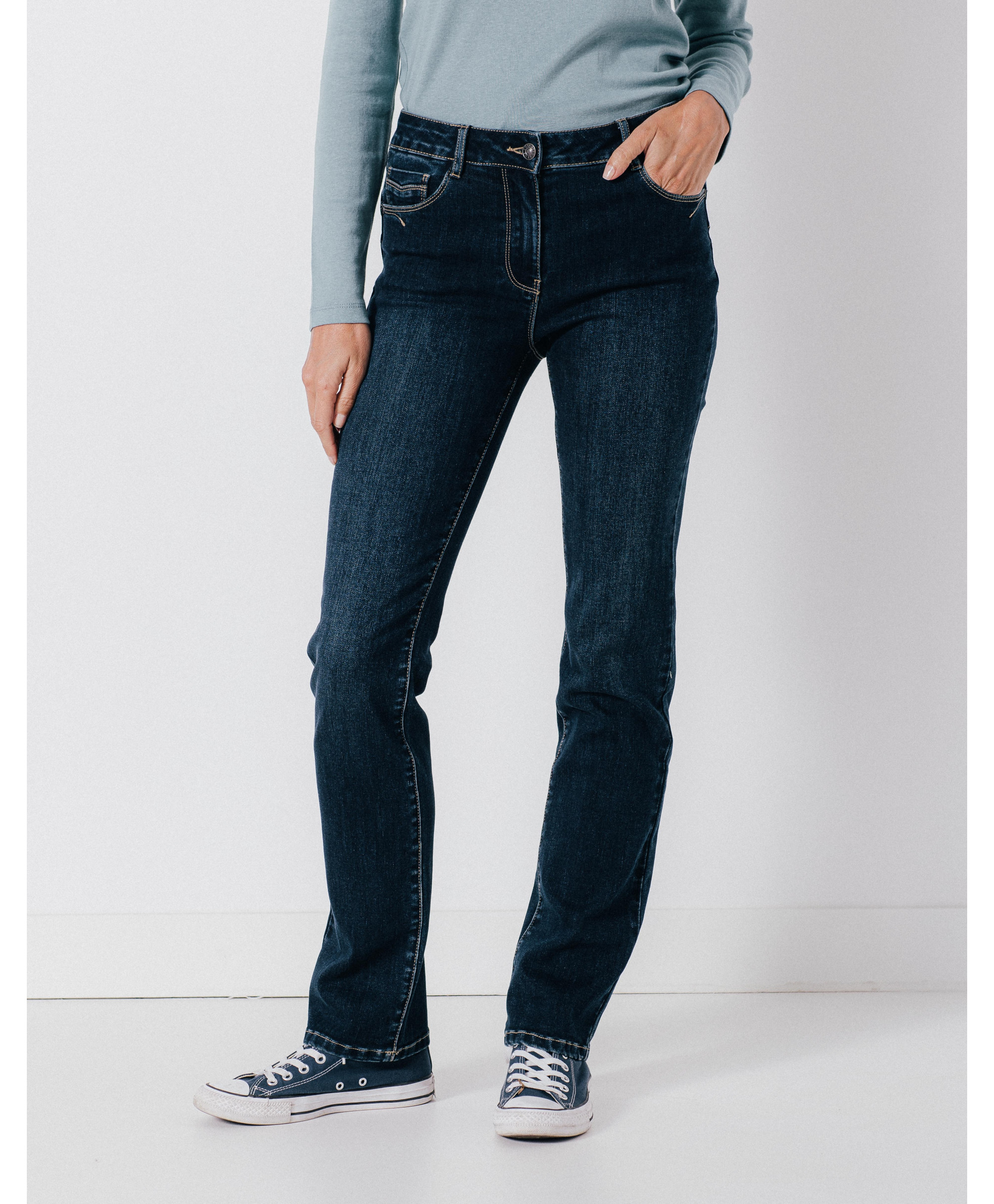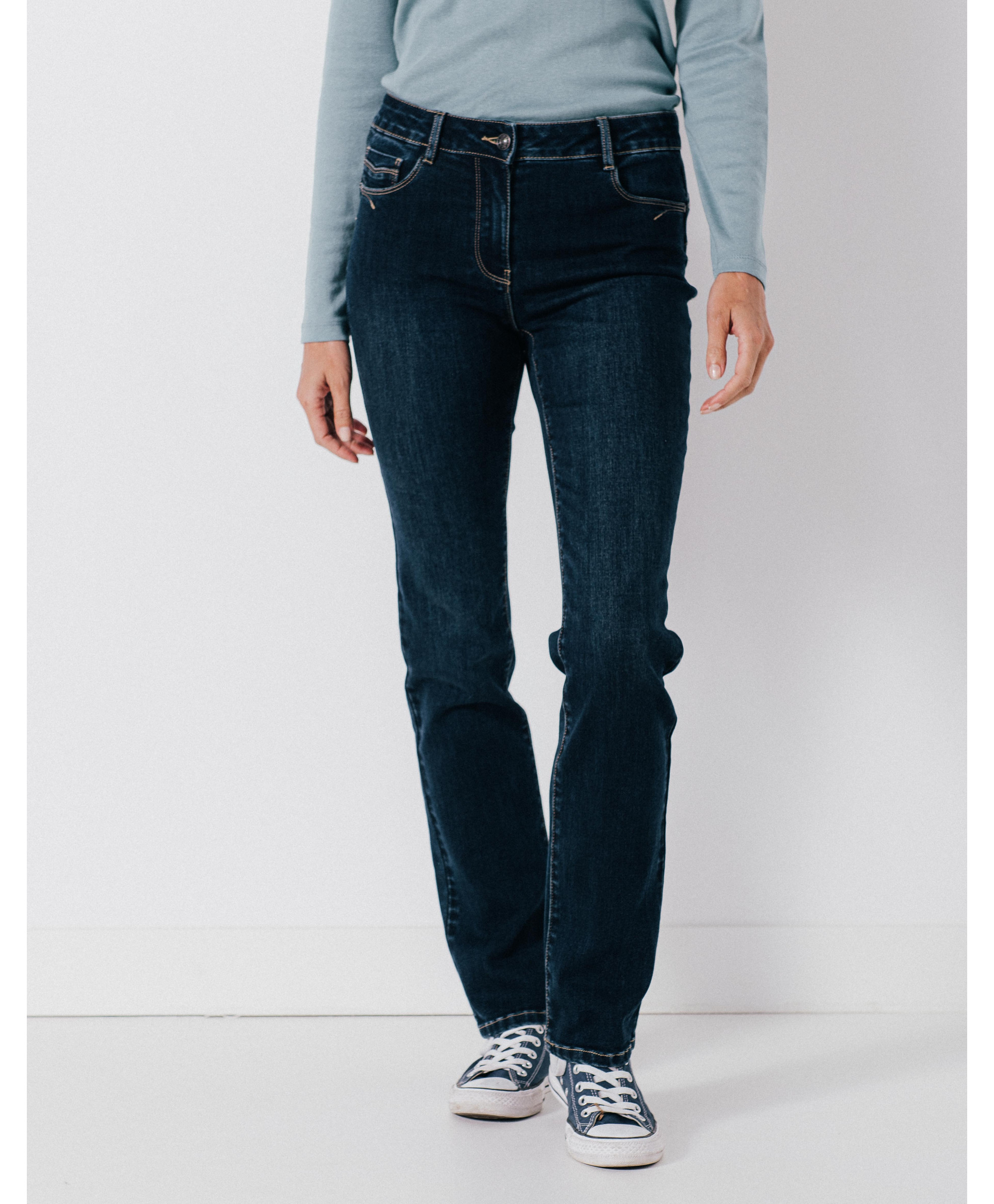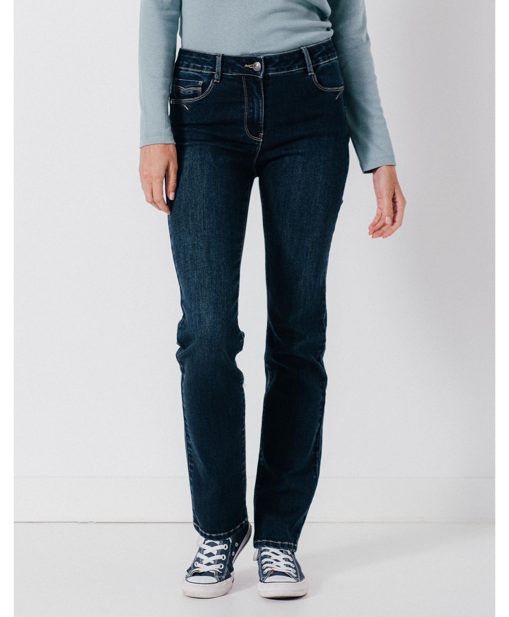 Le jean droit est LE jean indispensable du vestiaire féminin. Avec sa coupe facile, il s’adapte à toutes les situations et s’accorde aussi bien avec un sweat à capuche et des baskets, qu’avec une chemise et des sandales. Ce jean femme affiche une taille haute qui permet d’élancer la silhouette et de souligner la taille avec élégance. Confectionné dans une matière extensible, il accompagne tous les mouvements et offre beaucoup de confort.
