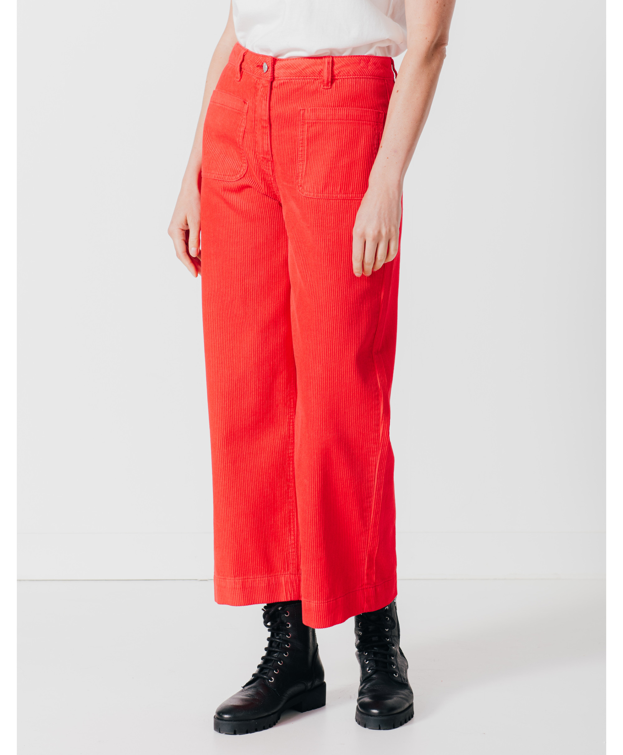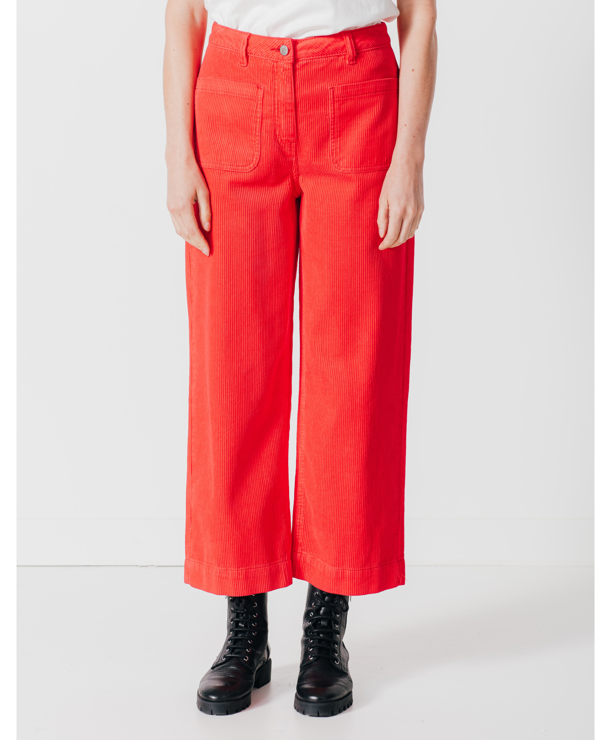 Un pantalon en velours coupe large et raccourci qui assume pleinement son allure vintage mais si moderne. Confectionné dans une matière coton, il vous assure un maximum de confort. A associer avec un tee-shirt print et une veste en tweed.