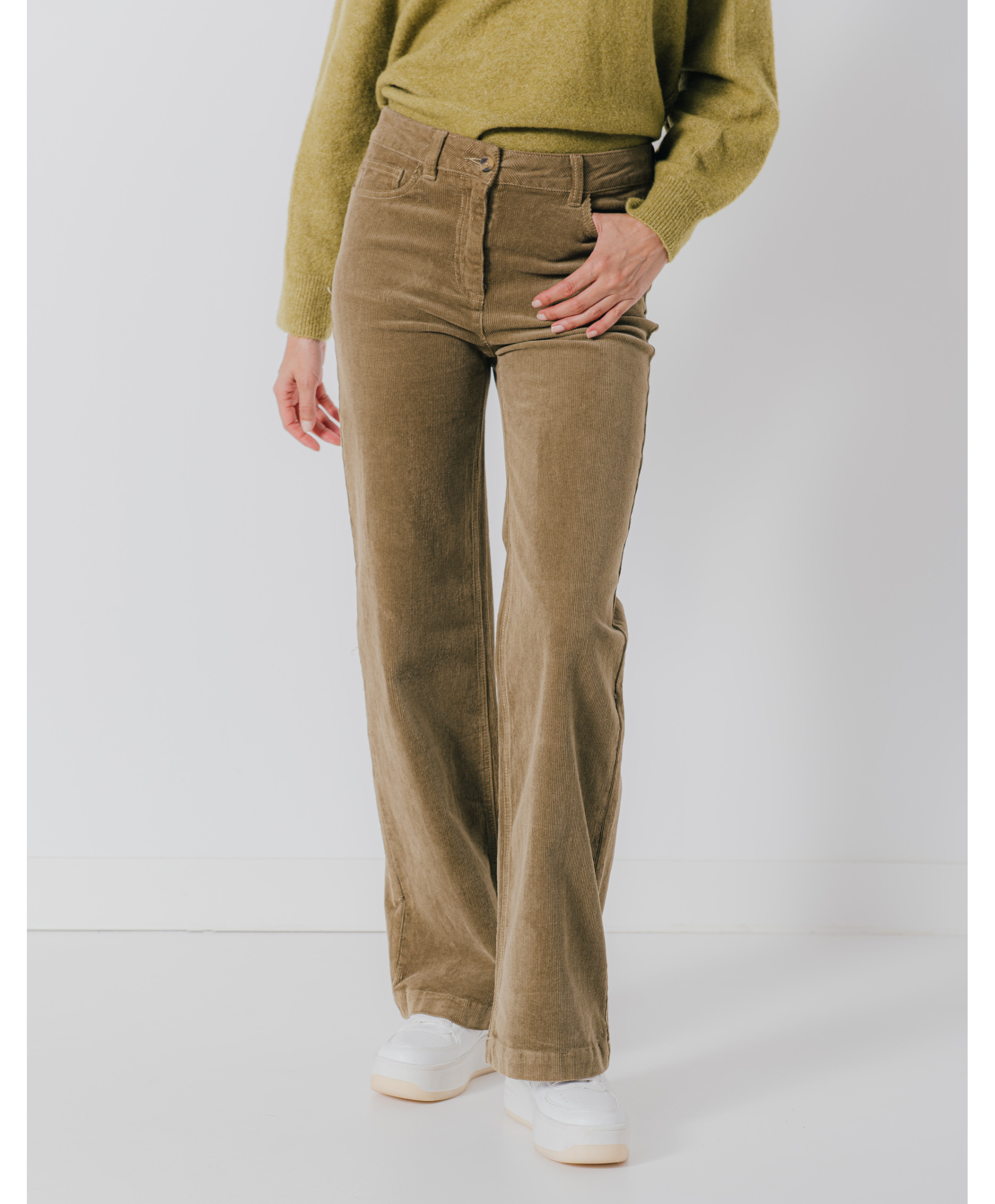 Un pantalon femme fortement influencé par les années 70. Avec sa forme évasée en bas de jambe, ce pantalon en velours fin assume pleinement son allure vintage. Confectionné dans une matière coton, il vous assure un maximum de confort. A associer avec un tee-shirt print et une veste en bouclette.