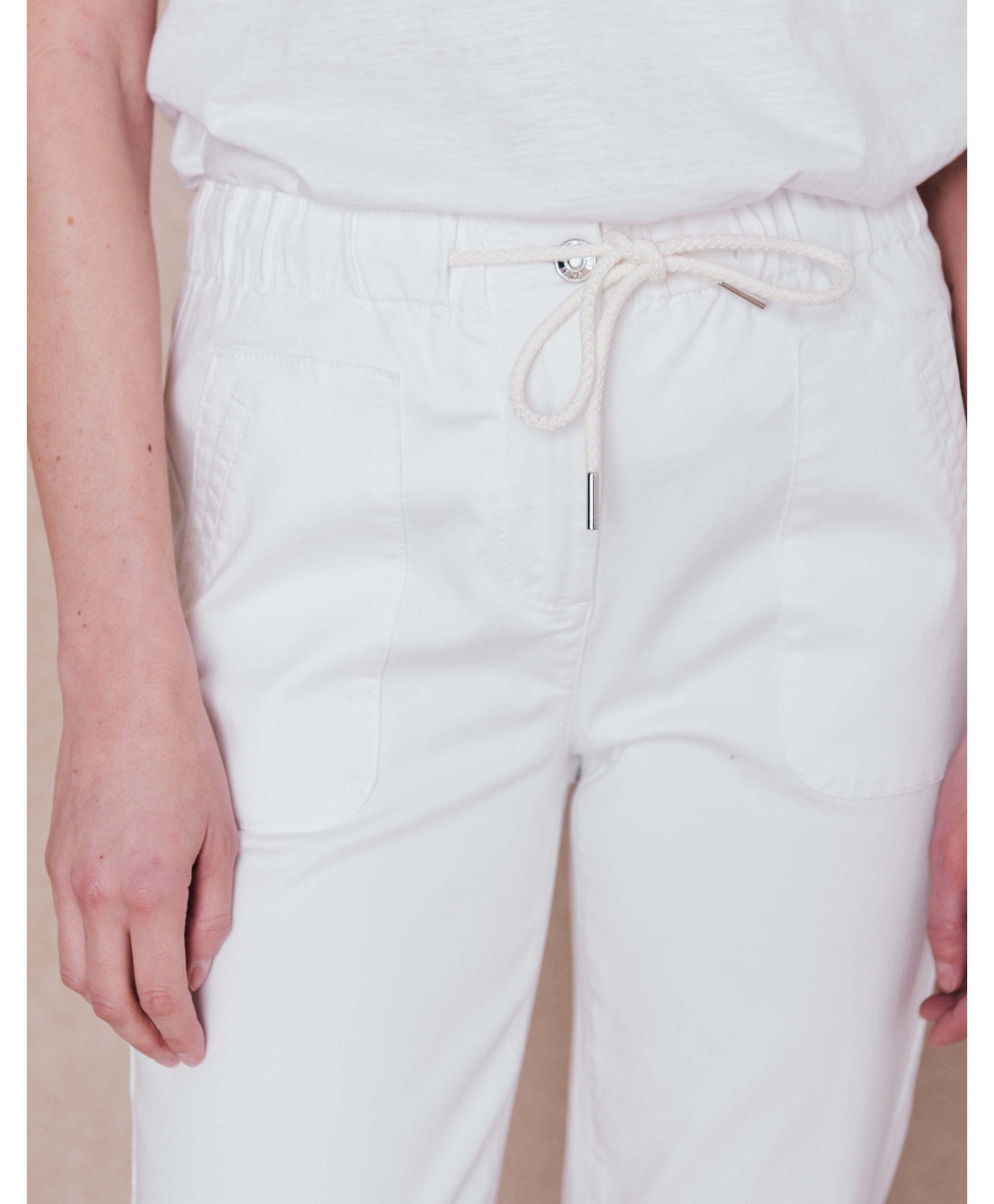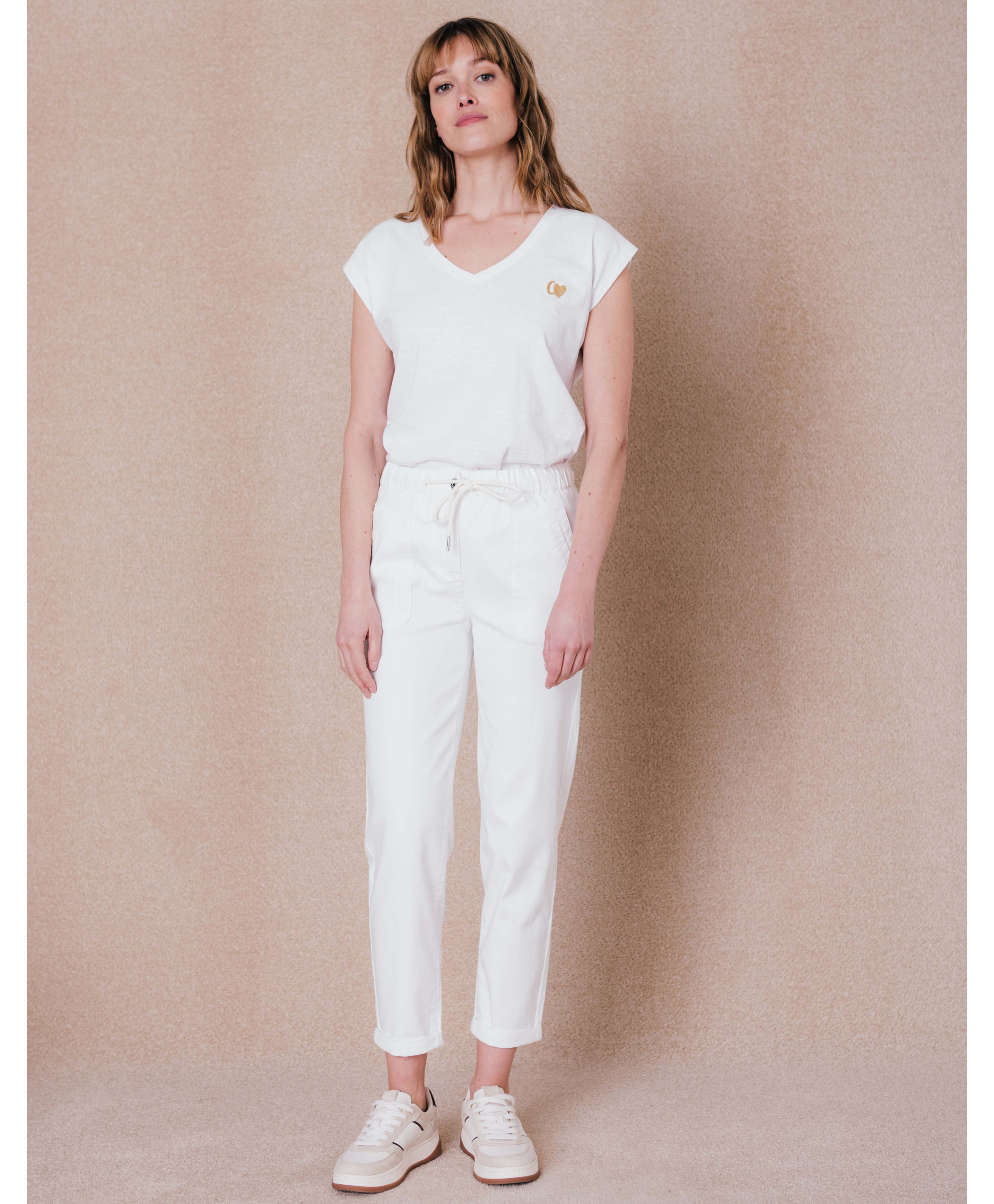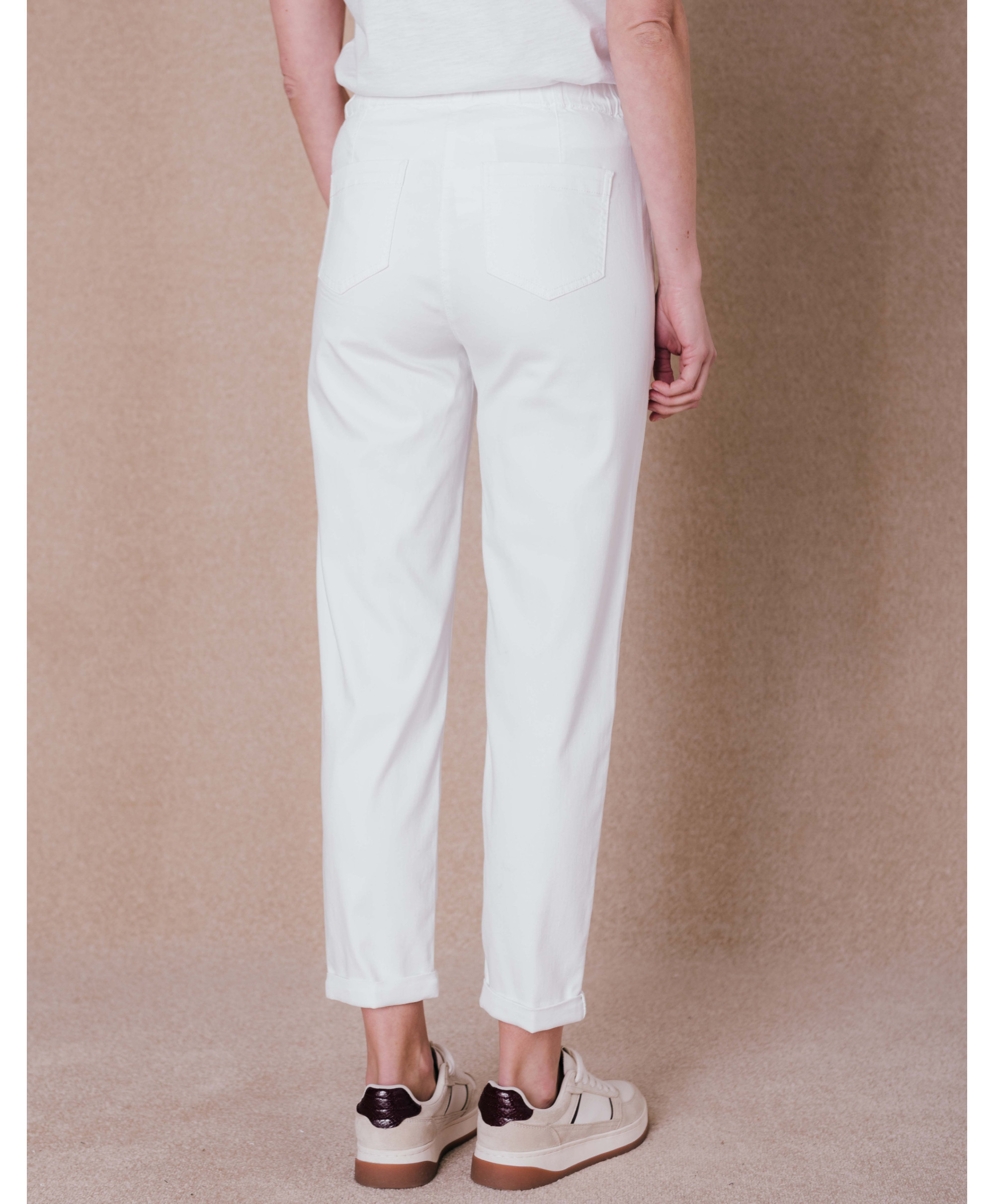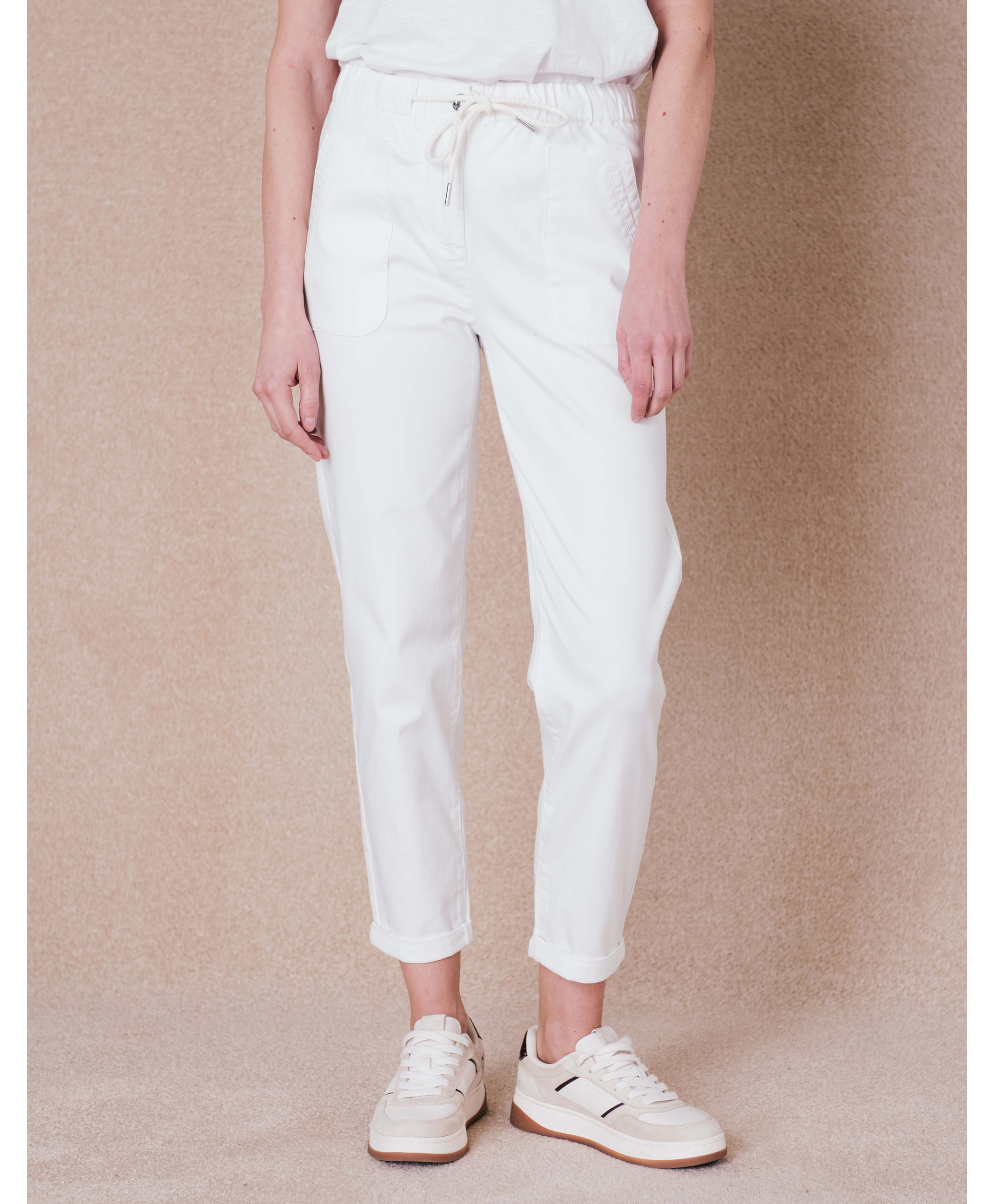Ce pantalon est une pièce idéale pour la saison. Doté d’une taille élastiquée et ajustable par cordon coulissant, il assure un habillage facile et un grand confort tout au long de la journée. Avec sa cou