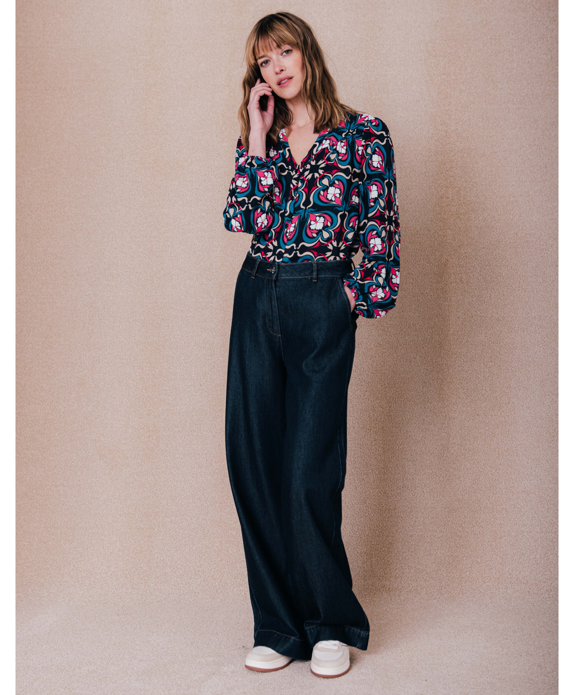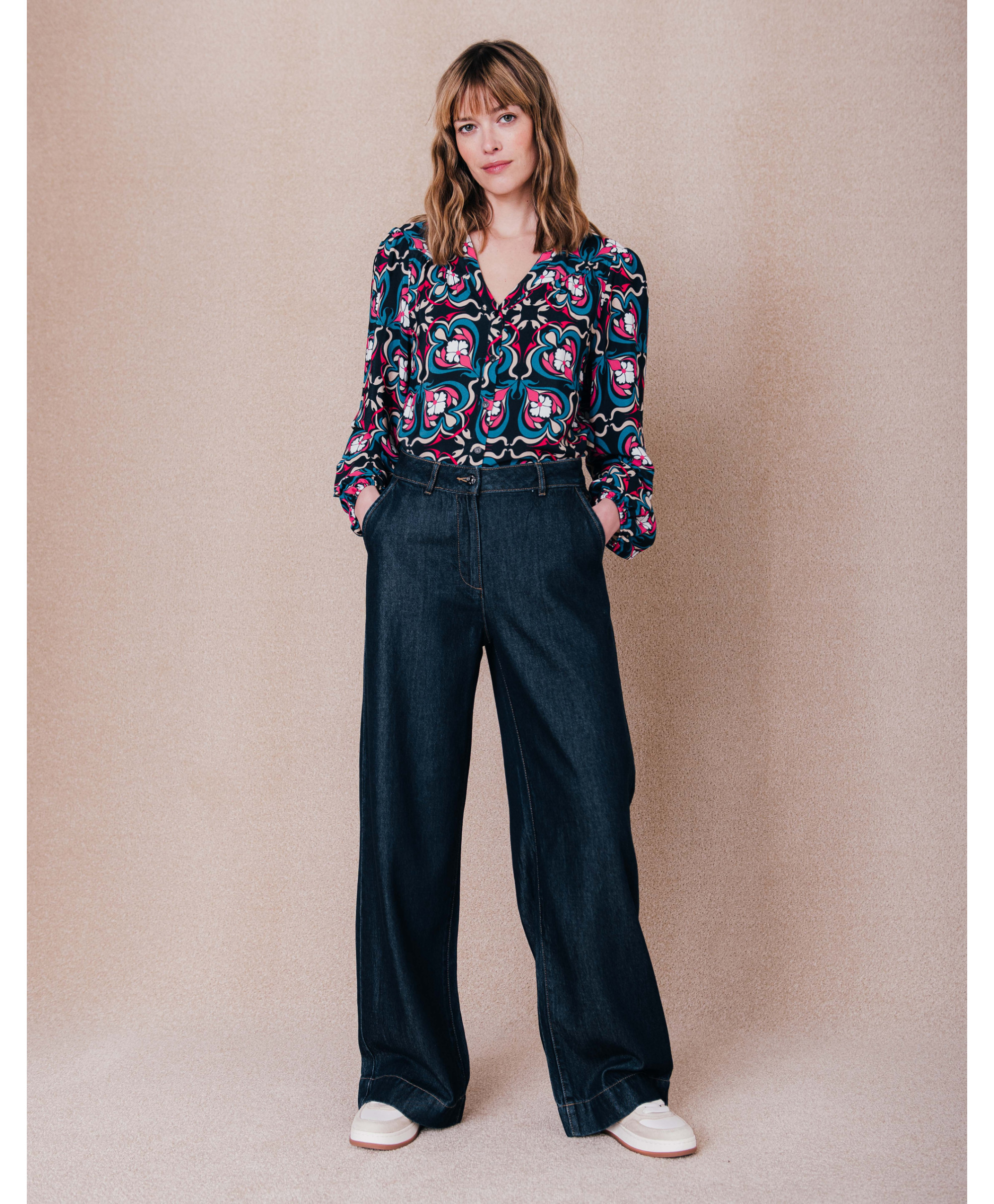 Le nouveau jean de la saison qui va devenir l'intemporel du vestiaire d'été. Avec sa coupe large et son délavage brut, il s’adapte à toutes les situations et s’accorde aussi bien avec un chemisier et des