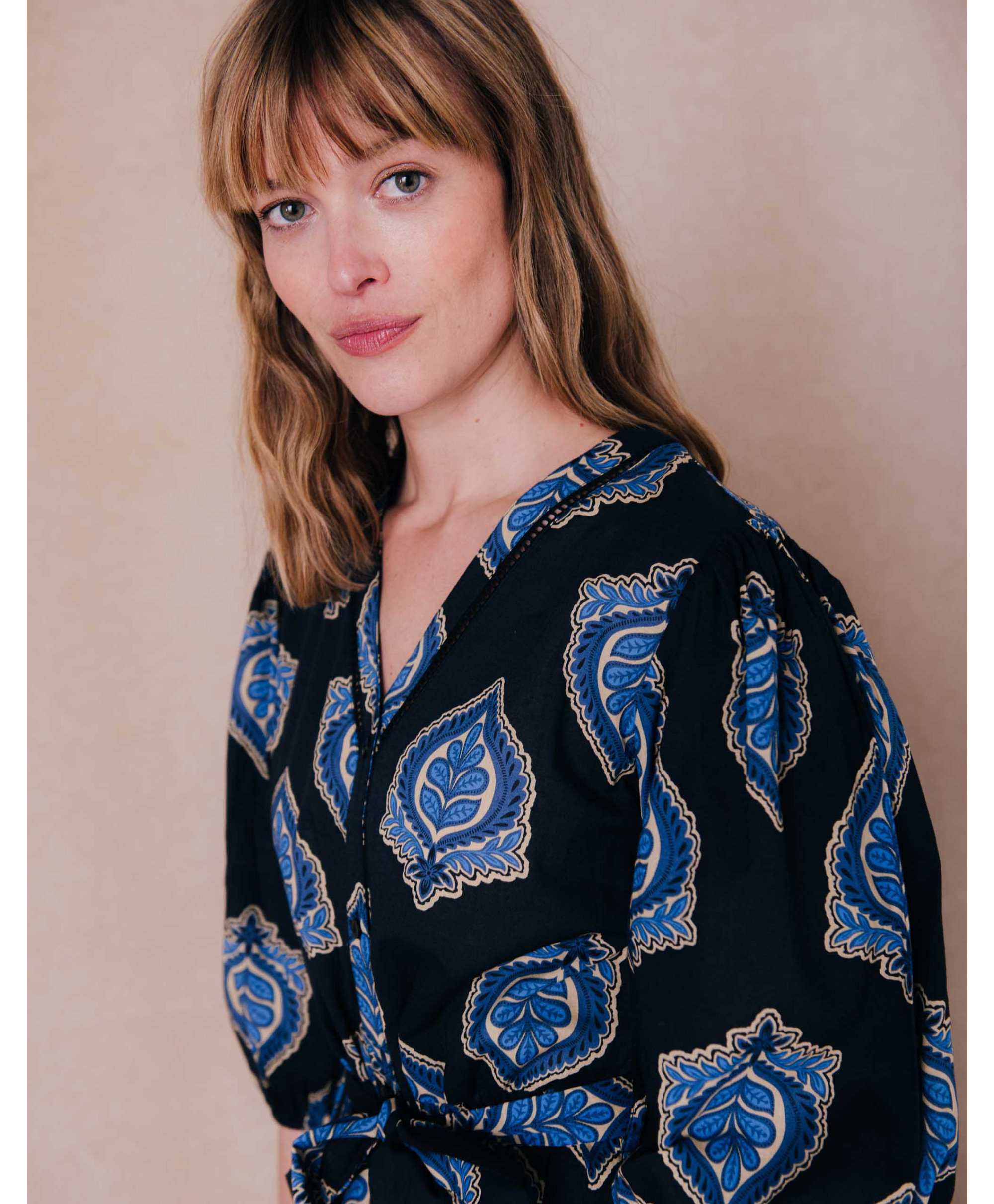 Jouez la carte bohème avec cette robe longue imprimée pour plus de féminité ! Portez-la avec des sandales et quelques bijoux pour un look bohème chic.