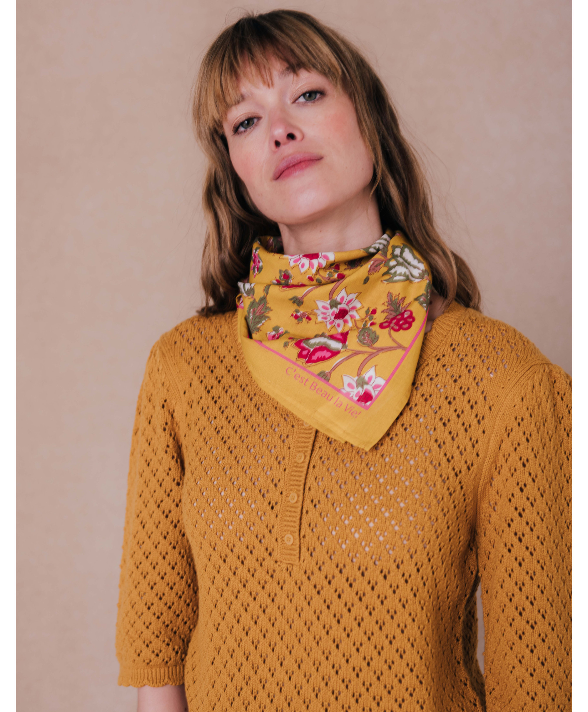 Craquez pour ce pull à manches courtes et sa maille fantaisie. Il est à la fois élégant, confortable et chaleureux. Vous n'allez plus vouloir le quitter !