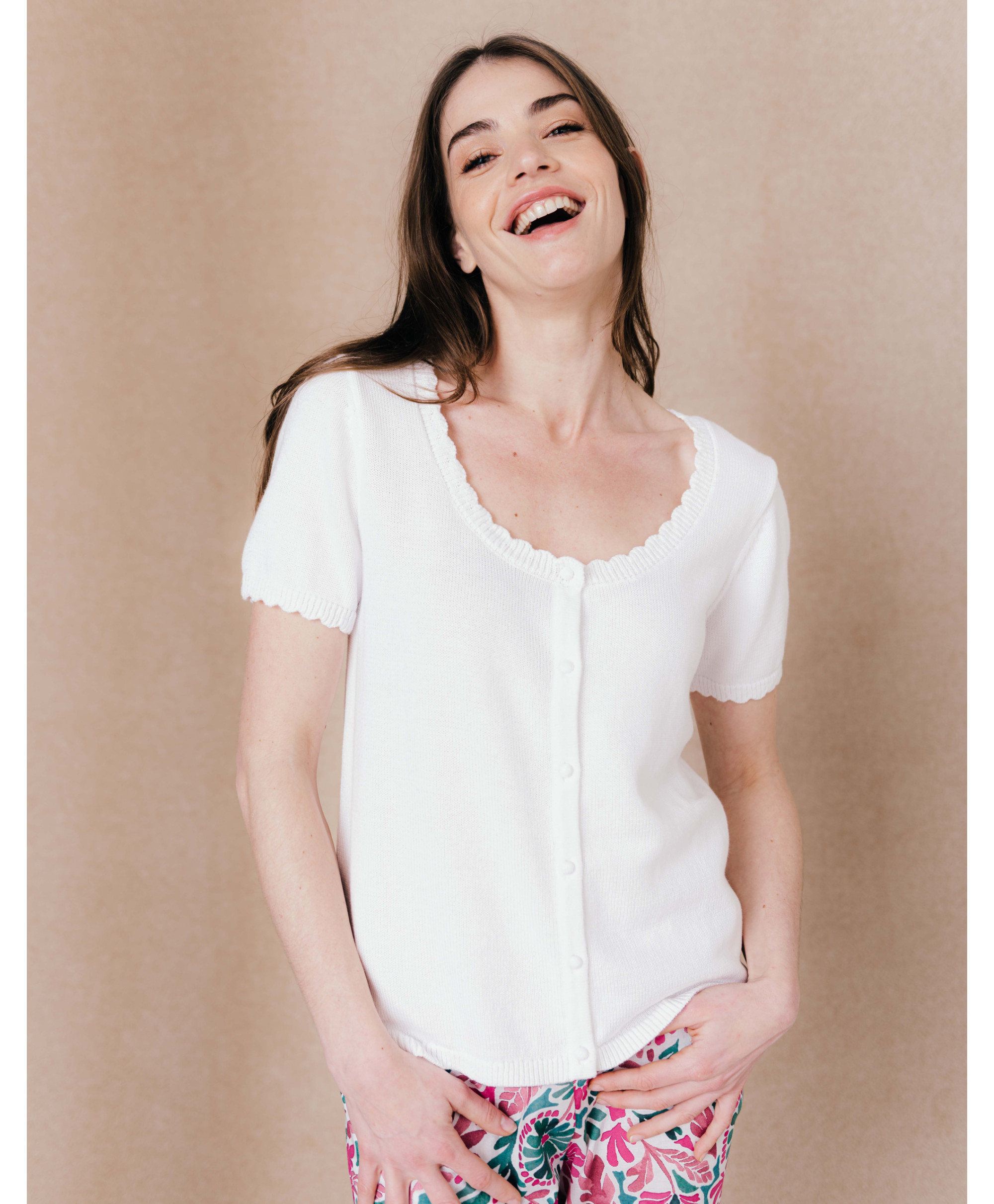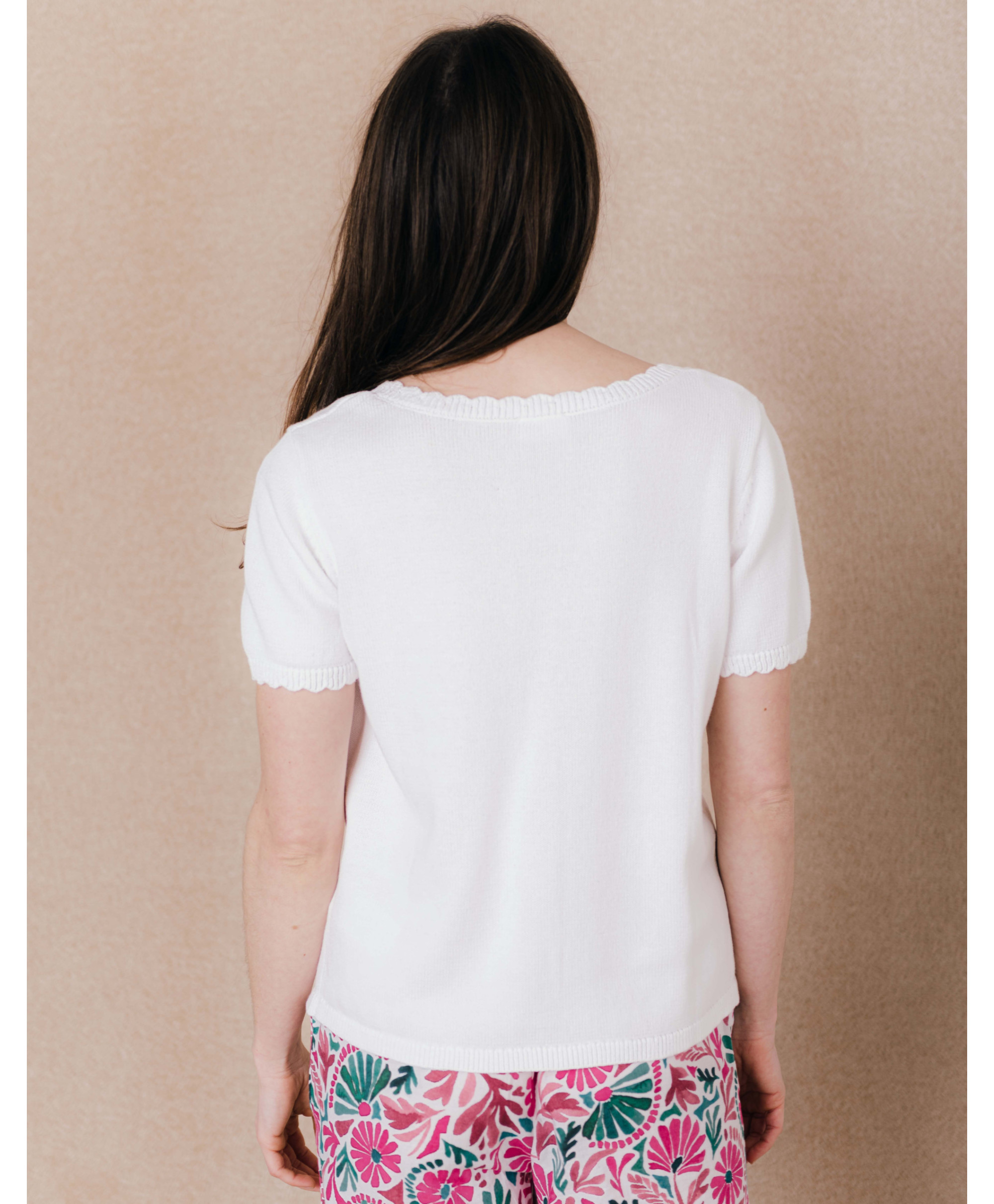 On aime ce gilet confectionné dans une maille fantaisie. Parfait sur une jupe. Une pièce essentielle du dressing.