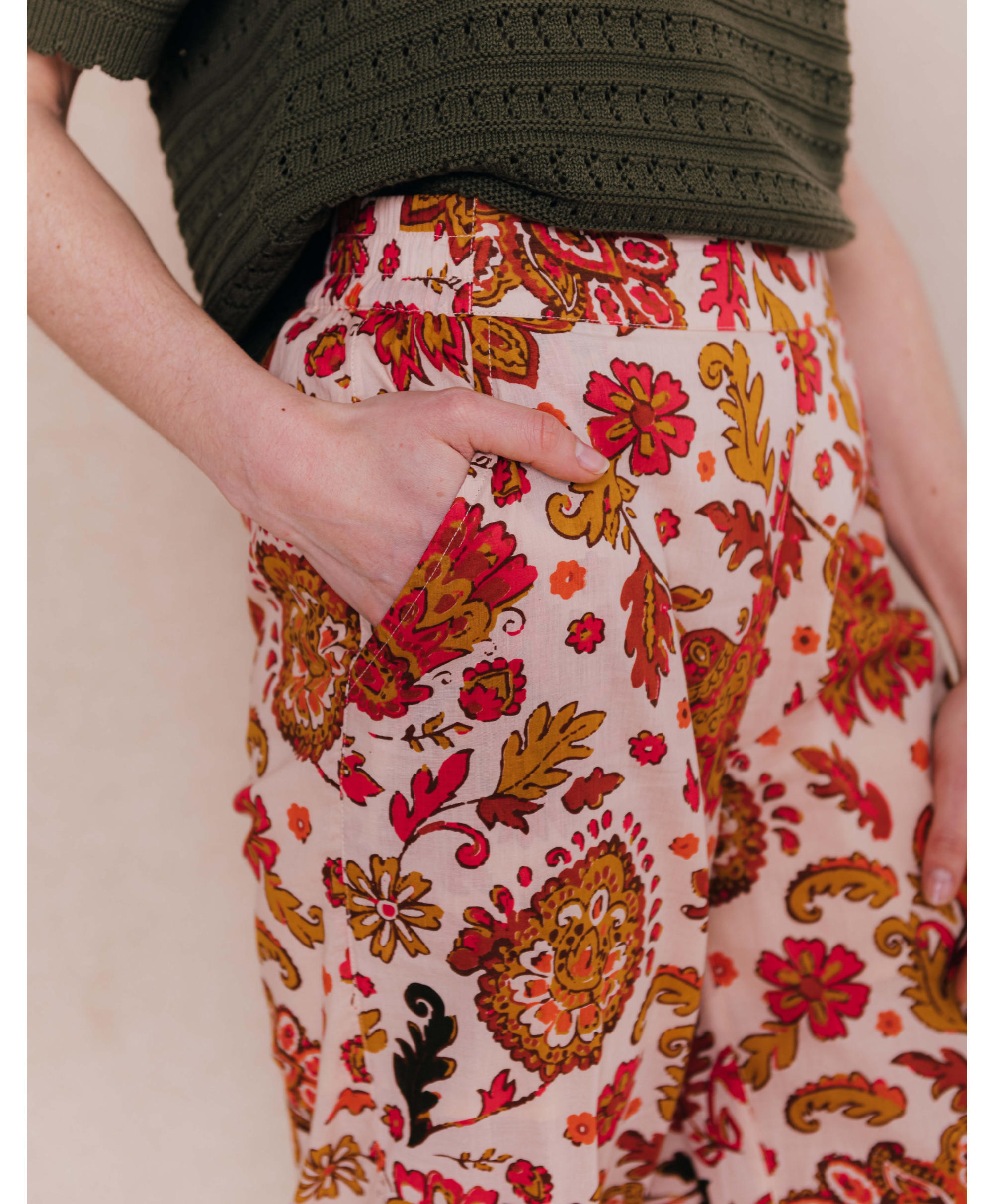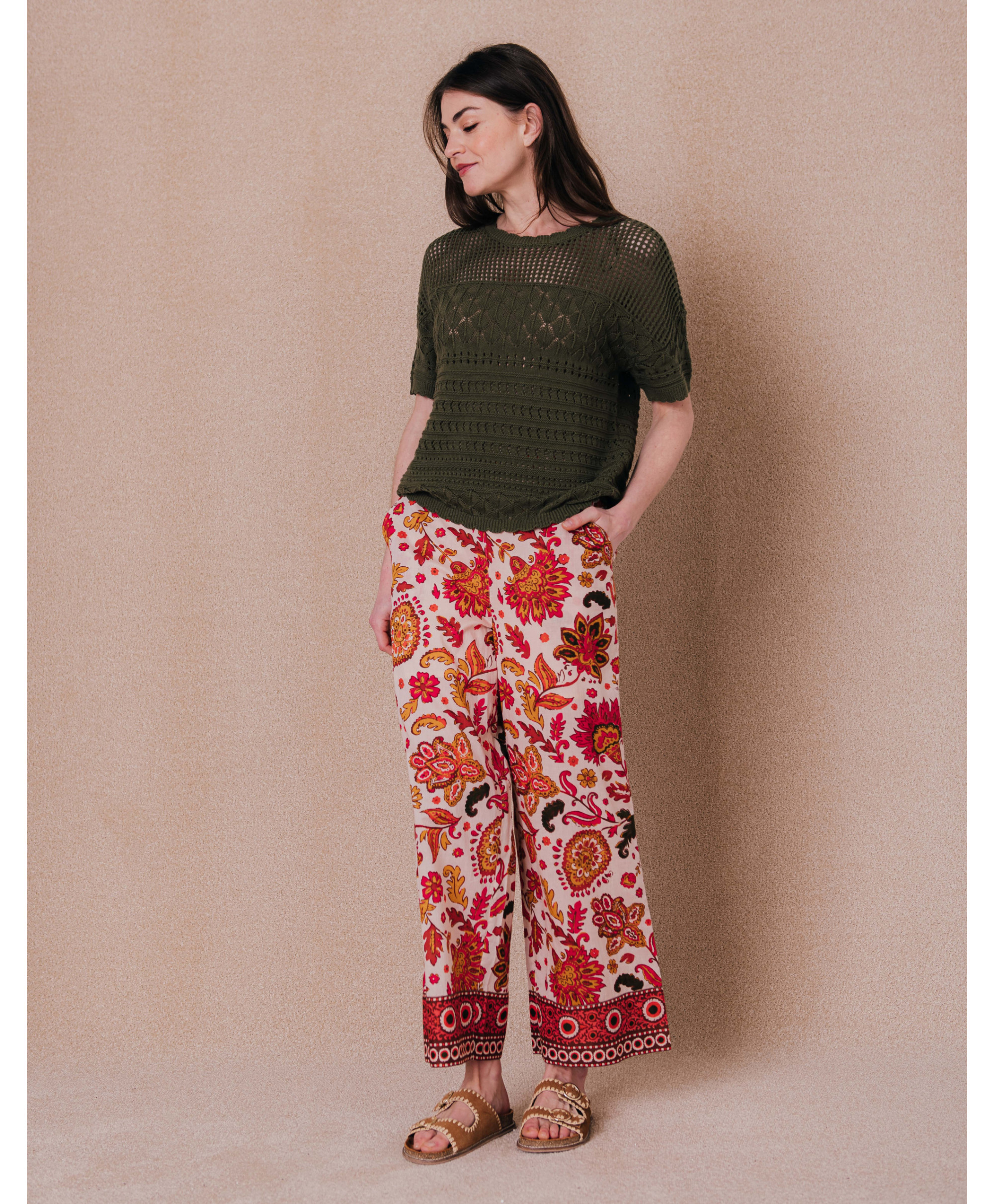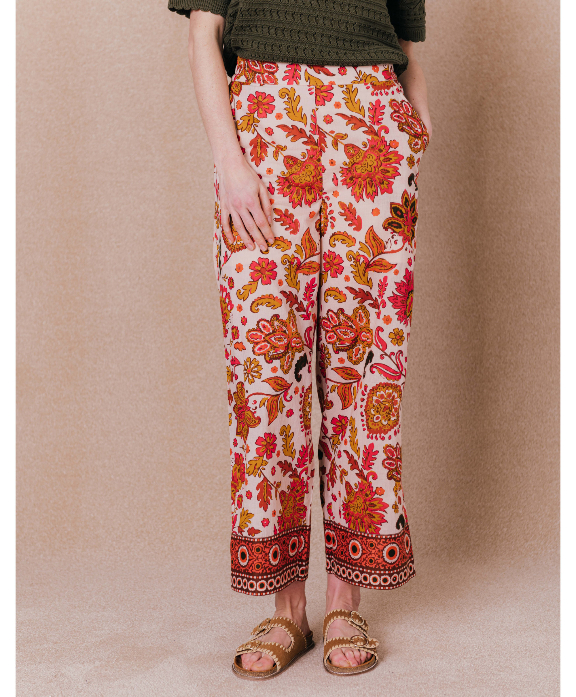Mettez de la couleur dans votre dressing grâce à ce pantalon imprimé cachemire. En 100% coton, il est particulièrement agréable à porter en saison estivale.