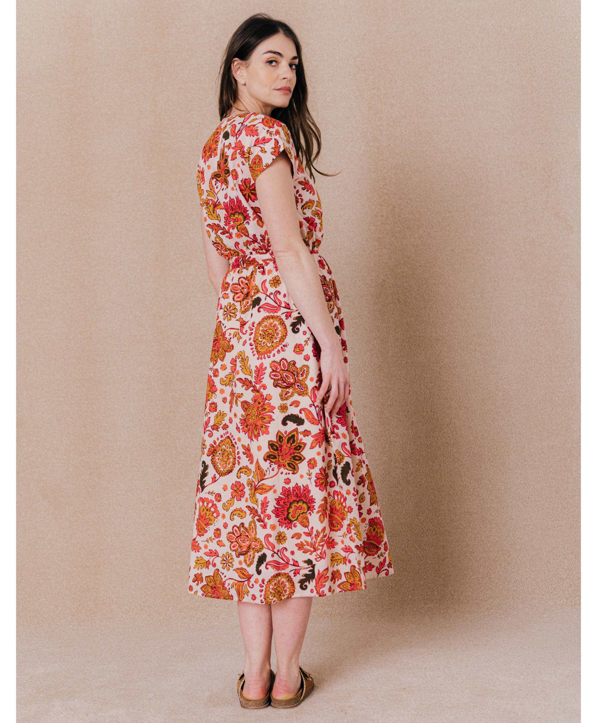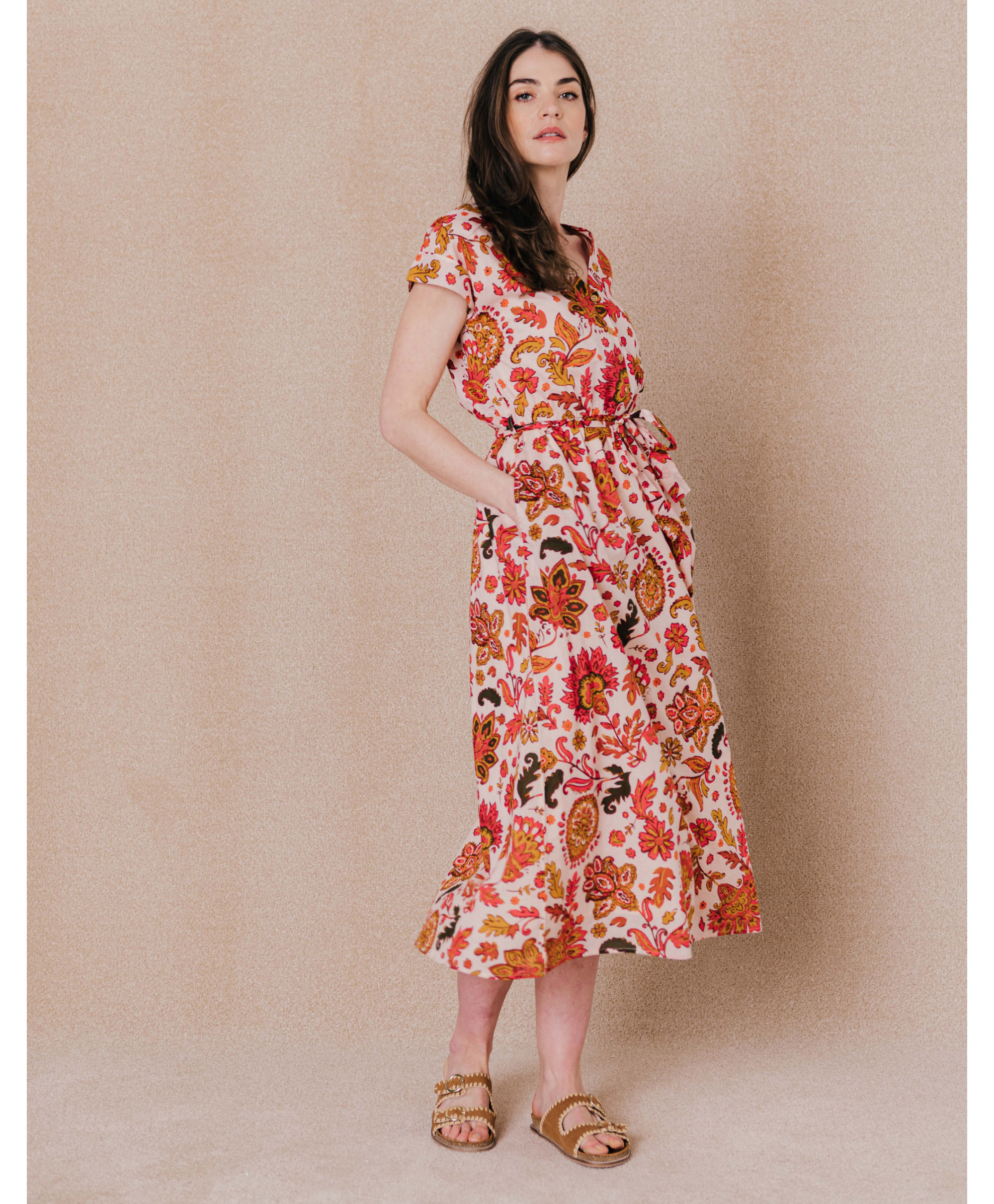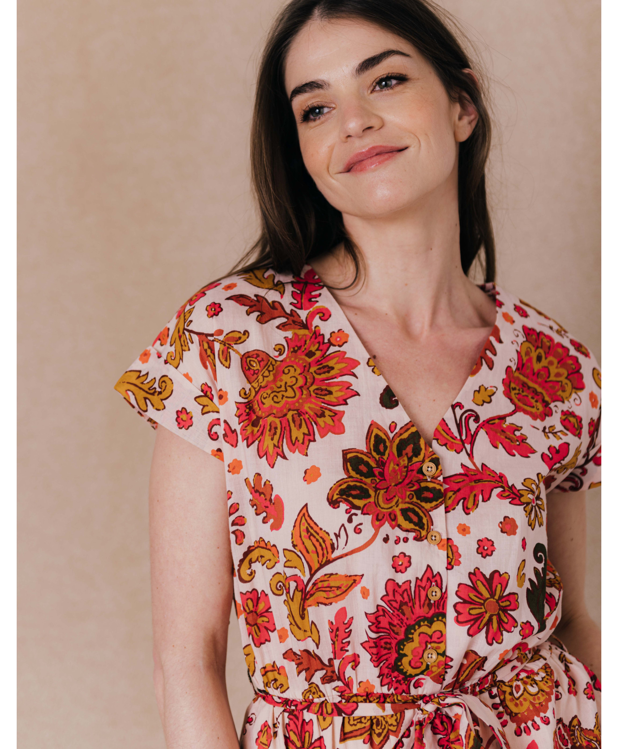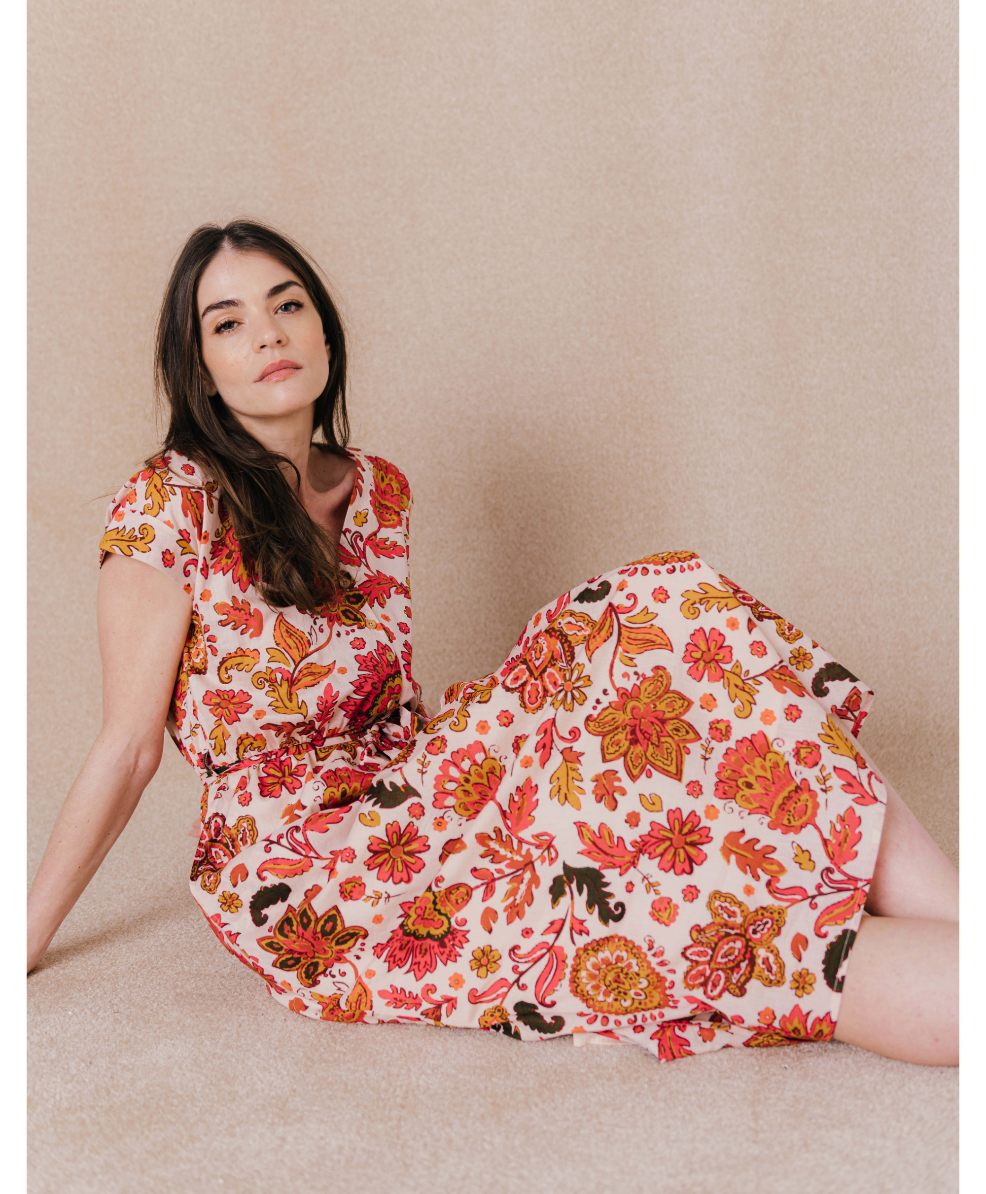 Cette robe agit comme un rayon de soleil dans notre quotidien ! Passez une saison toute en légèreté avec notre robe imprimé grosses fleurs !