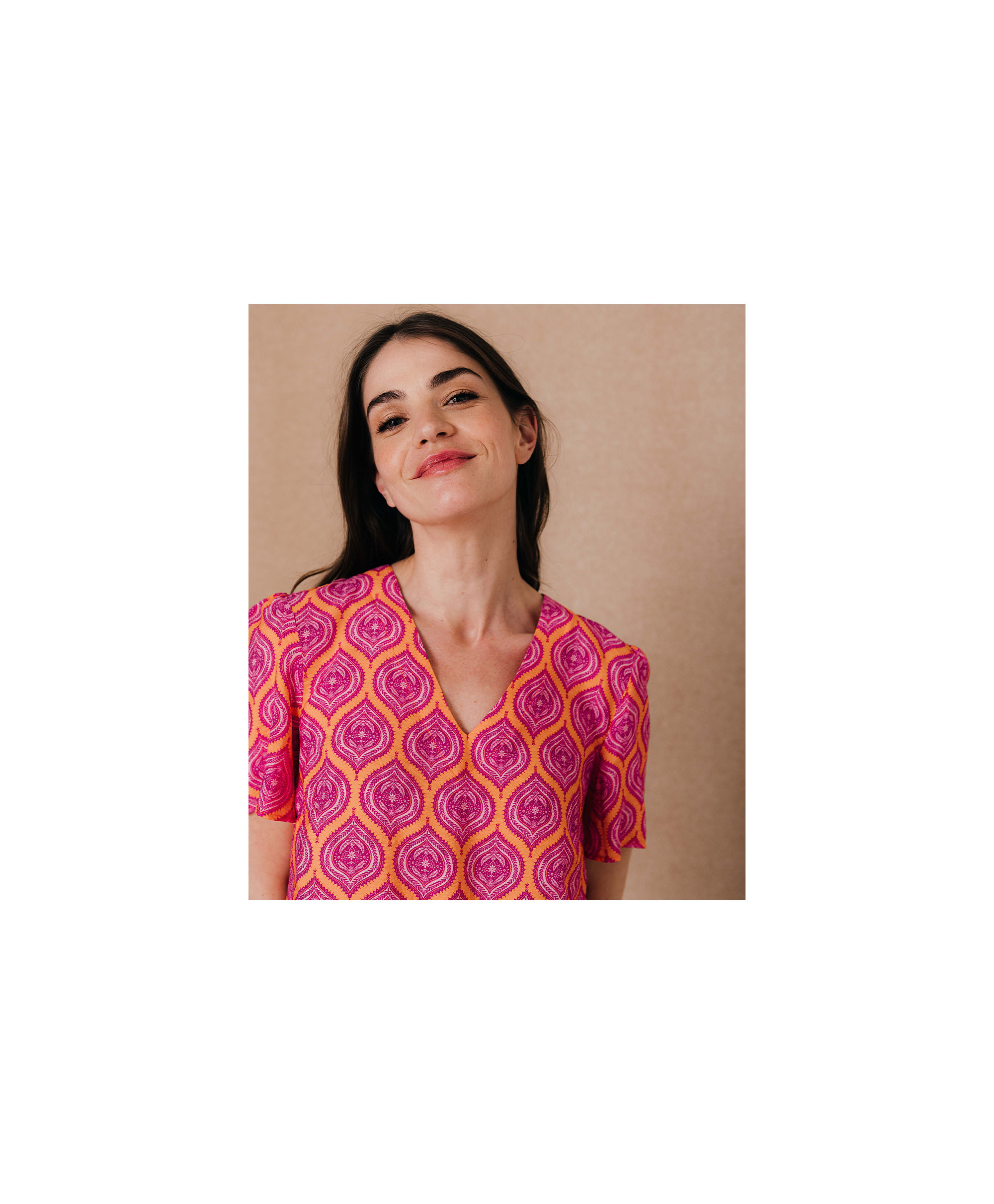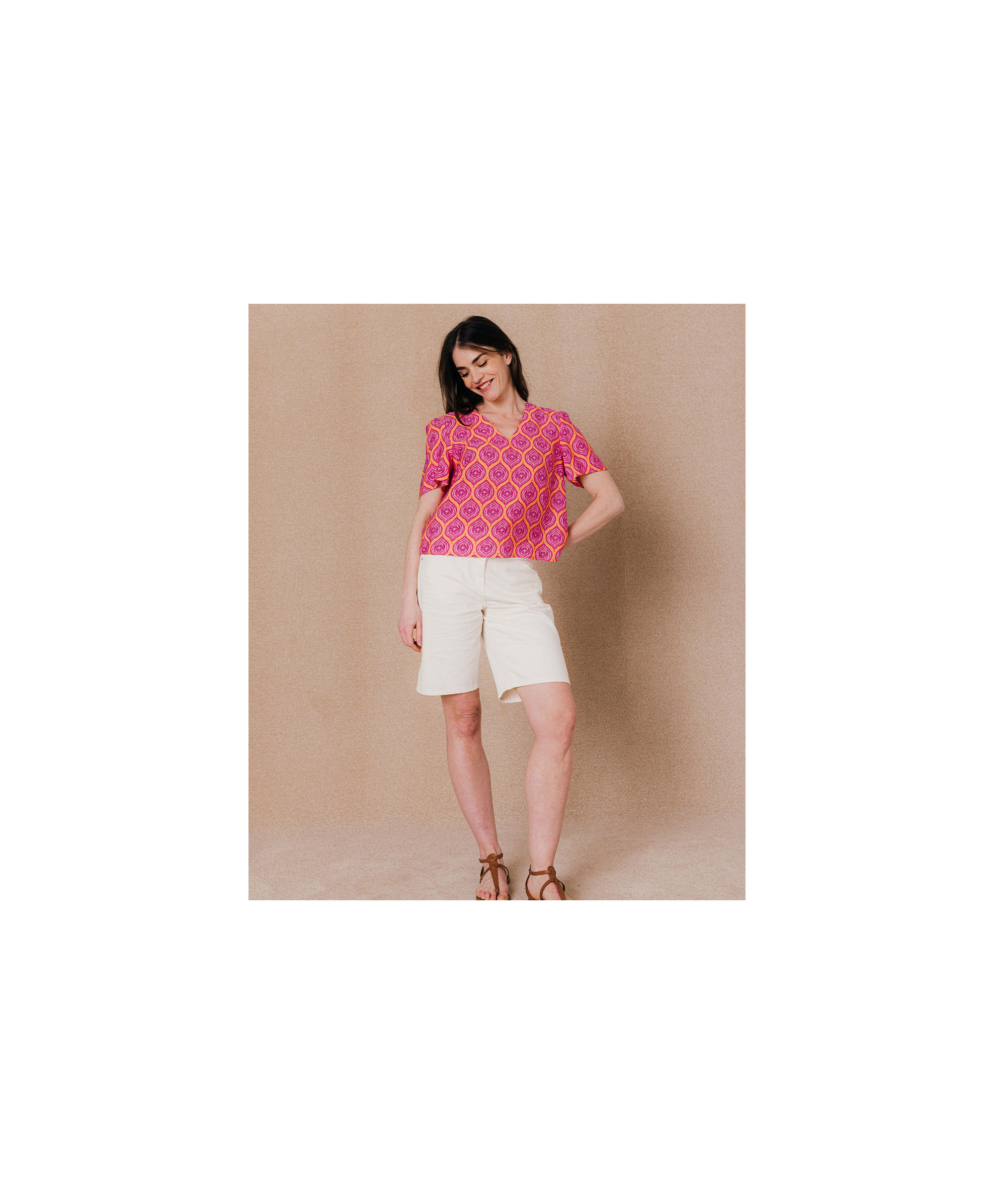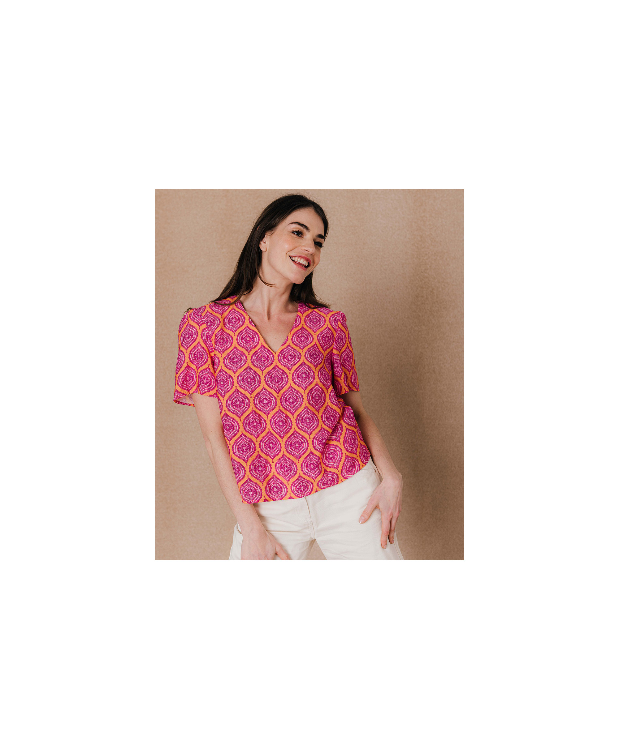On craque pour notre blouse imprimée, très agréable pour le plein été. On l'aime pour la légèreté de sa matière.