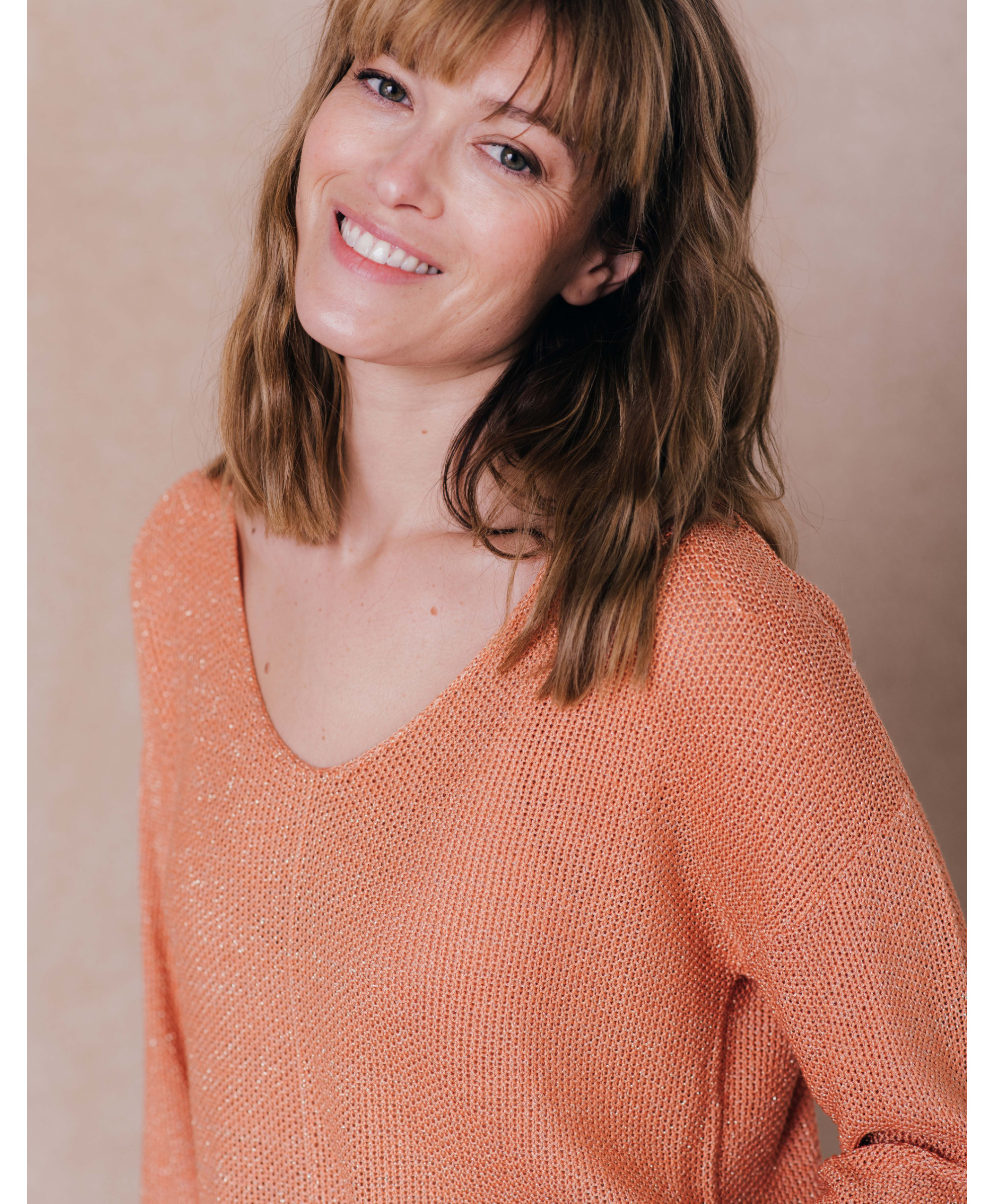 Glissez-vous dans notre pull ajouré et lurex, indispensable de la saison. Avec son col V, ses manches longues et sa maille fantaisie, il est douillet à souhait.