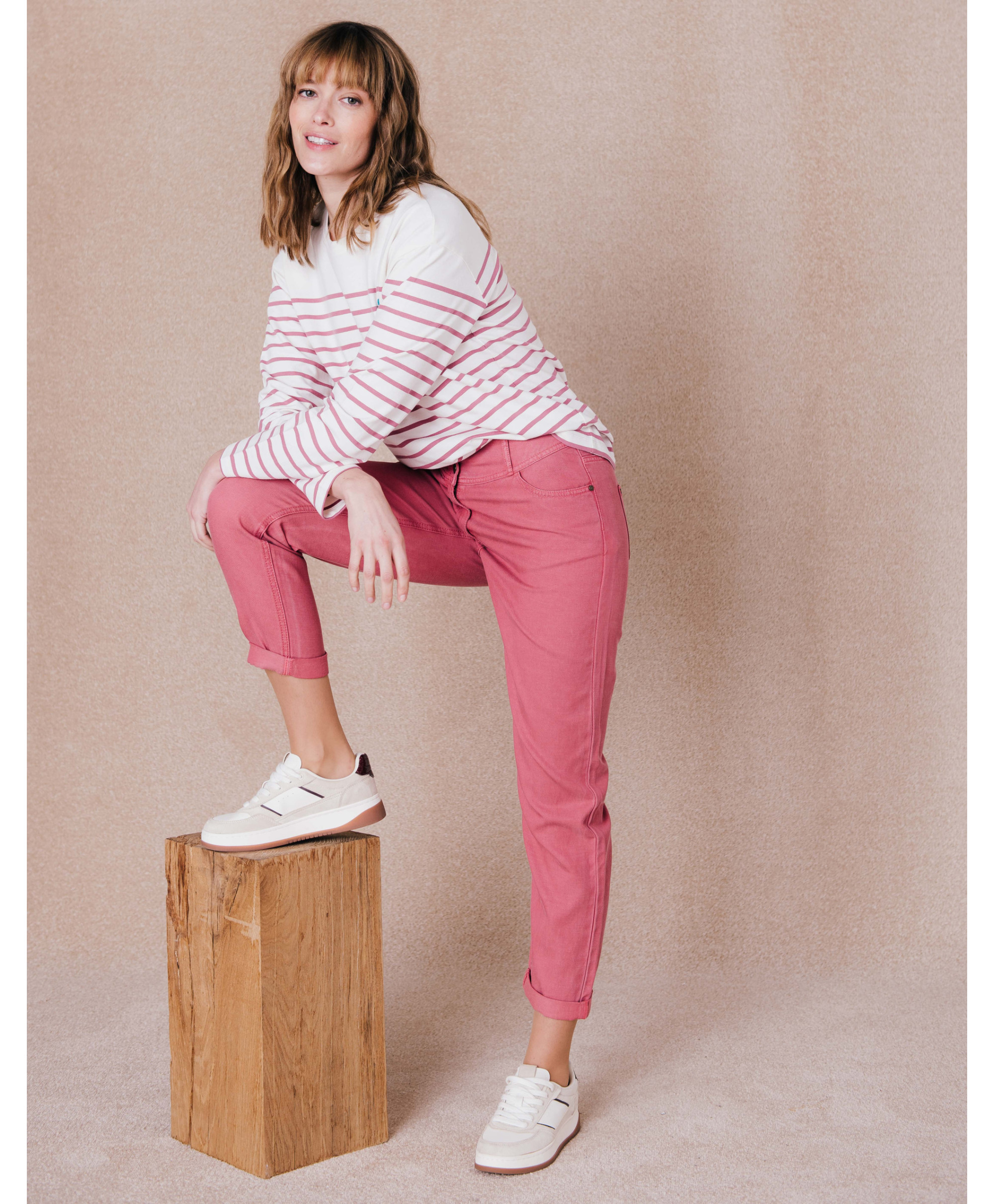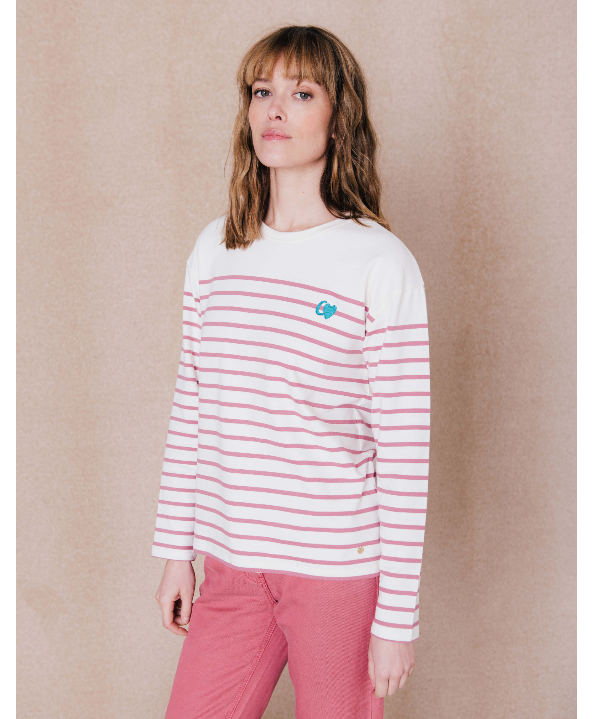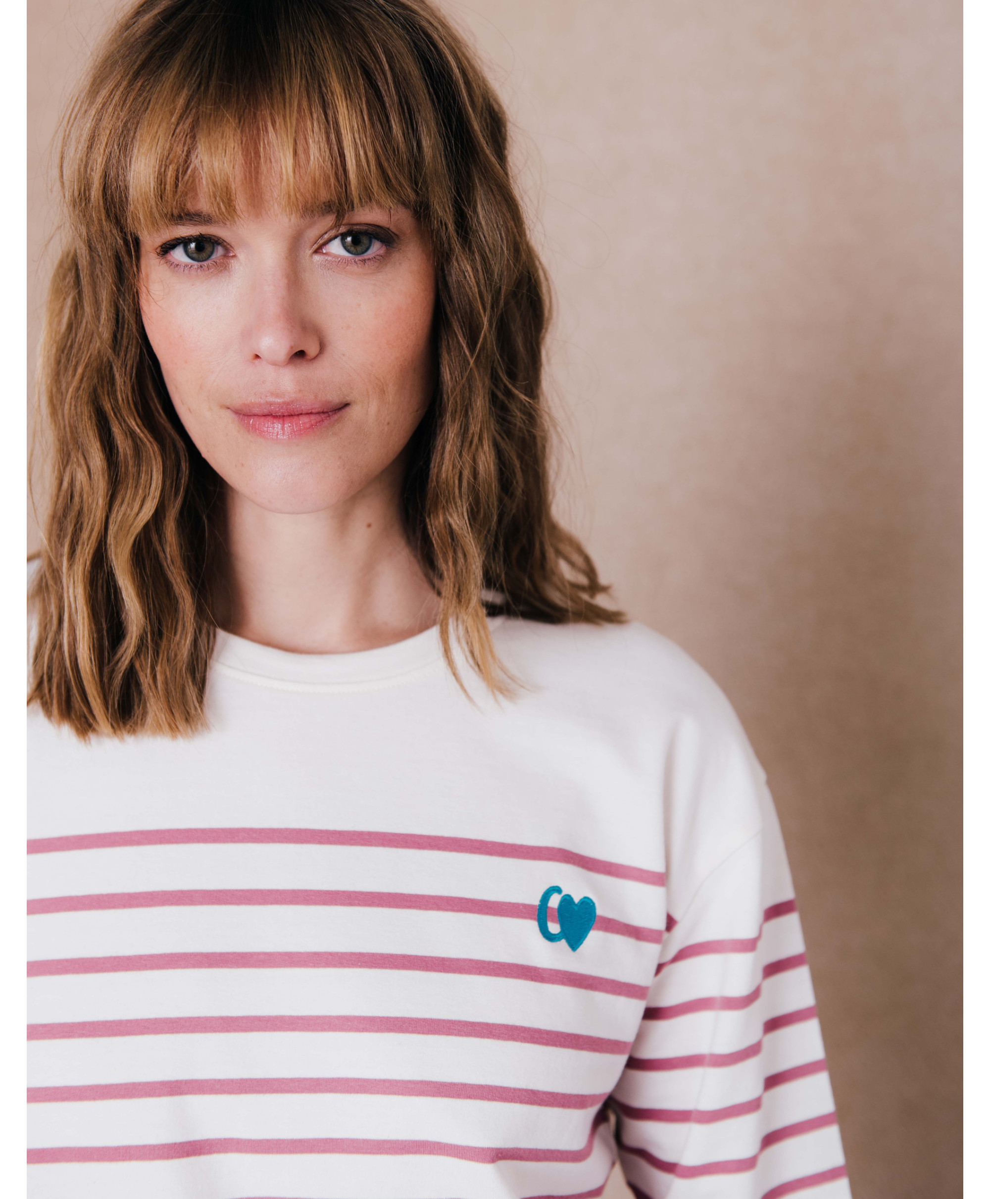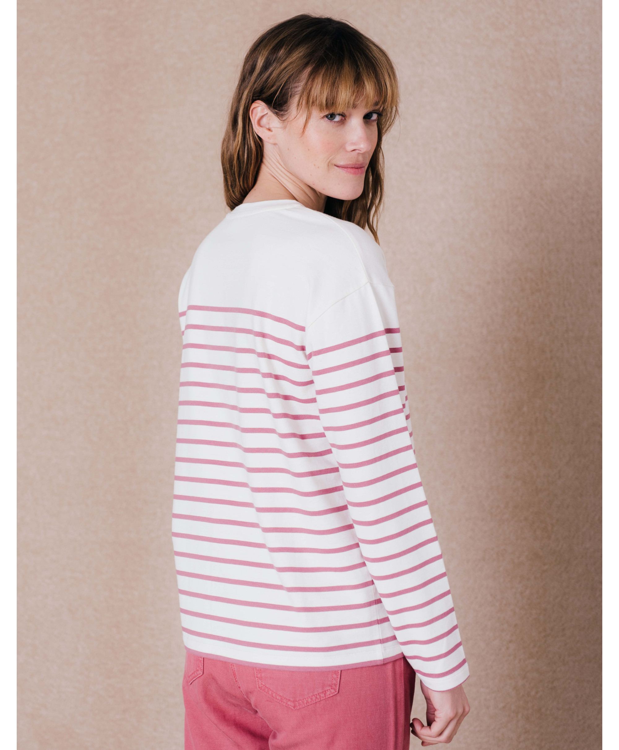 Ce sweat à manches longues rayé, un incontournable pour un look décontracté et élégant. Avec ses rayures, il apporte une touche de fraîcheur et de style marin à votre garde-robe.