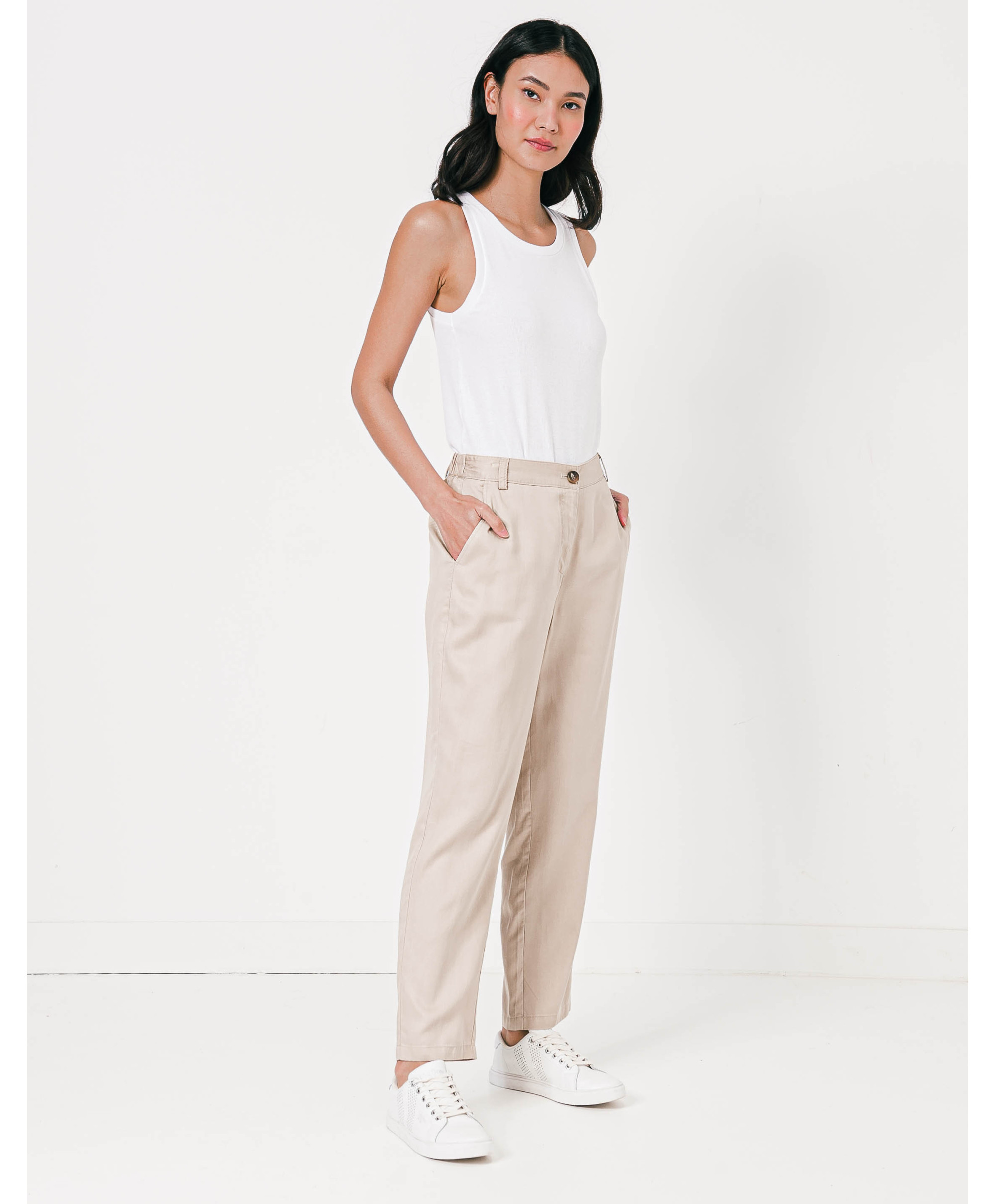 Un pantalon fluide en tencel très agréable à porter avec sa coupe inspirée des 50's. Il définit votre allure avec sa taille et harmonise toutes les silhouettes avec ses jambes droites. Fluide et léger, ce pantalon large se porte avec un tee-shirt uni ou un chemisier féminin pour un look plus casual.