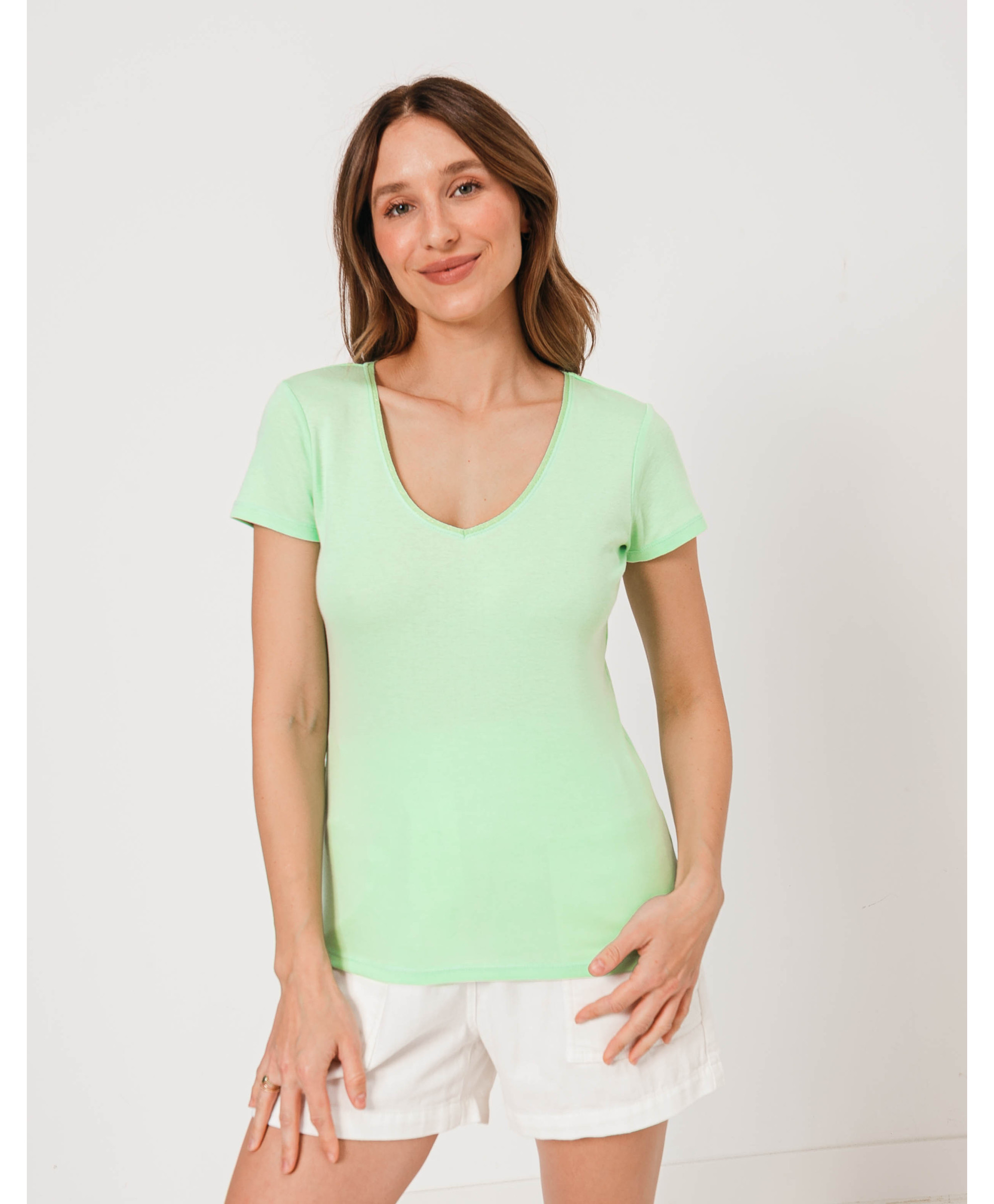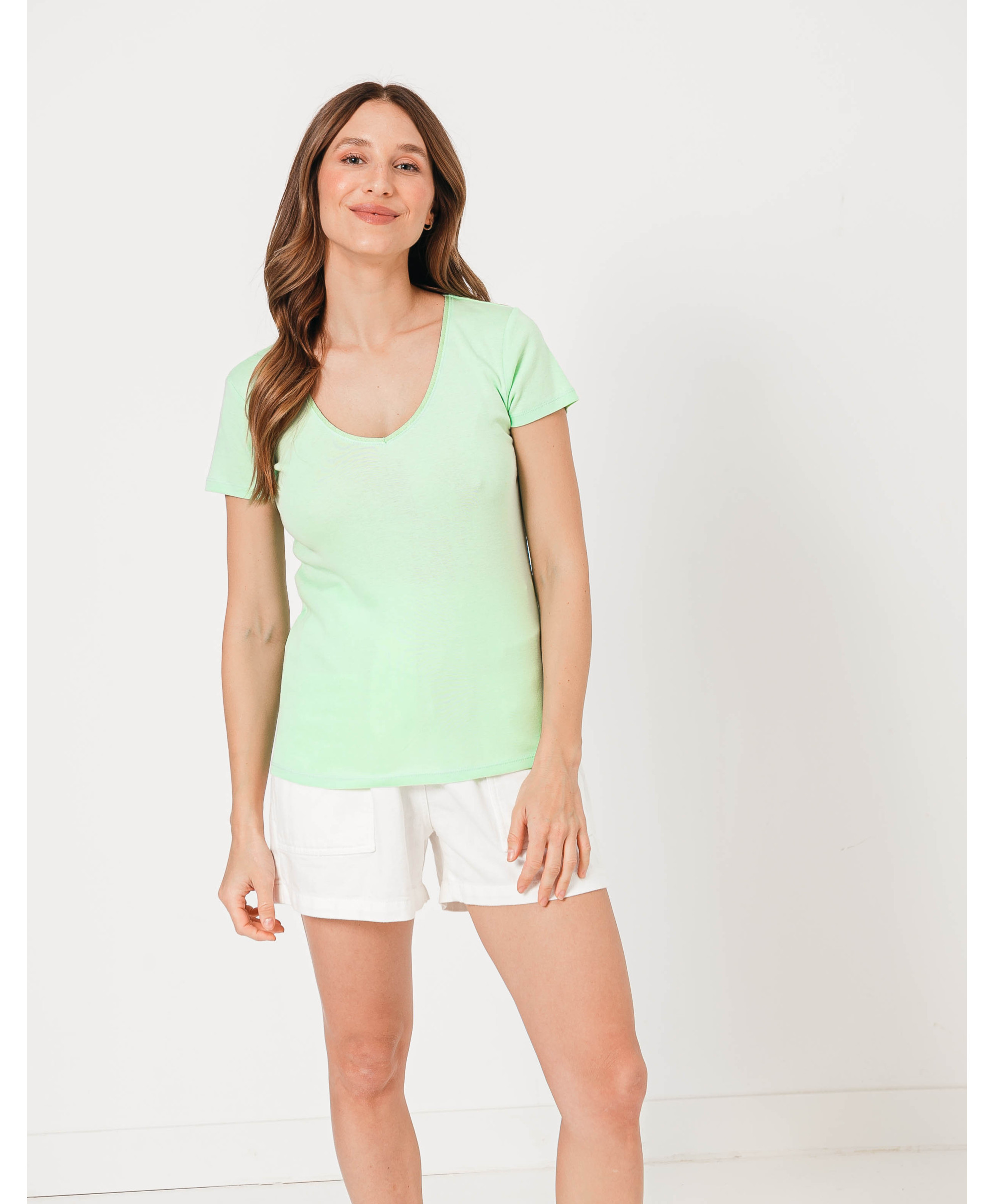 Un tee-shirt à manches courtes à porter en toutes circonstances, seul ou sous un gilet ou une veste. Il affiche un col en V à finitions lurex. Ce tee-shirt femme en coton offre un maximum de confort et de douceur. Disponible en plusieurs coloris, il est à collectionner !