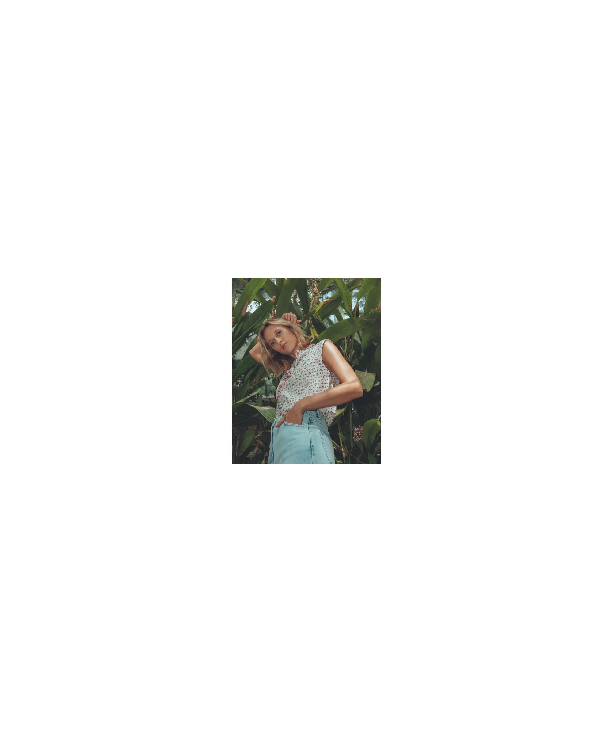Un imprimé floral aux teintes acidulées pour ce chemisier fluide sans manches et col victorien, fermé par boutonnière. Les teintes sont gourmandes et le style frais, à l'effet très romantique.