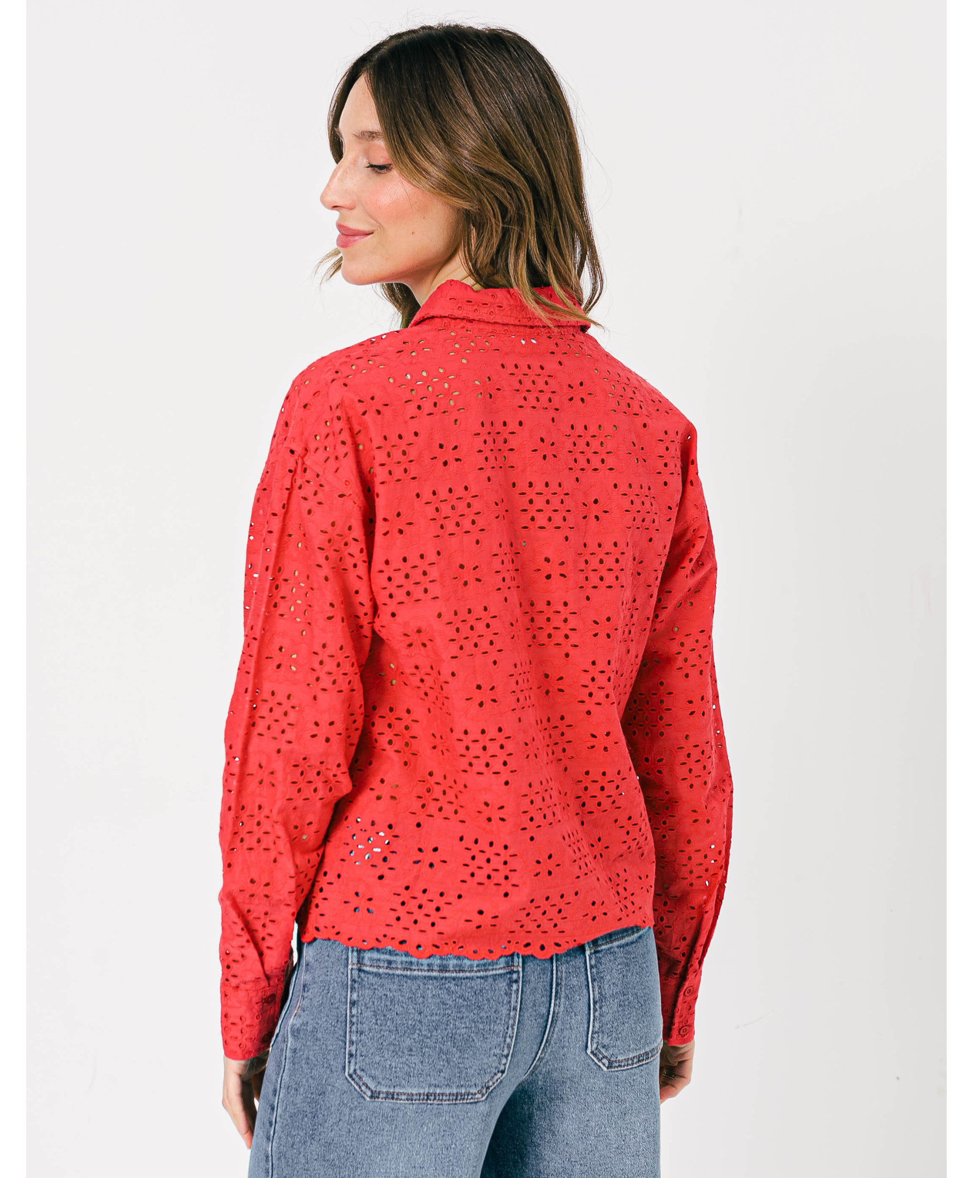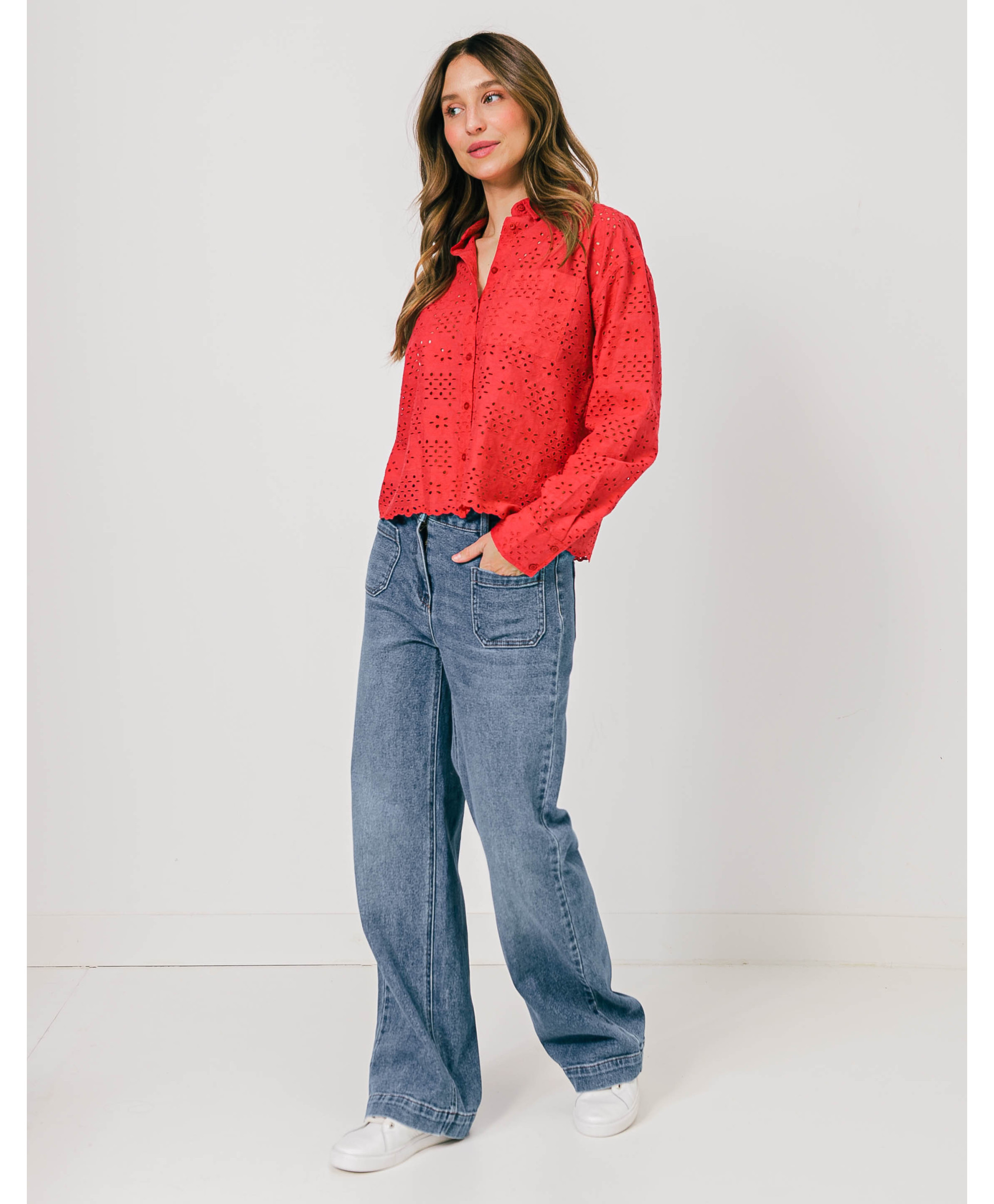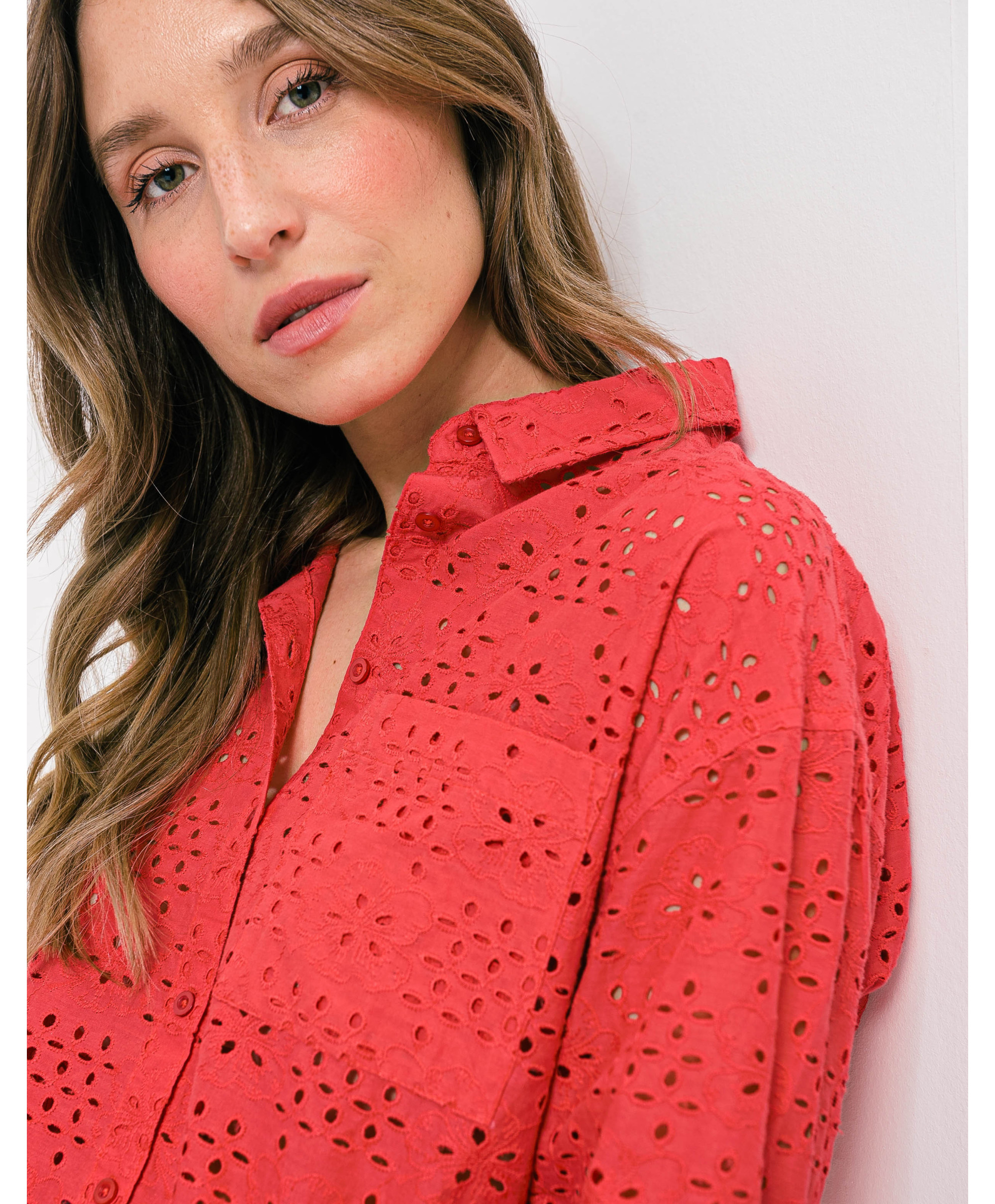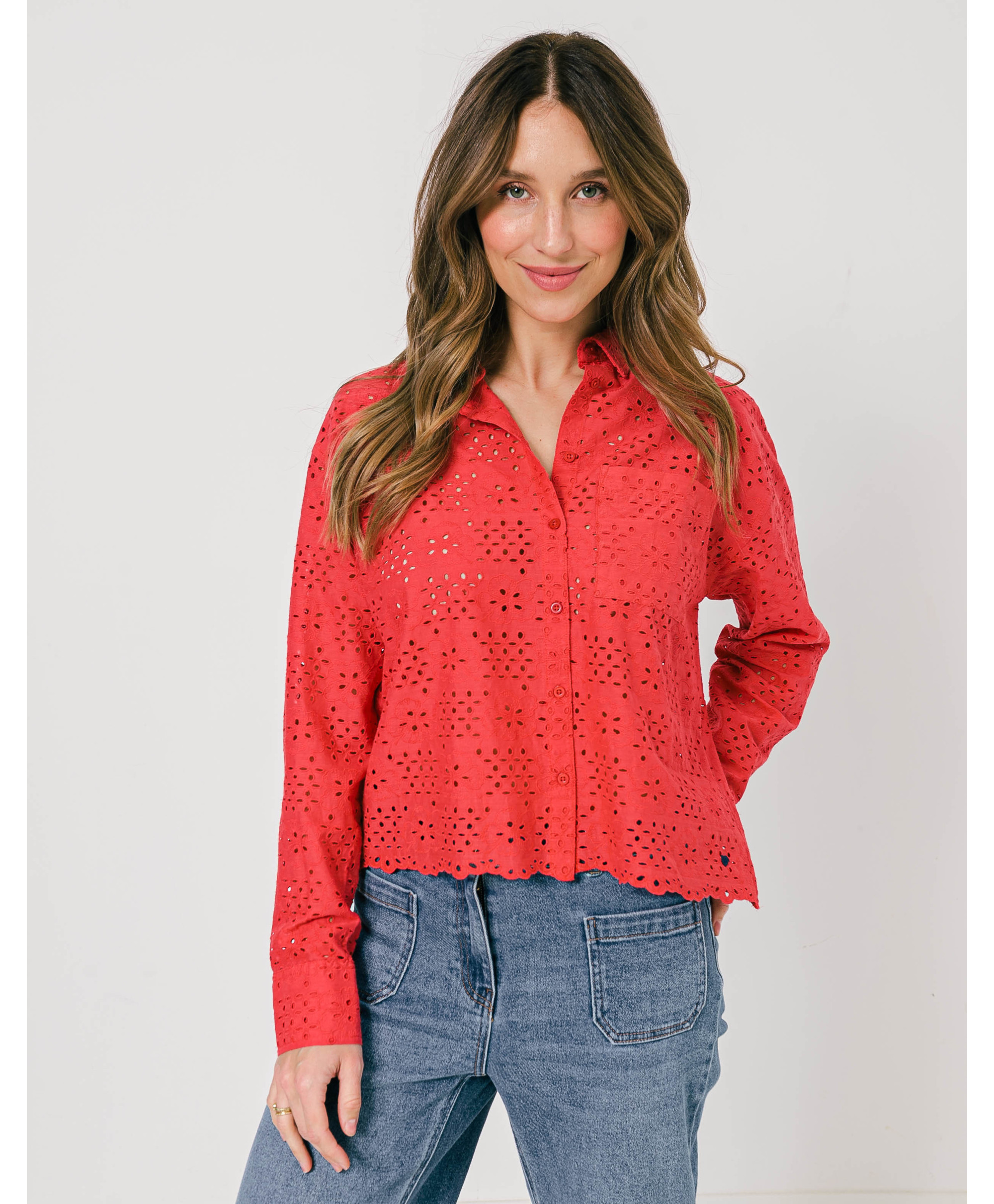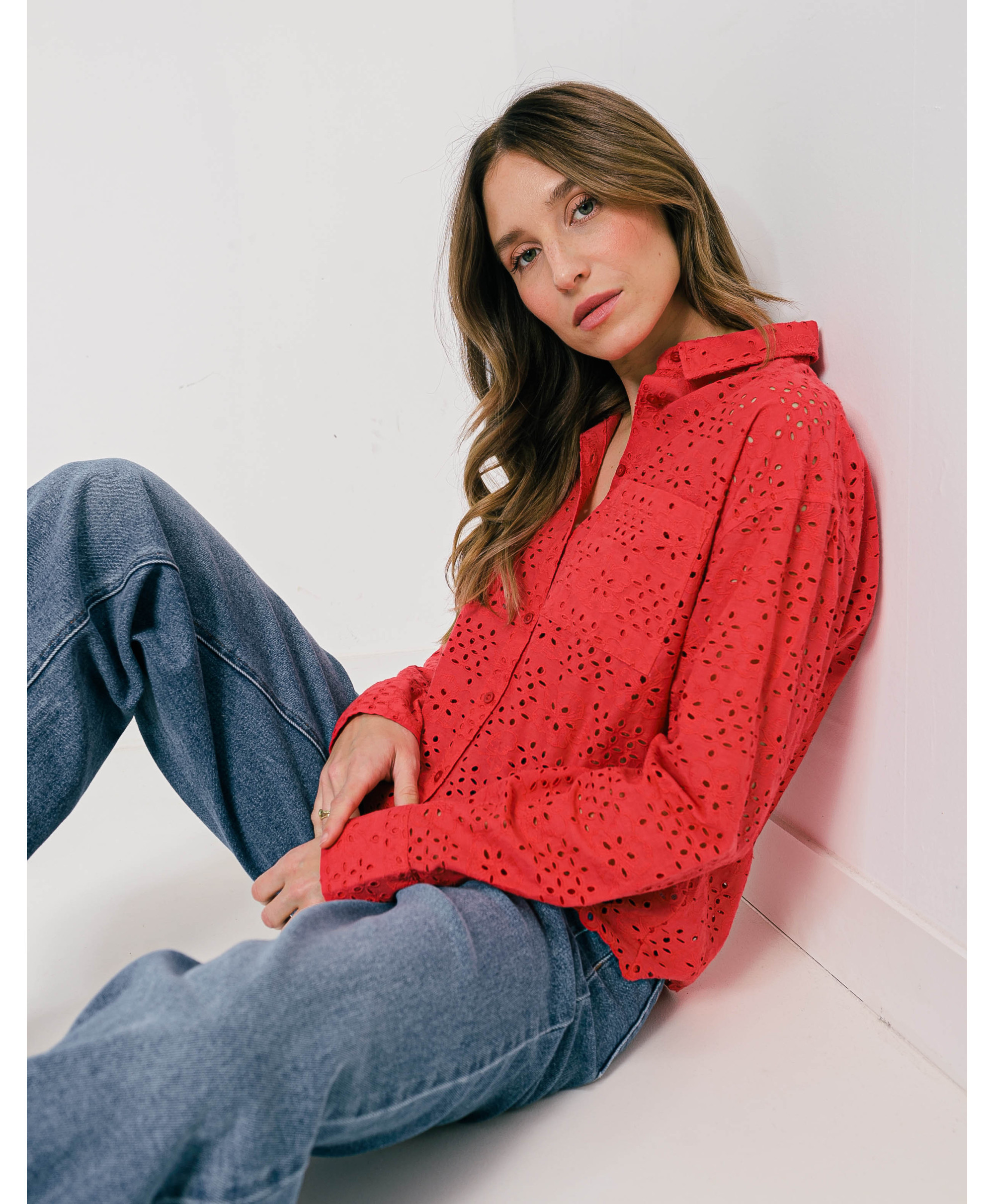 Cette chemise boutonnée illustre à merveille tout le charme et le pouvoir qu'exerce la broderie anglaise... Agrémentée de dentelle et confectionnée en pur coton, elle offre une allure romantique en toute occasion !