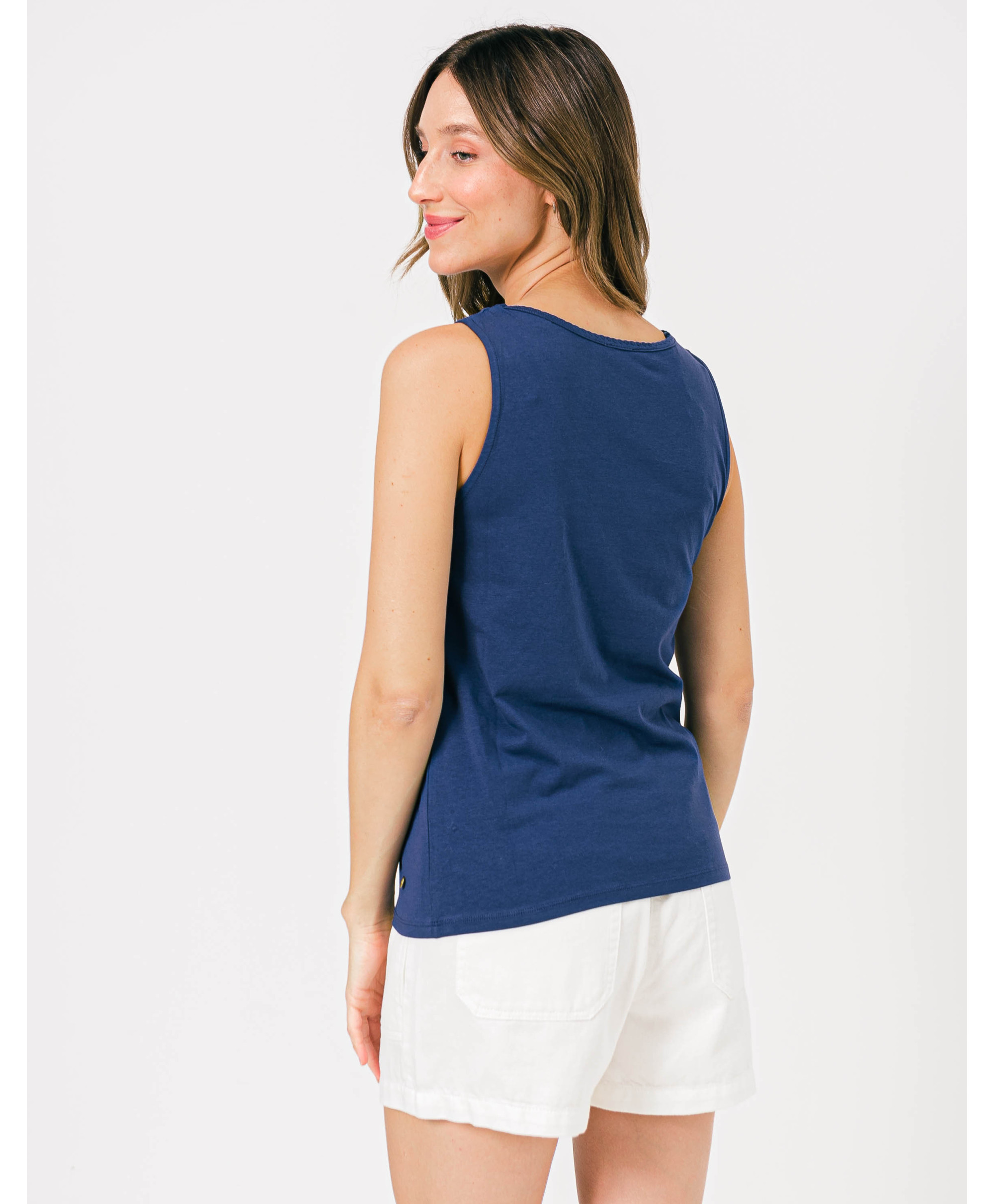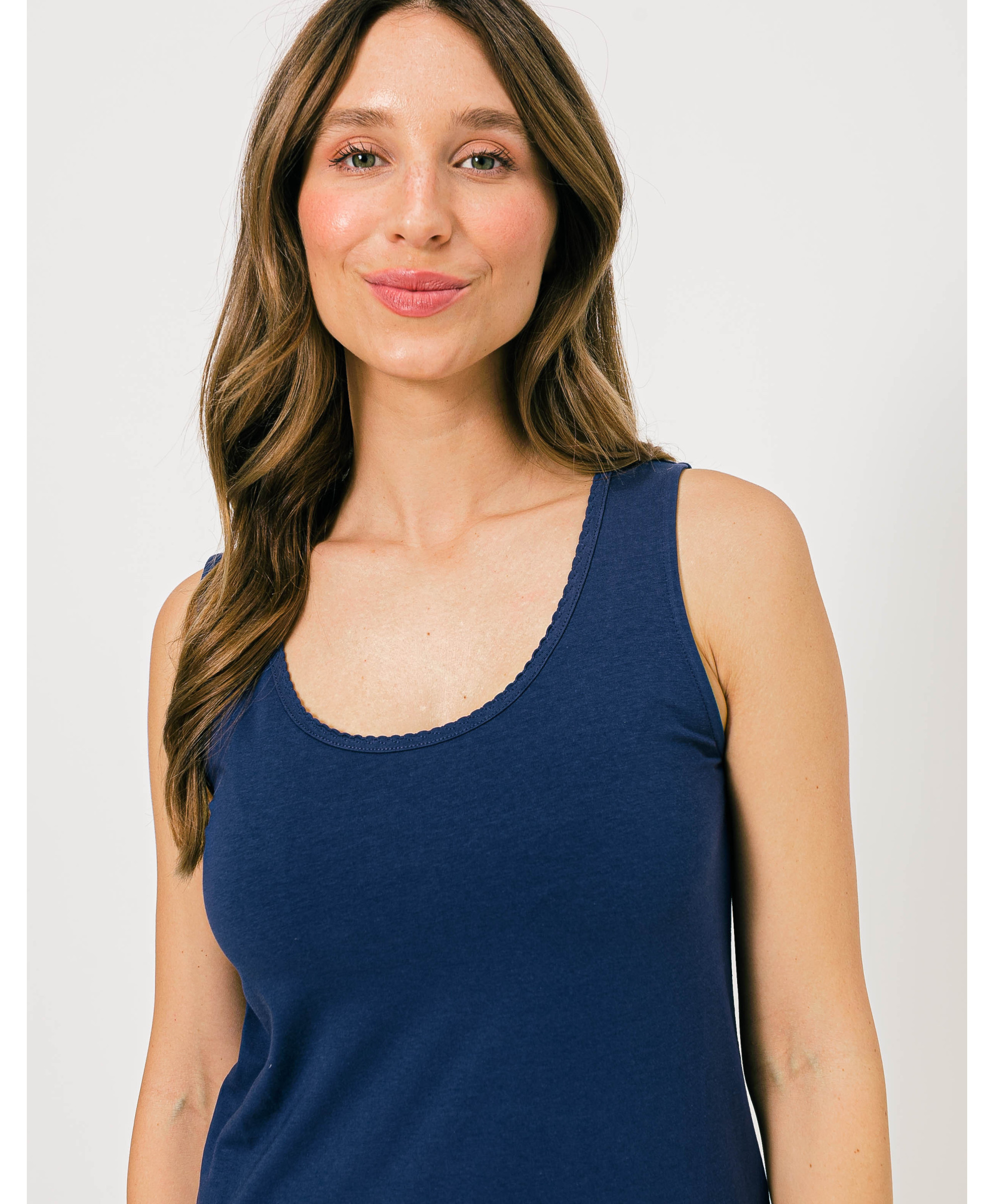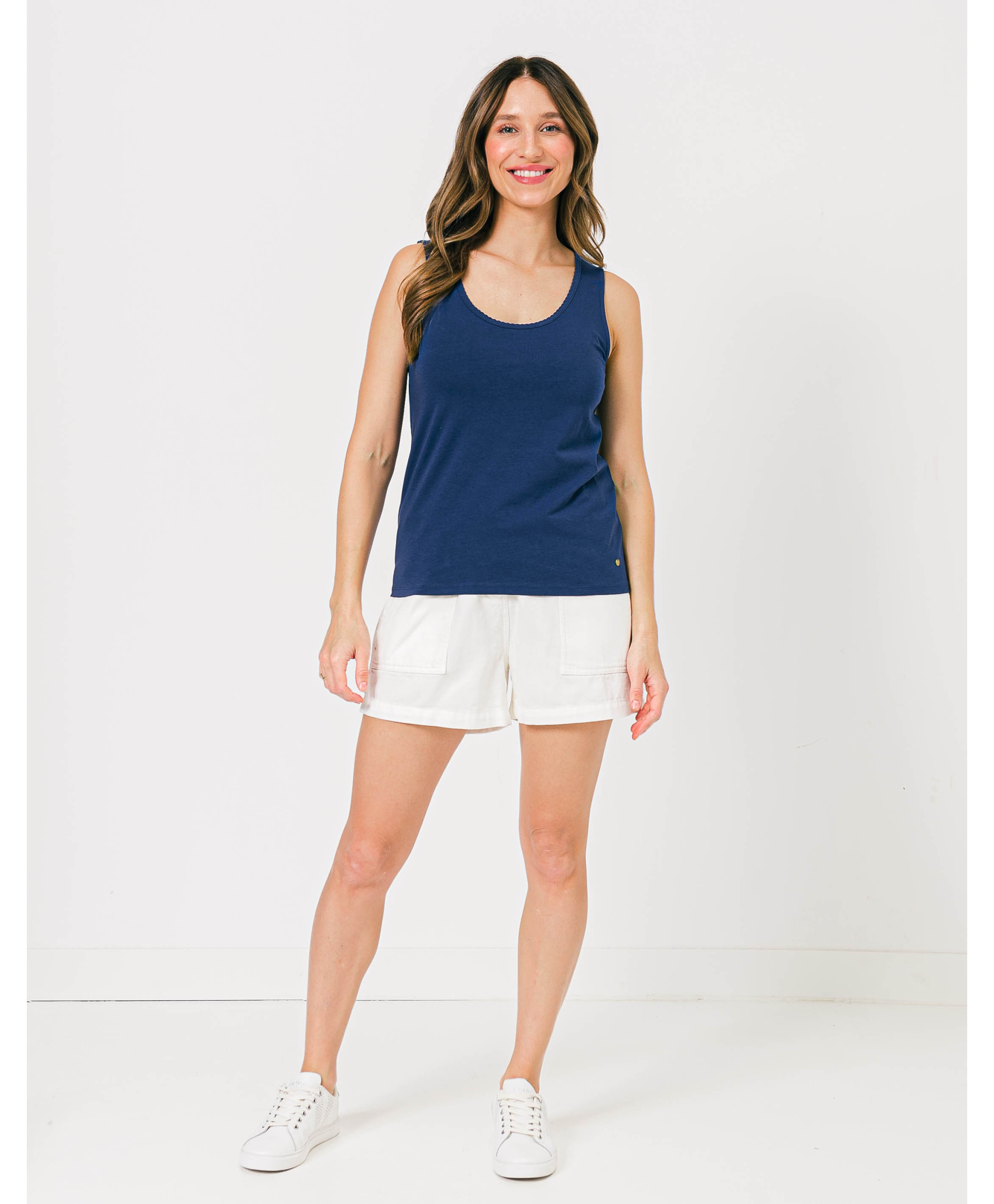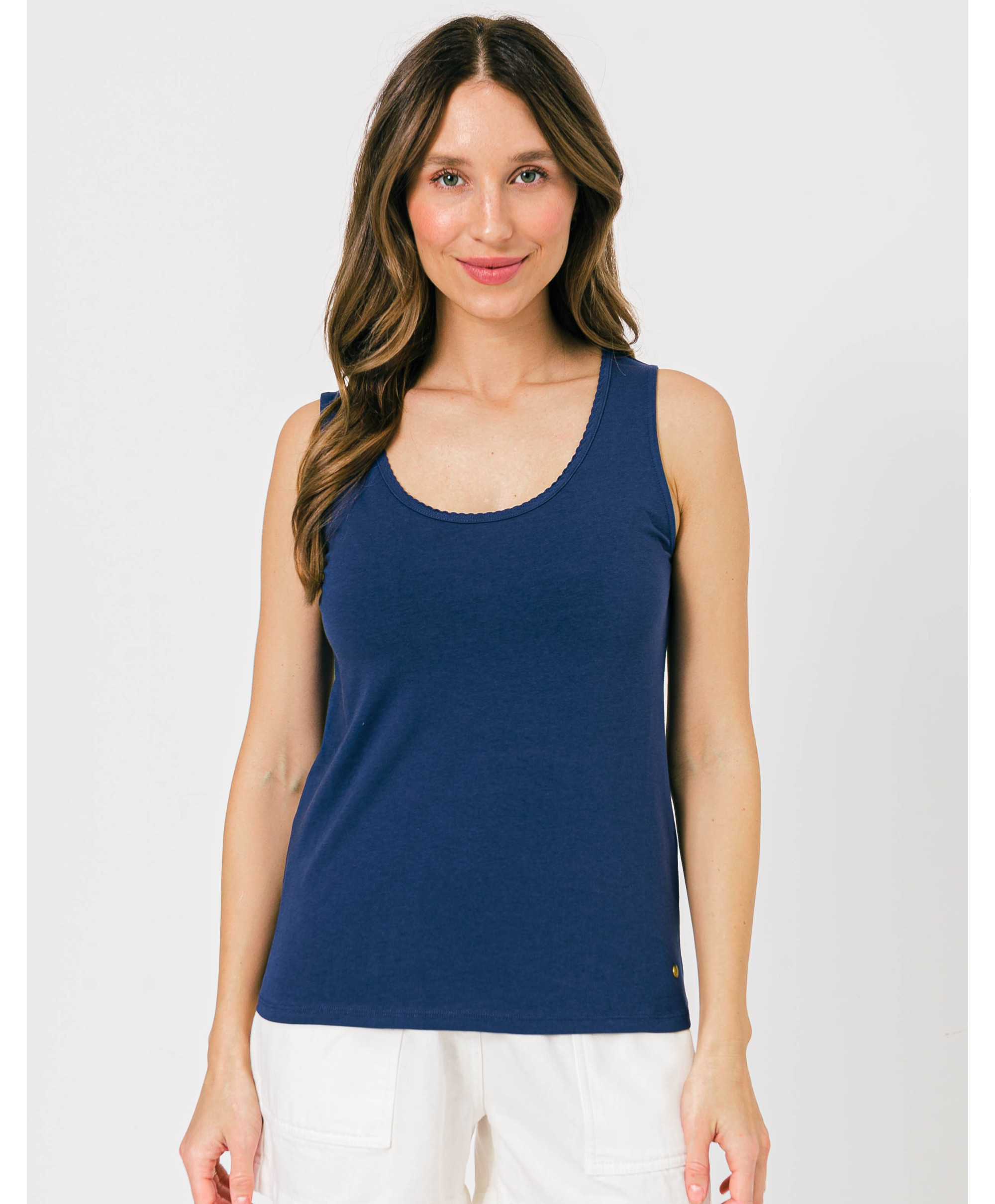 Ce débardeur en coton est un essentiel du dressing féminin. On aime sa belle encolure arrondie.