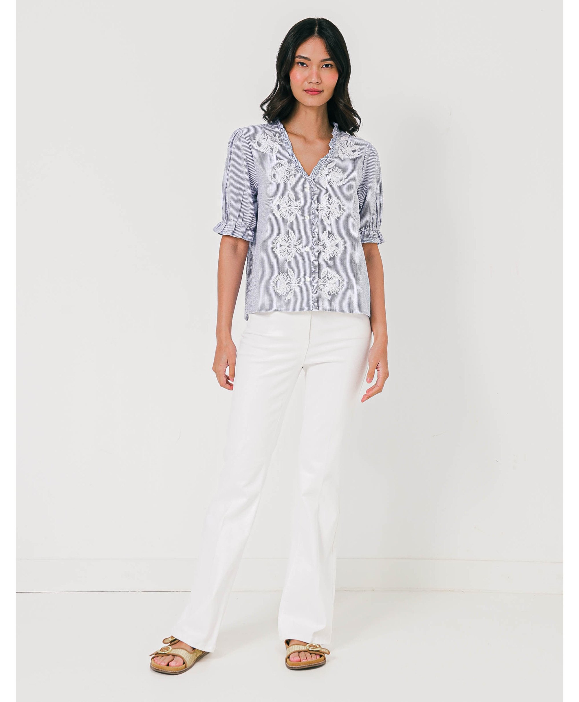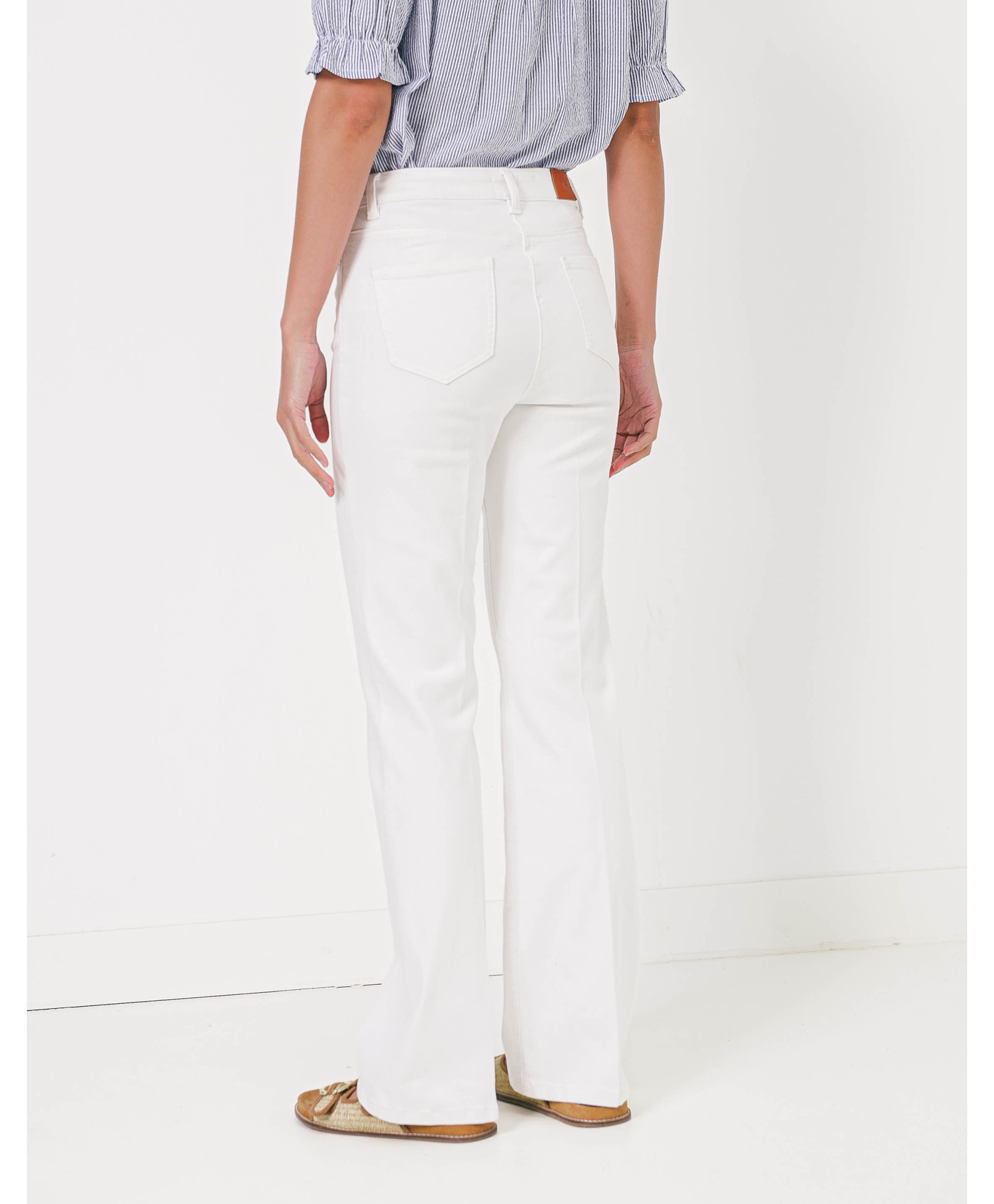 Un jean femme fortement influencé par les années 70. Avec sa forme évasée en bas de jambe, ce jean Bootcut assume pleinement son allure vintage, avec ses poches plaquées. Confectionné dans une matière extensible, il vous assure un maximum de confort. Un jean flare à porter avec un chemisier imprimé.