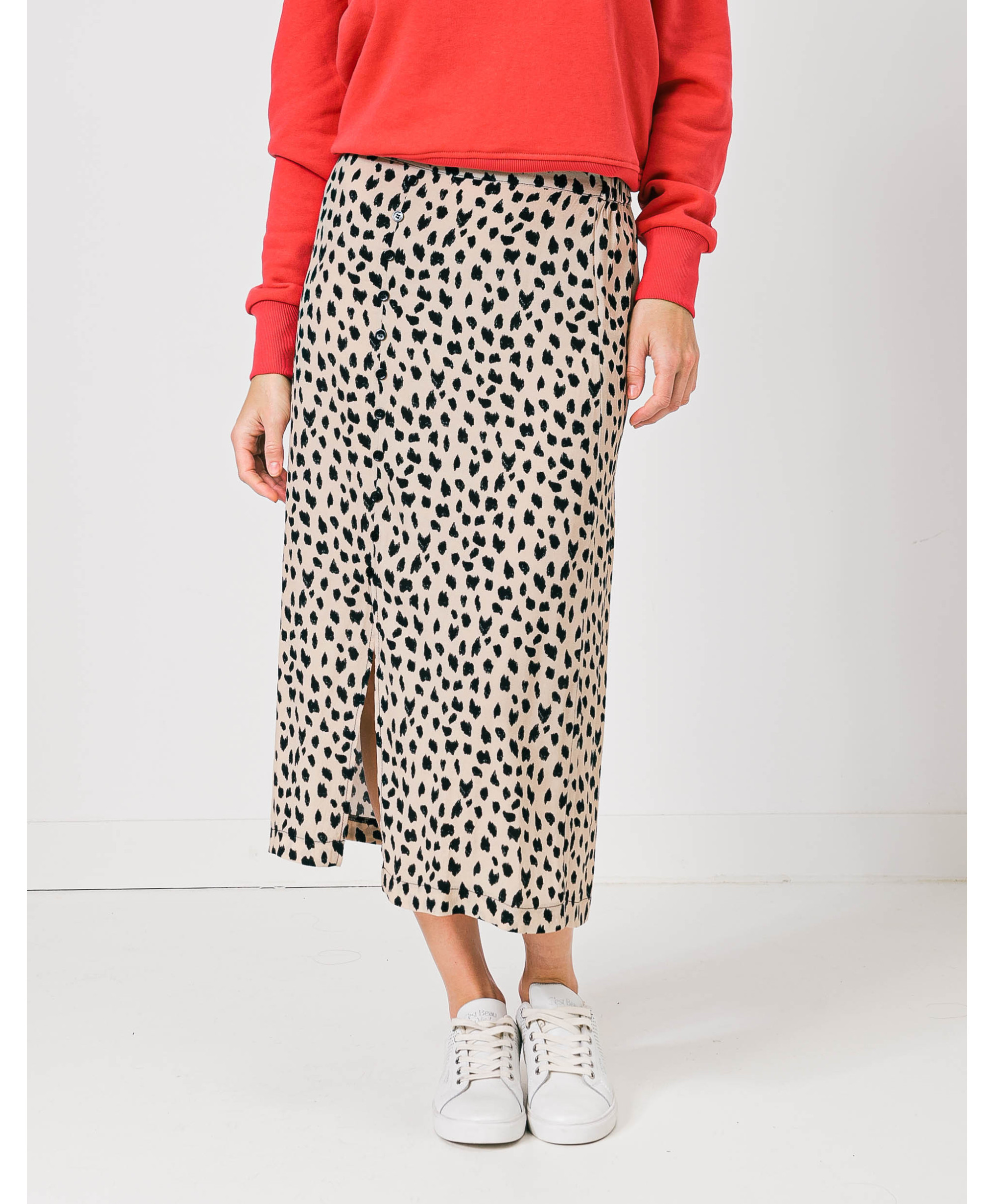 Restez élégante et confortable avec cette jupe longue. Cette jupe est dotée d'une ceinture élastique, d'un imprimé peau de bête, ce qui en fait une option polyvalente et tendance pour le printemps.