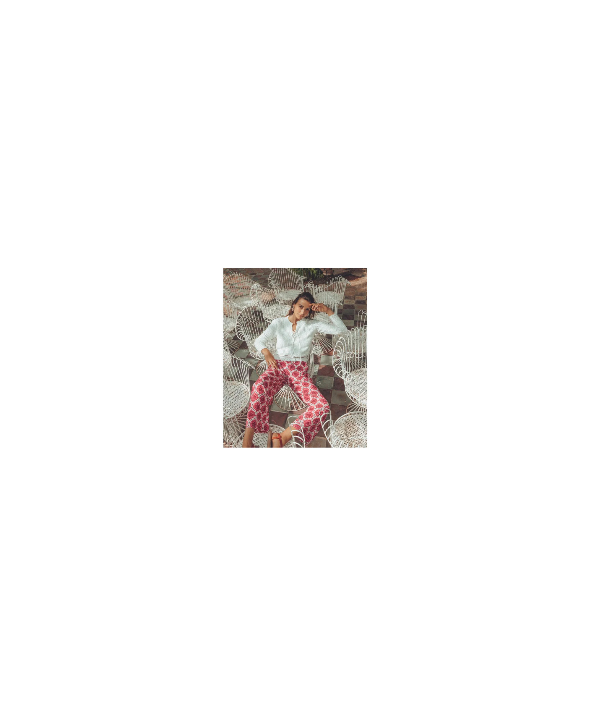 Vous allez craquer pour ce pantalon femme à l'imprimé original et estival. Le pantalon est confectionné dans une matière toute douce, idéale pour des looks confortables. Une coupe bien large et une taille élastiquée complètent l'ensemble pour une silhouette aérienne et une grande liberté de mouvements. Vous l'associerez à un débardeur uni et des sandales pour une allure simple et efficace.