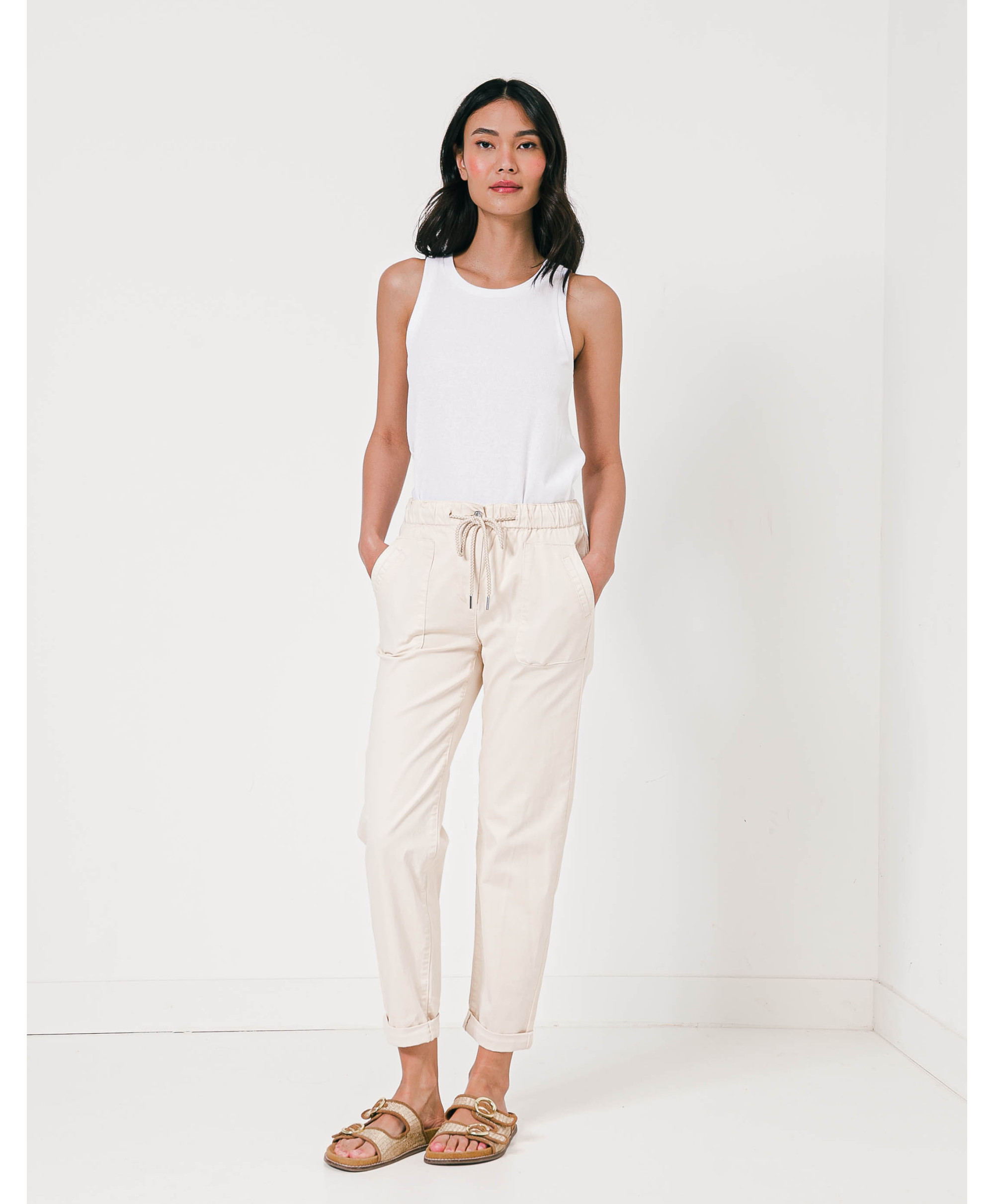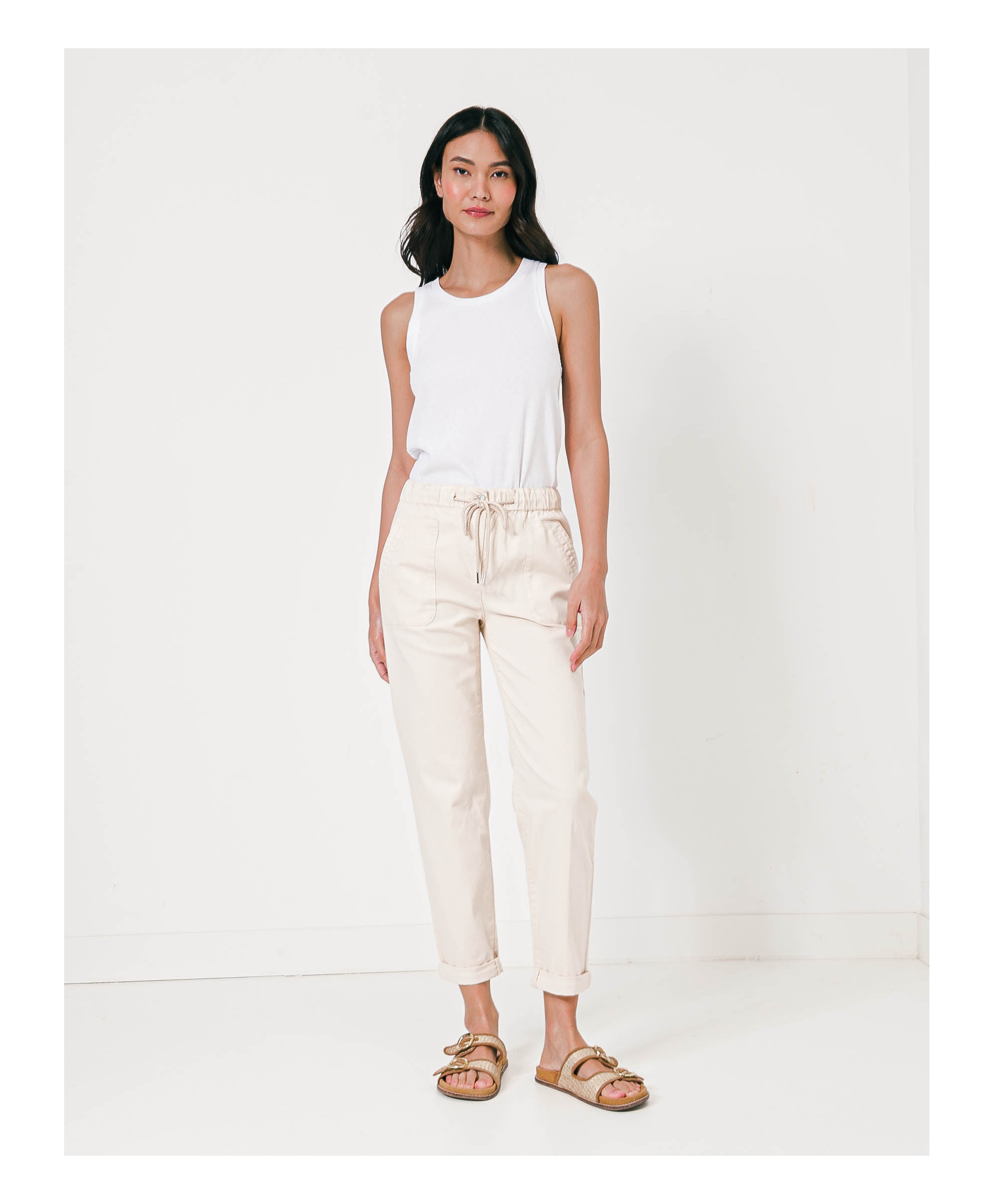 Ce pantalon est une pièce idéale pour la saison. Doté d’une taille élastiquée et ajustable par cordon coulissant, il assure un habillage facile et un grand confort tout au long de la journée. Avec sa coupe droite avec un revers en bas de jambe, ce bas est idéal pour les looks casual. Associé à un tee-shirt et des baskets, il est parfait pour un look sportswear. Porté avec un sweat, il est idéal pour les escapades citadines.