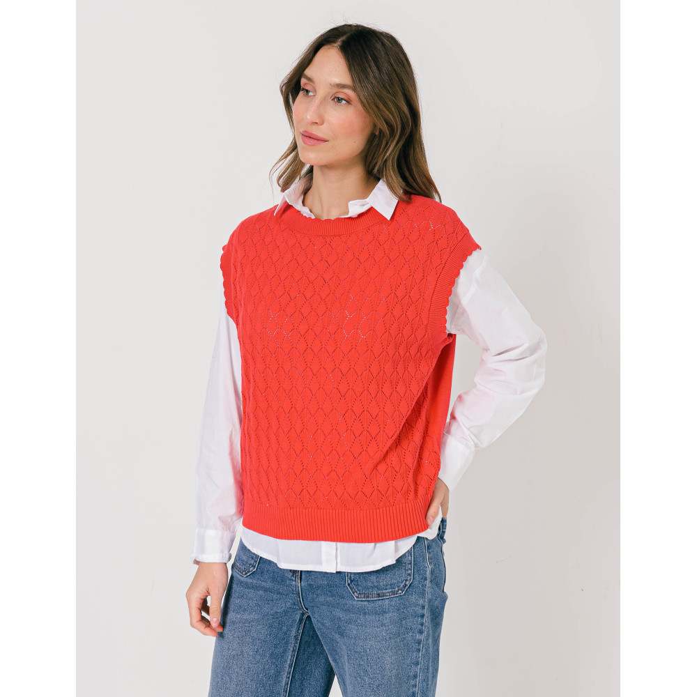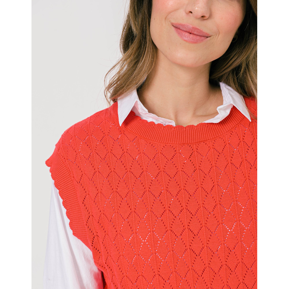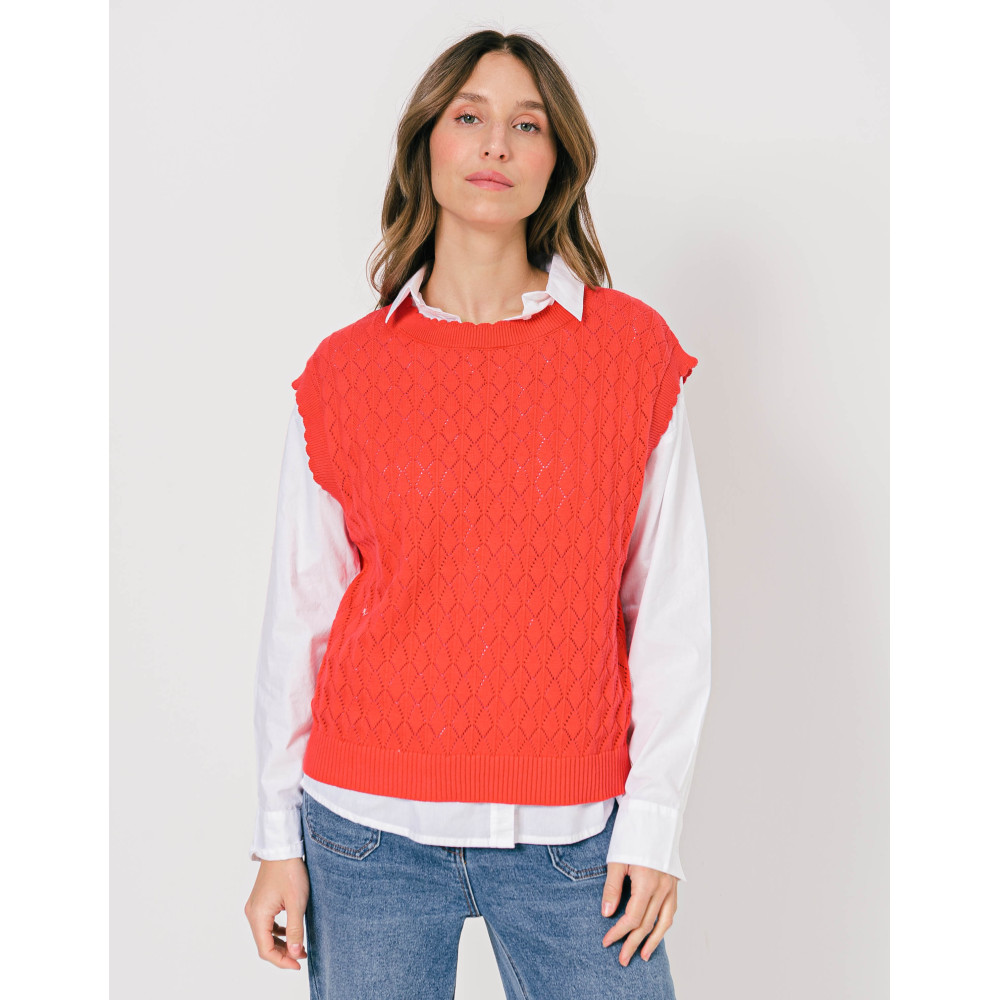 Offrez à votre tenue un côté de rétro avec sa coupe sans manches, féminisée par sa maille ajourée. A mixer à une chemise manche longue blanche, un jean et des sneakers pour un look branché.