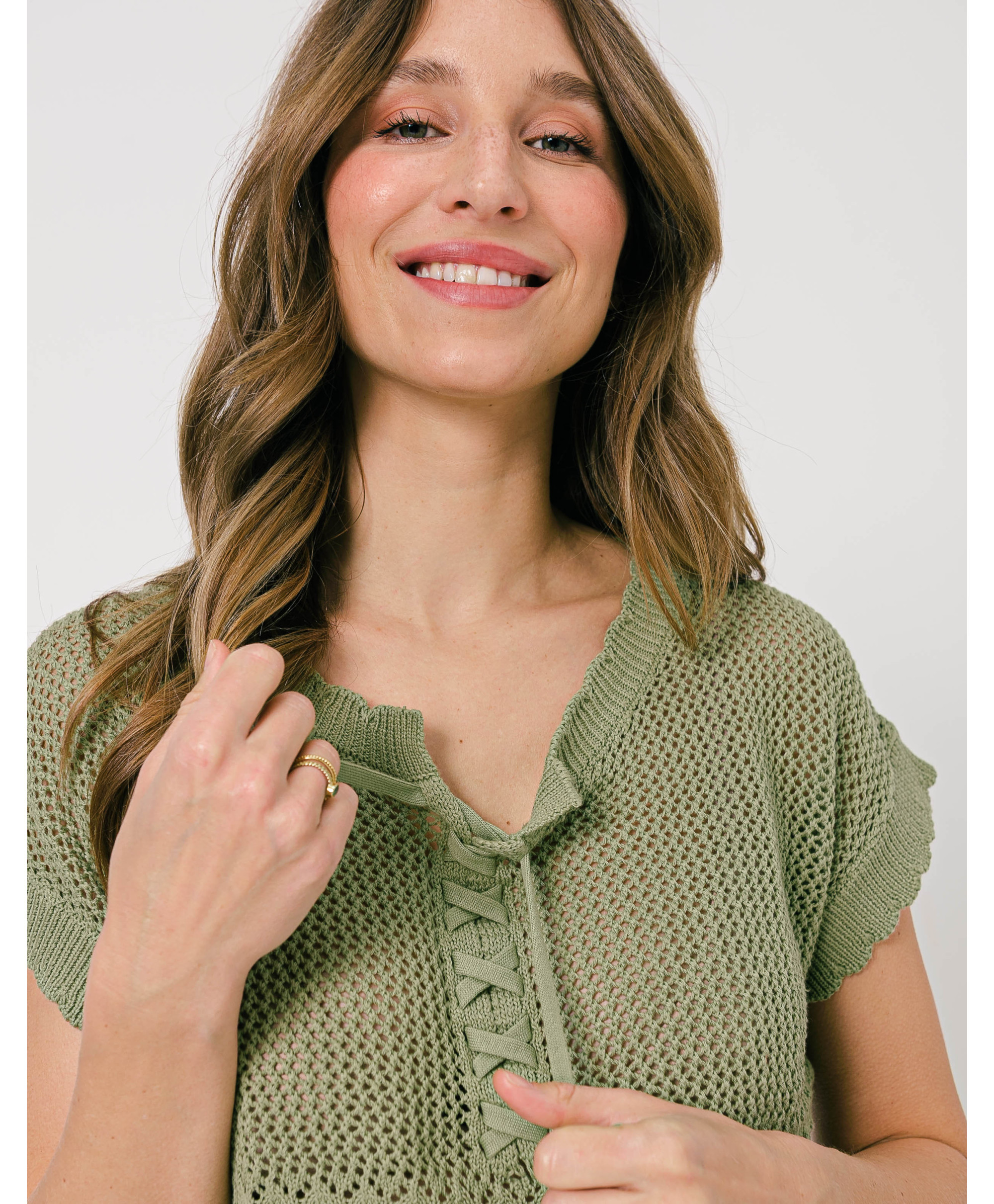 Craquez pour ce nouveau pull pour femme avec sa maille pointelle et son col avec lacet. Il est à la fois élégant, confortable et chaleureux. Vous n'allez plus vouloir le quitter !