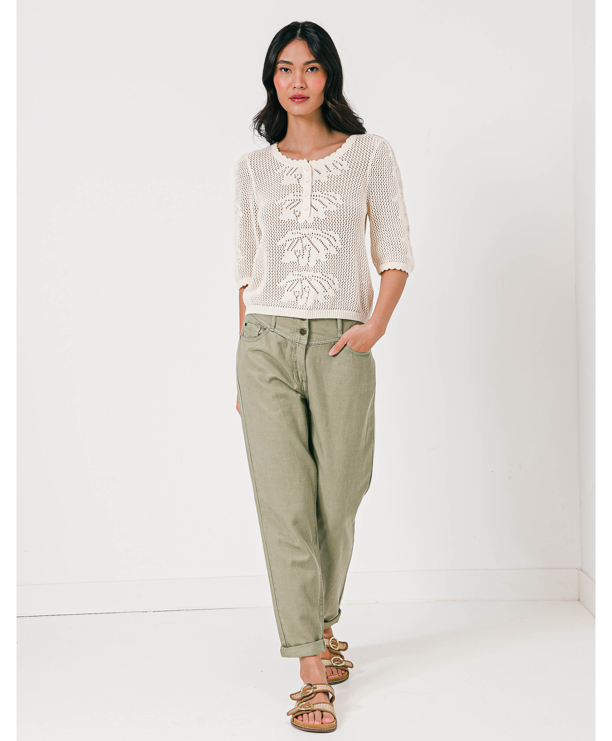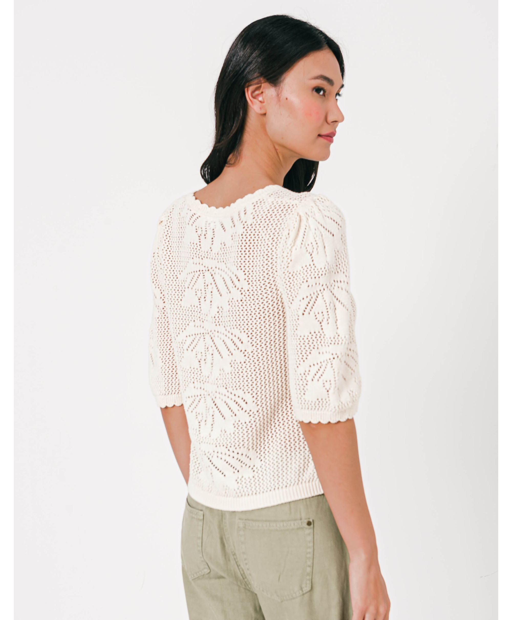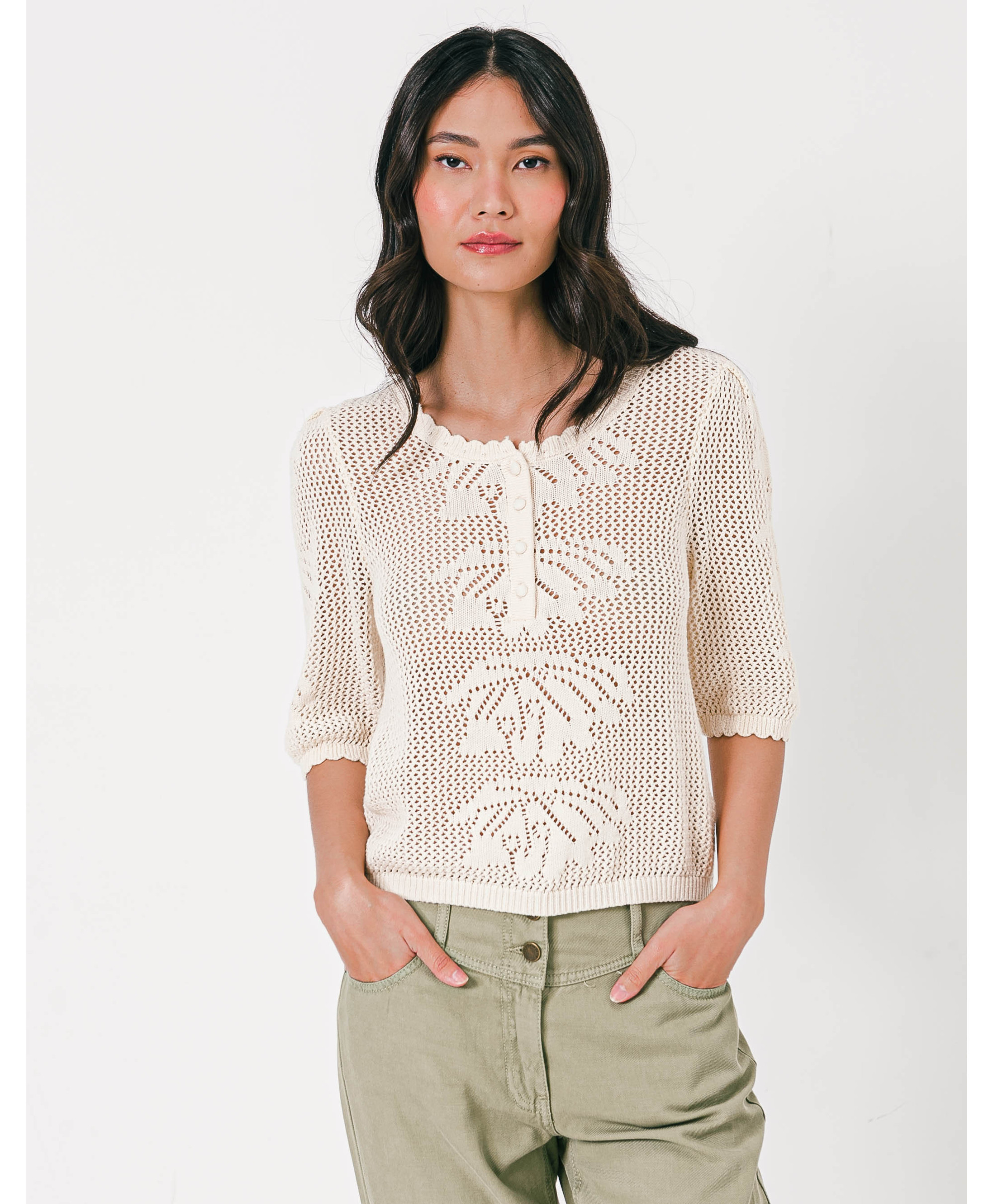 Craquez pour ce pull à manches courtes et sa maille fantaisie pour femme. Il est à la fois élégant, confortable et chaleureux. Vous n'allez plus vouloir le quitter !