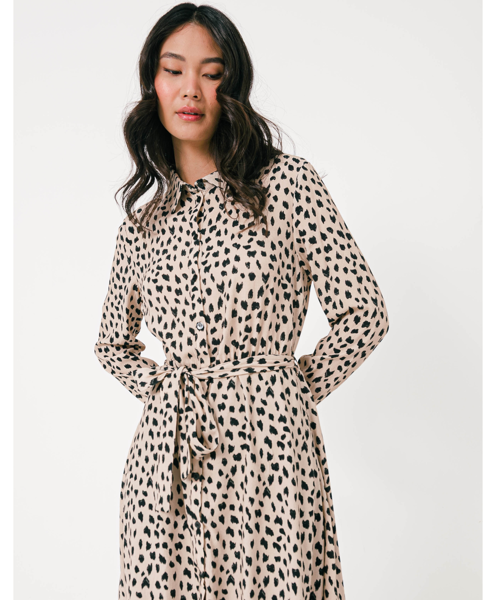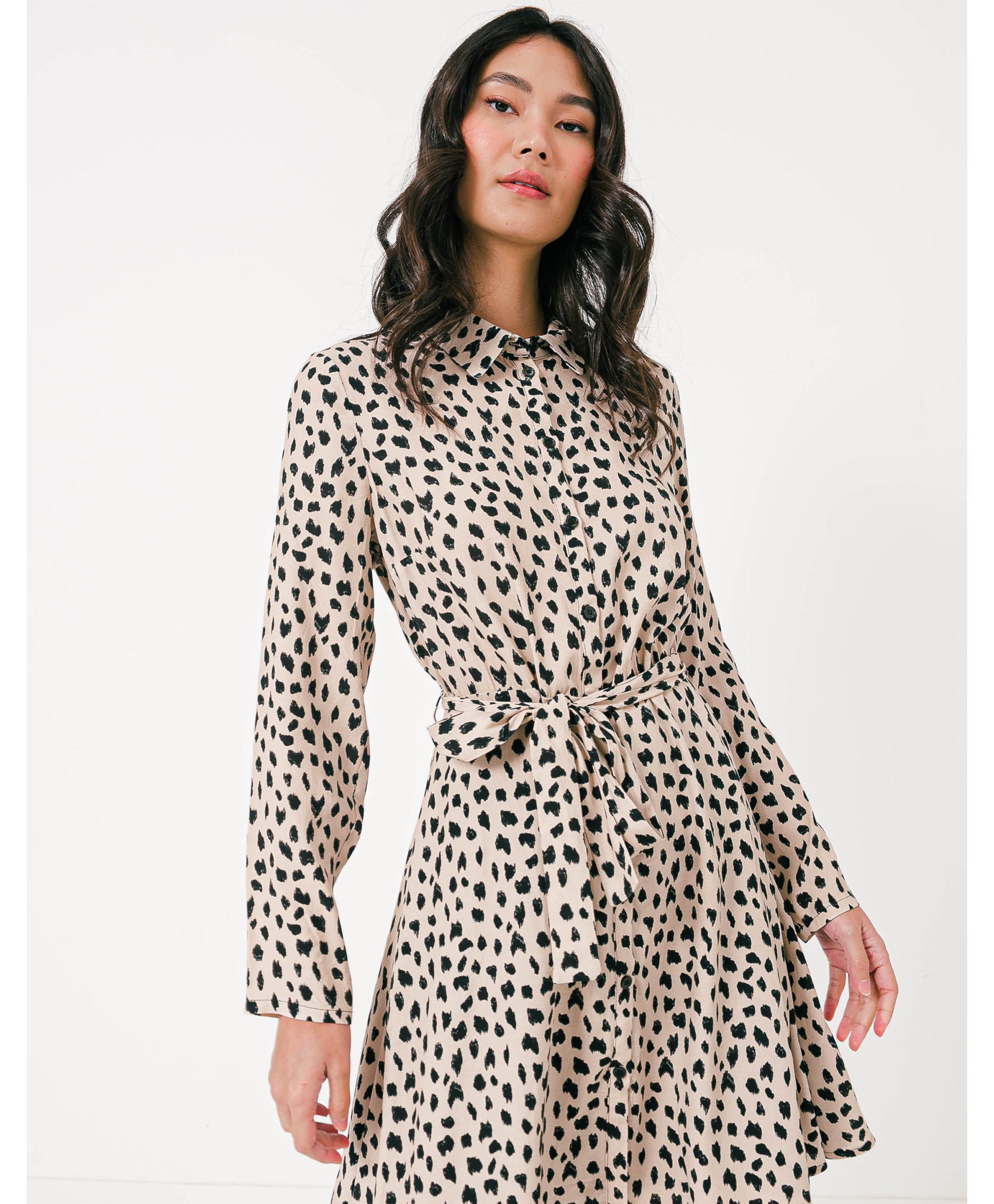 Légère et fluide cette robe chemise réalisée en viscose est très agréable à porter. De plus avec sa forme chemise et son imprimé léopard, elle est tendance pour le printemps.