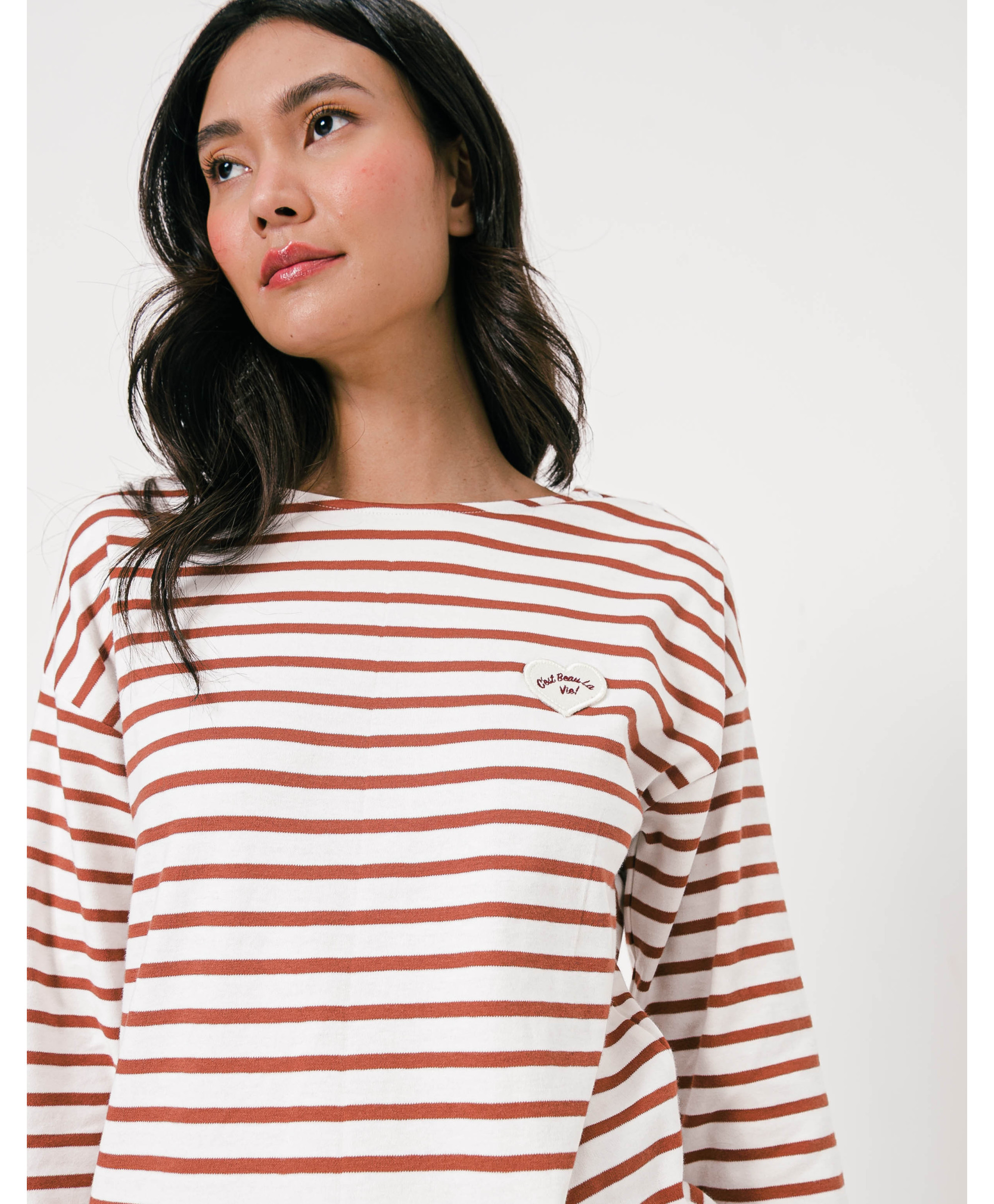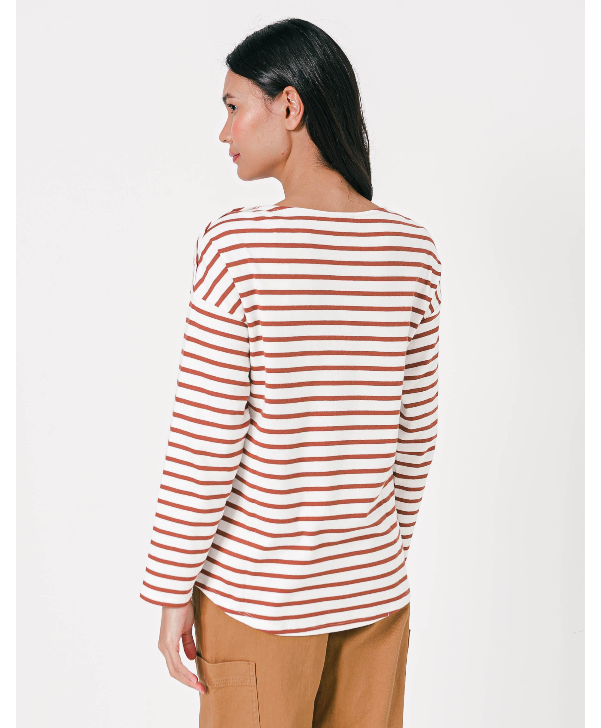 Le sweat à rayures signature en coton a l’audace de mélanger l’allure décontractée du molleton, l’élégance de la rayure et des boutons sur l'épaule. Un mélange des styles moderne et confortable facile à porter au quotidien. Un bel intemporel dessiné par nos stylistes.