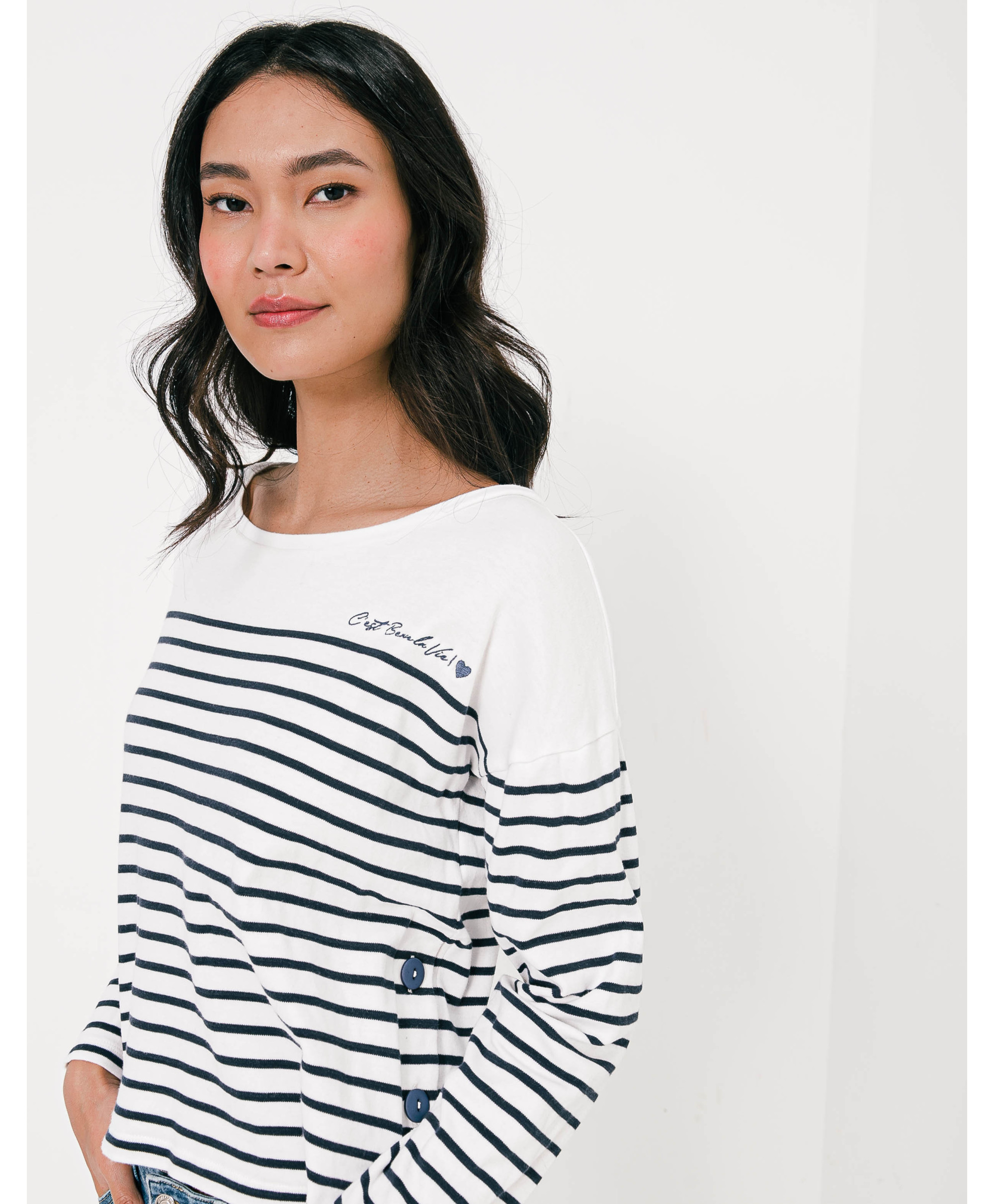 • Broderie "C'est Beau la Vie" sur la poitrine