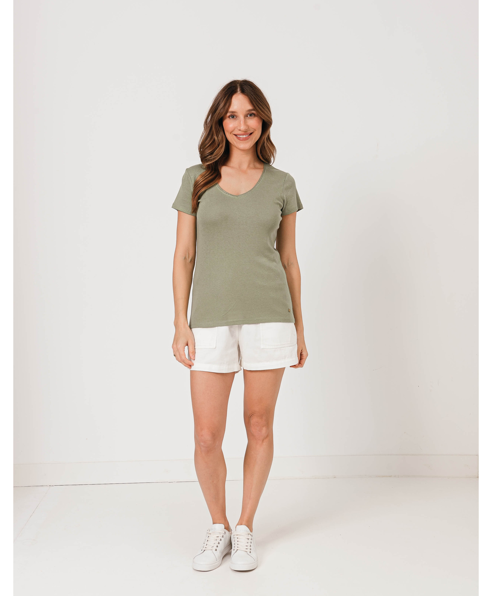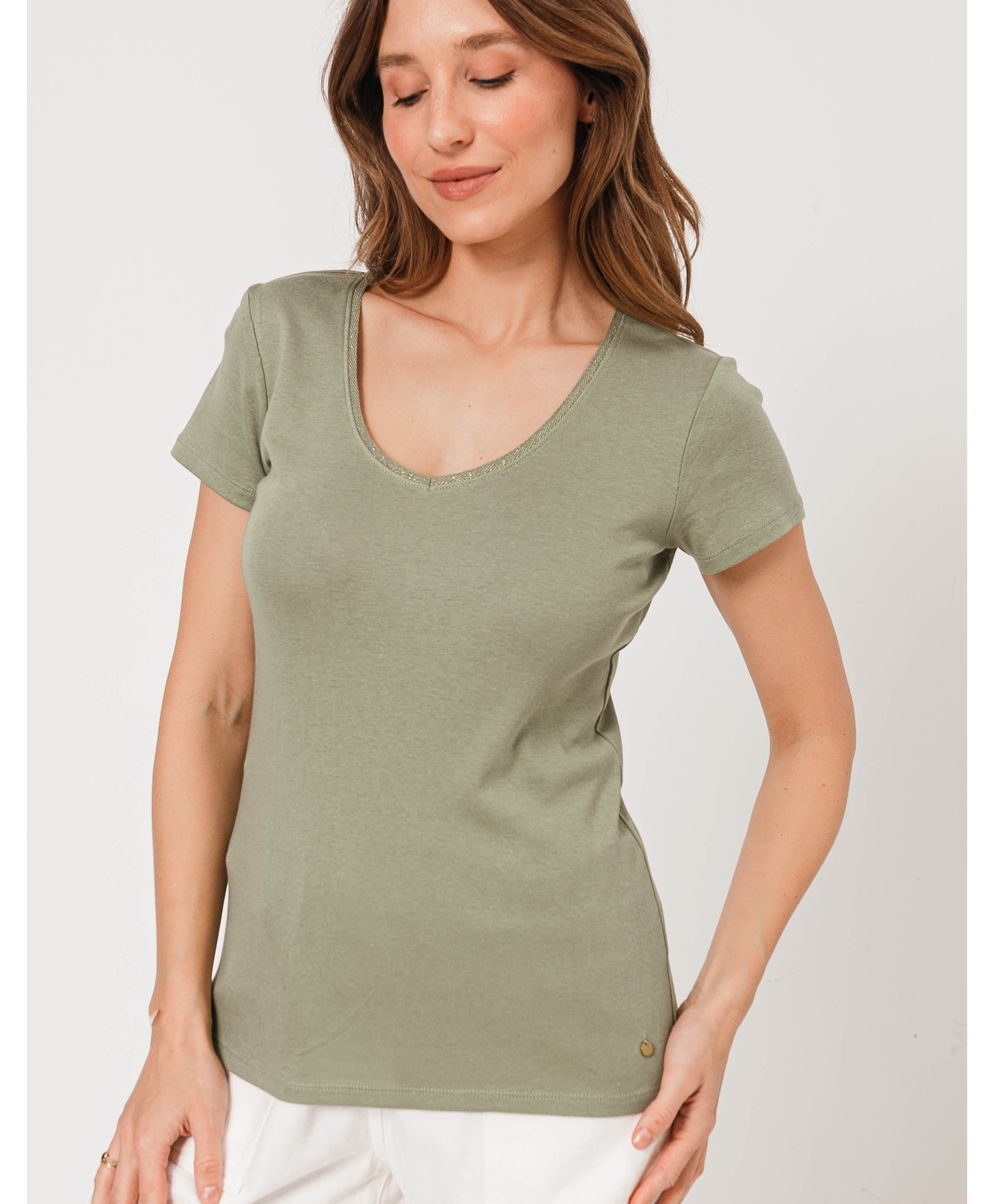 Un tee-shirt à manches courtes à porter en toutes circonstances, seul ou sous un gilet ou une veste. Il affiche un col en V à finitions lurex. Ce tee-shirt femme en coton offre un maximum de confort et de douceur. Disponible en plusieurs coloris, il est à collectionner !